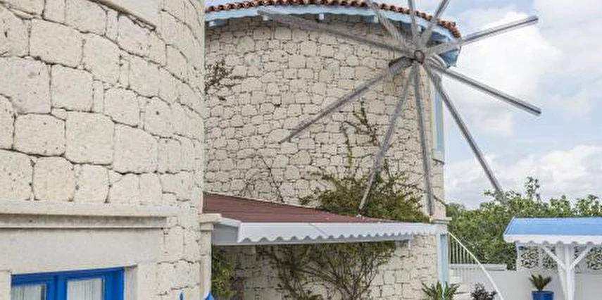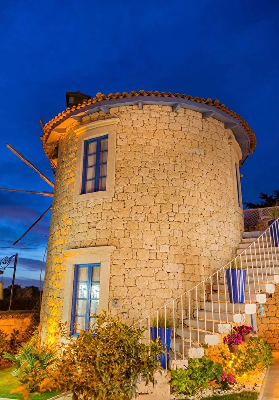 Değirmen; Alaçatı tarihine ve toplumsal hayatına damgasını vurmuş, yörenin en önemli simgelerinden... Alaçatı’nın unutulmaya yüz tutan simgesinden esinlenerek tamamen Alaçatı taşından inşa edilen otel, dört ayrı kuleden oluşuyor. Doğadan esinlenilmiş ve doğayla kucaklaşmış bu özgün mimarinin, ne Alaçatı’da, ne de başka bir yörede başka bir eşi ya da benzeri olmadığını söyleyebiliriz. Alaçatı’nın tarihi değirmenlerinin bulunduğu bölgede konumlanmış vaziyette tesis. Yani, hem rüzgarın ve kuş seslerinin içinde dinlenmeyi isteyenler için ideal; hem de birkaç adım attığınızda çarşının kalabalık sokaklarına çıkabileceğiniz bir konumda.