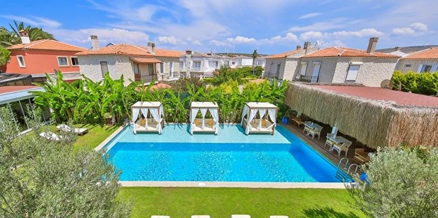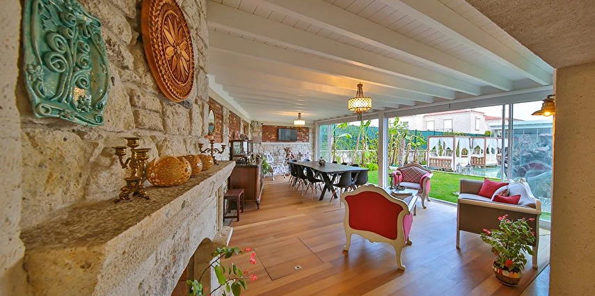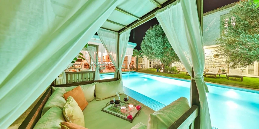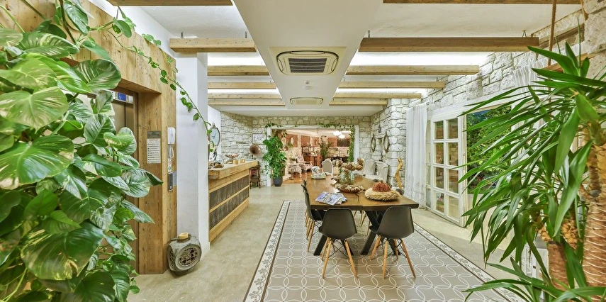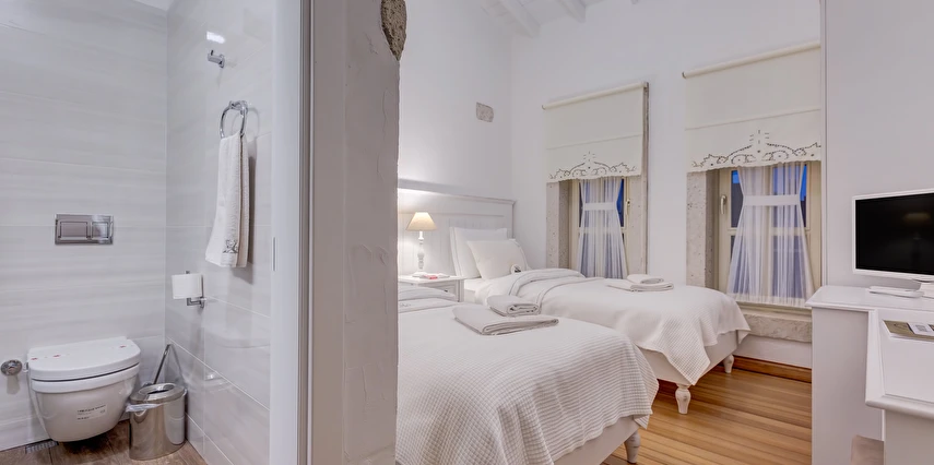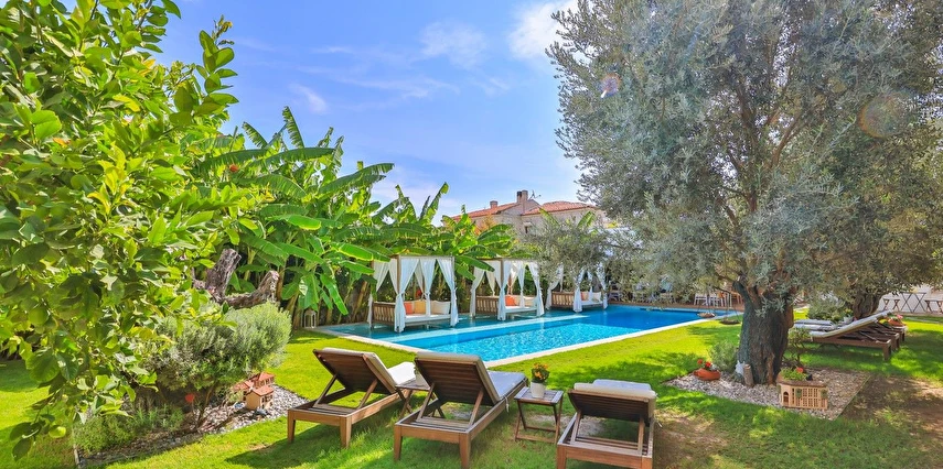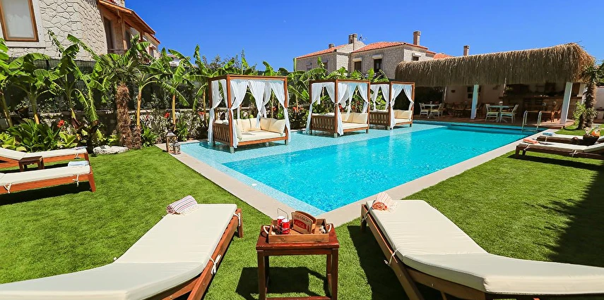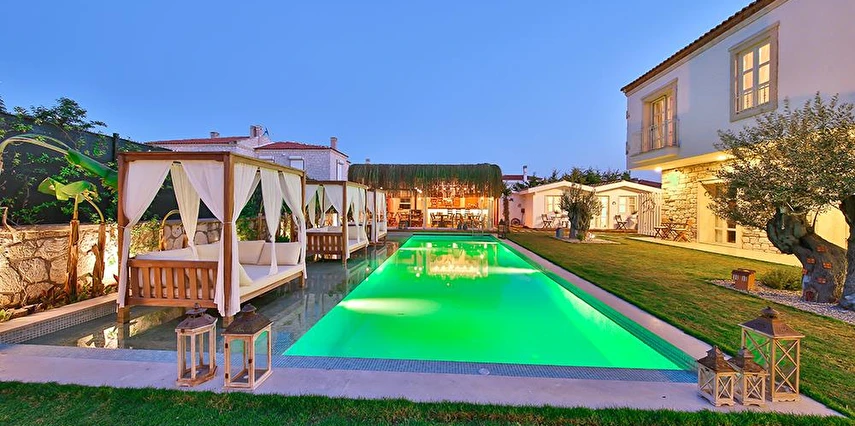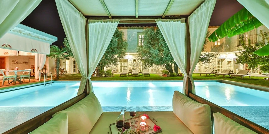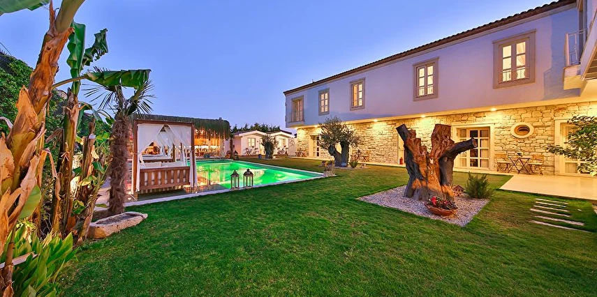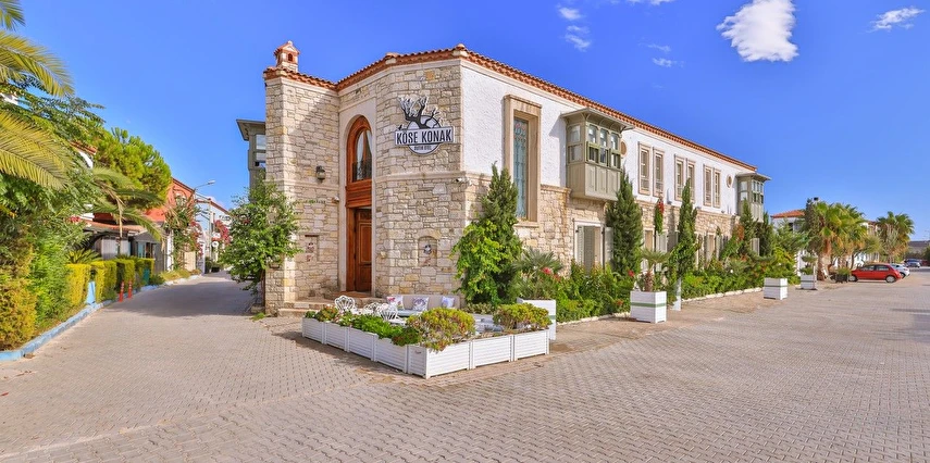 Köşe Konak Butik Otel Alaçatı’nın yüzlerce yıllık yapılarından özenle seçilen taşlar ile inşa edilmiş, eşsiz avlu tasarımı ile sizlere özel anlar yaşatmayı amaçlayan bir taş konaktır. Avlusunun içerisinde bulunan asırlık zeytin ağaçları mekanda tarihi bir doku yaratırken, özenle tasarlanmıs Localı yüzme havusunun çevresinde bulunan muz ve palmiye ağaçları, bahçedeki begonvil ve lavantaların renkleriyle harmonize olup sizlere çok özel bir mekansal deneyim sunmaktadır.