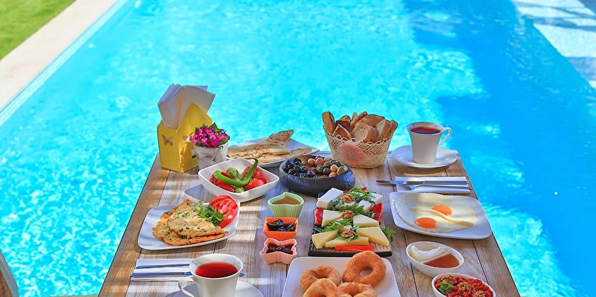 Herbiri büyük bir özen ve özel konseptler ile dekore edilmiş yüksek tavanlı odalarımızıda konaklayan misafirlerimize Köşe Konak Garden’da kendimizin yetiştirdiği organik meyve ve sebzeler, natural köy reçelleri ve taşfırın ekmeklerimiz ile havuzbaşı barımızda misafirlerimize geleneksel Türk kahvaltısı sunuyoruz.