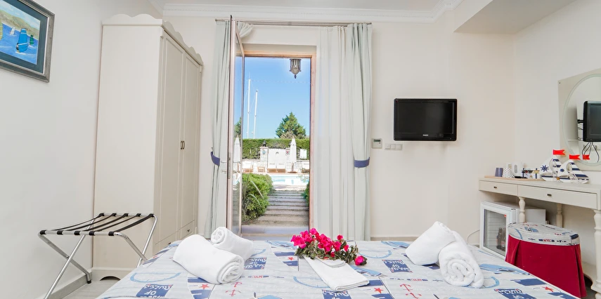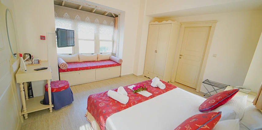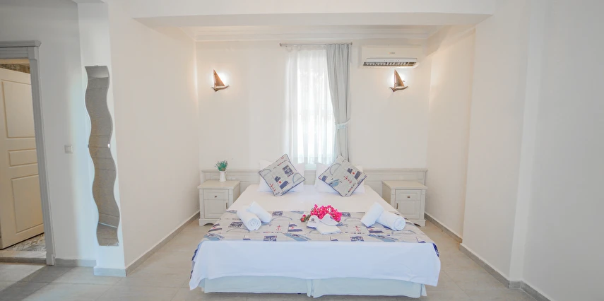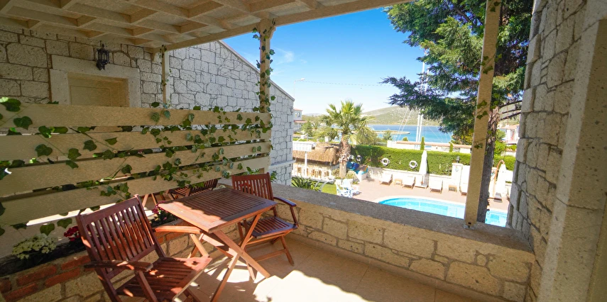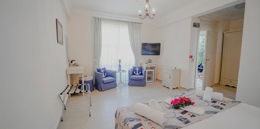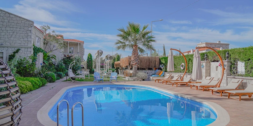 Bahçede açık yüzme havuzu, geniş yaşam alanı ve dinlenme köşeleri ile sakin bir tatil ortamı sunan tesis; sörf okulları ve su sporlarına kolay erişim sağlar. Anlaşmalı beach club’lara indirimli giriş ve sörf ekipmanı kiralama hizmetleri de misafirlere özel fırsatlar arasında yer alır.