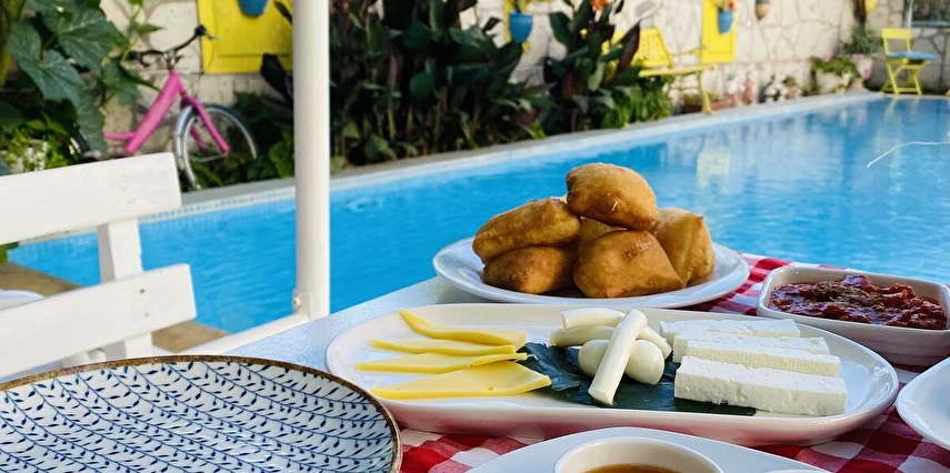 Sabahları Ege’ye özgü taze ve doğal ürünlerle hazırlanan kahvaltı, otelin keyifli bahçesinde veya ortak alanlarında sunulur. Gün içerisinde Alaçatı sokaklarını keşfetmek, butik mağazalarda gezmek ve yakın plajlarda denizin tadını çıkarmak isteyen misafirler için otelin konumu büyük avantaj sağlar.