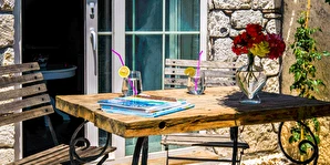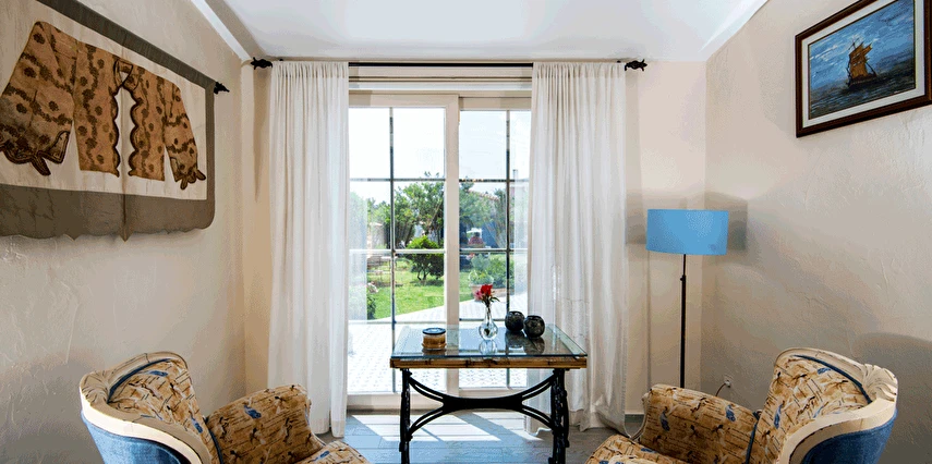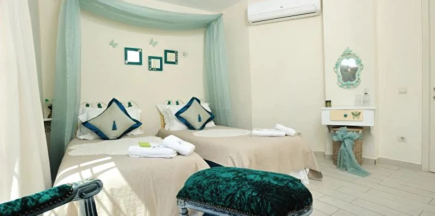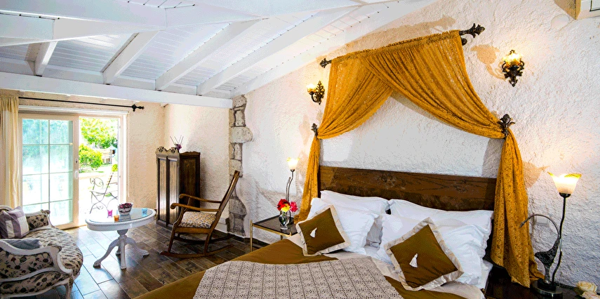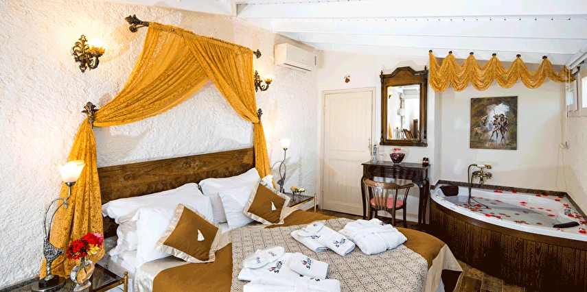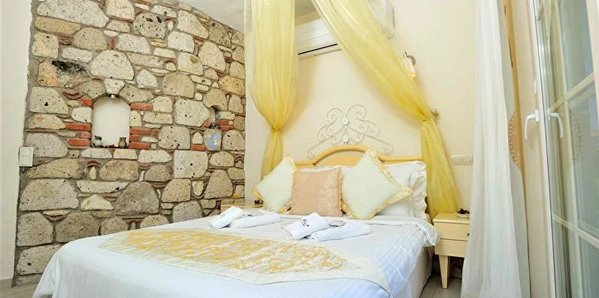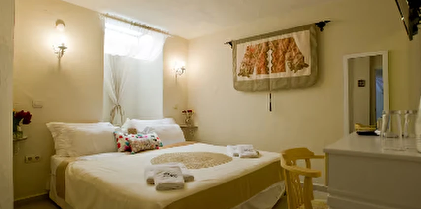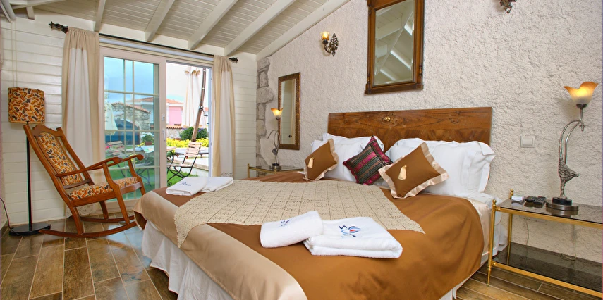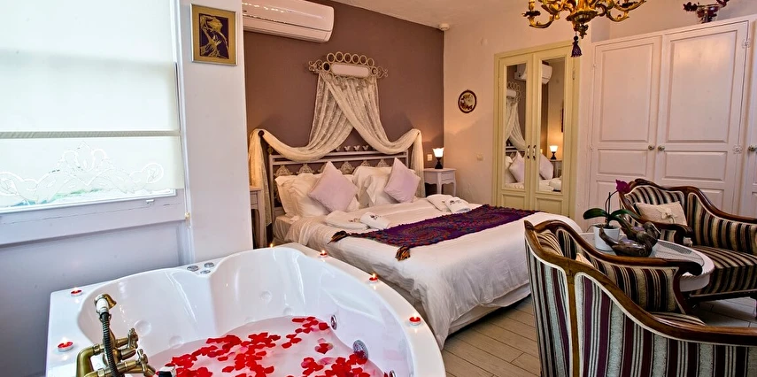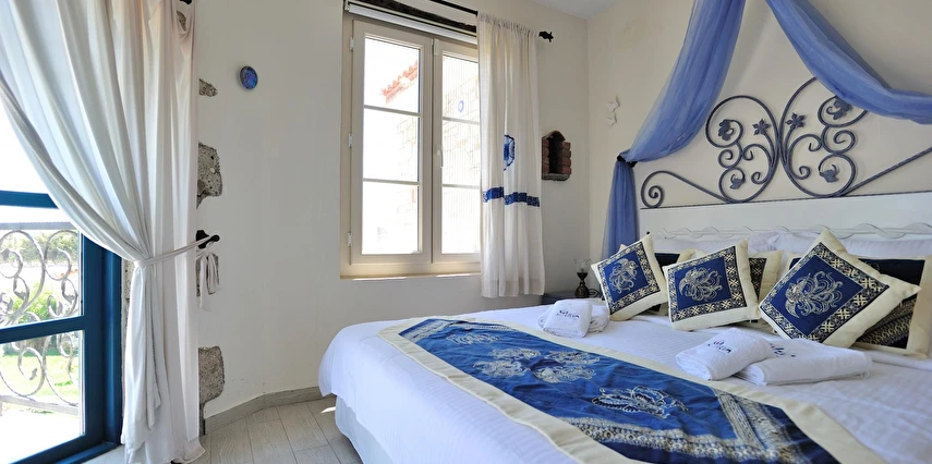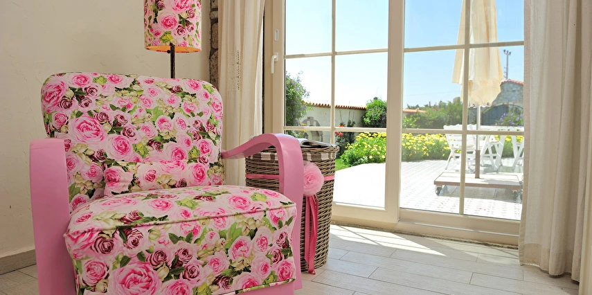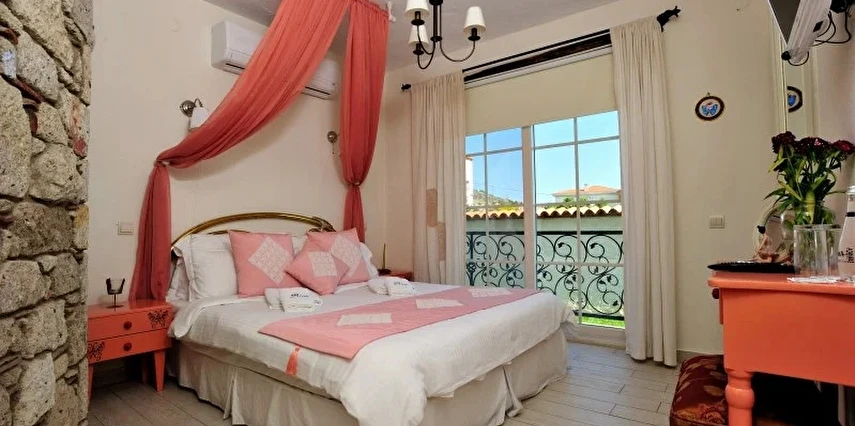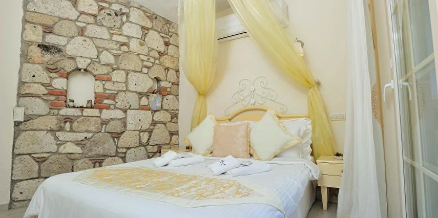 Yazın geniş ve ferah bahçesiyle; kışın yerden ısıtmalı, Jakuzili ve Şömineli romantik odalarıyla konforlu bir tatil vadeden tesis, 12 ay boyunca hizmet veriyor. Tesis, her biri farklı ve özel dekorasyonlu odaları ile balayı tatilleri için de çeşitli sürprizler sunuyor. Konsept dahilinde sunulan serpme kahvaltıda geniş kapsamlı ve organik ürünler sunuluyor. Tesis bünyesinde isteğe göre akşam yemeği; Ege mezeleri ve barbekü menüsü olarak da servis ediliyor. Köy içine yürüyüş mesafesinde olan tesis, geniş bir cadde üzerinde konumlanıyor. Misafirler ücretsiz olarak araçlarını park edebilir. Gözde tatil beldesi Alaçatı'da hizmet veren tesis, misafirlerini taş bir binada ağırlıyor. Aynı zamanda misafirler, Alaçatı köy merkezinin gürültüsünden uzak, kuş cıvıltıları içerisinde, geniş ve ferah bahçede sakin ve huzurlu zaman geçirebilir.