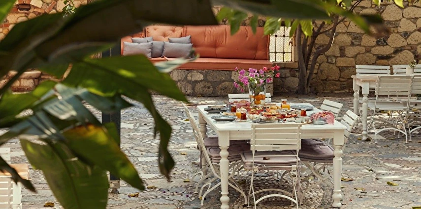 Geniş ve bakımlı bahçesinde dinlenebilir, havuz başında serinleyebilir ya da doğanın içinde huzurlu vakit geçirebilirsiniz. Otelde her sabah taze sebzeler, ev yapımı reçeller ve organik besinlerin yer aldığı bir kahvaltı ile güne lezzetli bir başlangıç yapabilirsin. Gün boyunca sunulan yöresel ev yapımı yemekler ve atıştırmalıklar misafirlerin beğenisini toplar.