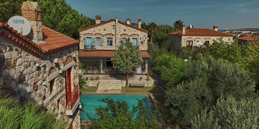 Alaçatı Zeytin Konak Otel, Ege’nin incisi Alaçatı’da yemyeşil bir bahçe içinde konfor ve huzuru buluşturan şirin bir butik konaklama tesisidir. Tesis, tarihi taş konak mimarisiyle tasarlanmış 22 oda ve iki yüzme havuzuyla misafirlerine dinlendirici ve keyifli bir tatil deneyimi sunar. Alaçatı çarşısı ve kafe/restoranlara sadece 5 dakikalık yürüme mesafesinde olmasıyla ideal bir konumda yer alır.