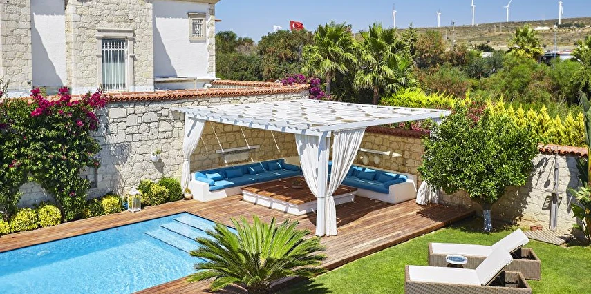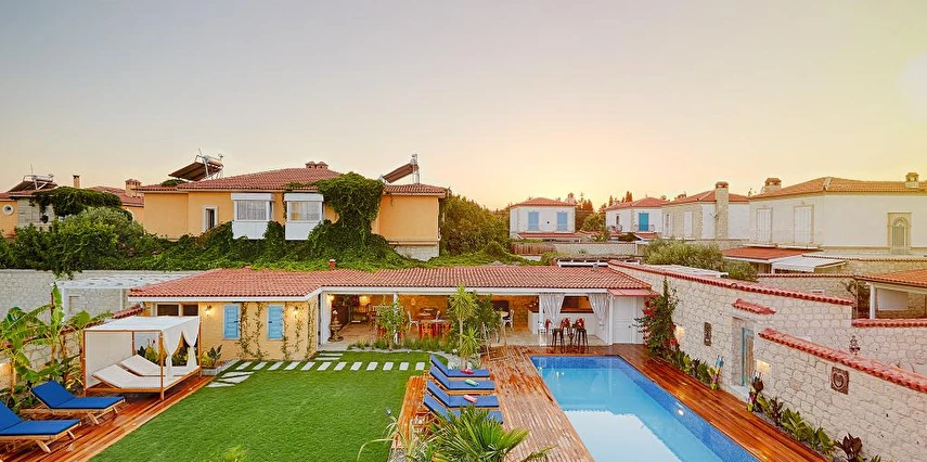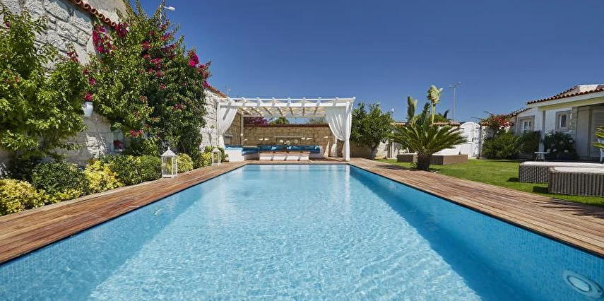 10 Odadan oluşan Otelimizin bahçesinde Otel misafirlerimiz için açık yüzme havuzumuz ve geniş bir güneşlenme alanımız bulunmaktadır. Ayrıca Otelimiz bünyesinde bulunan 3 farklı konseptteki villalarımızın her birinde müstakil yüzme havuzu, bahçe ve güneşlenme alanları bulunmaktadır.