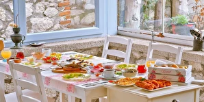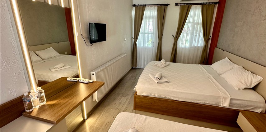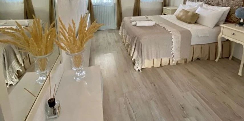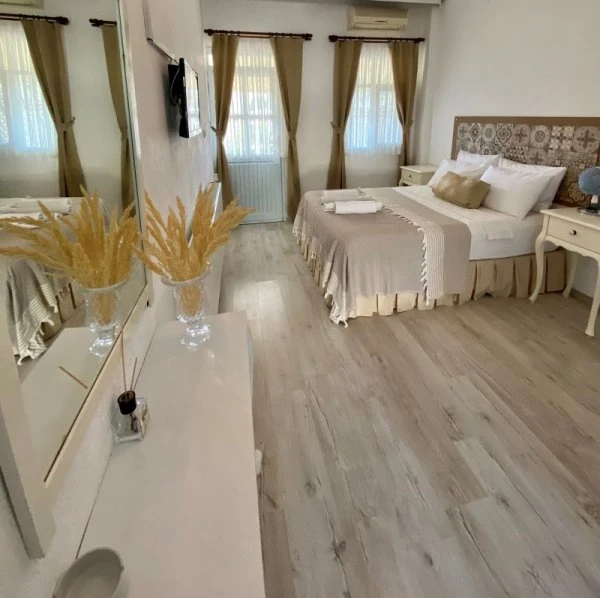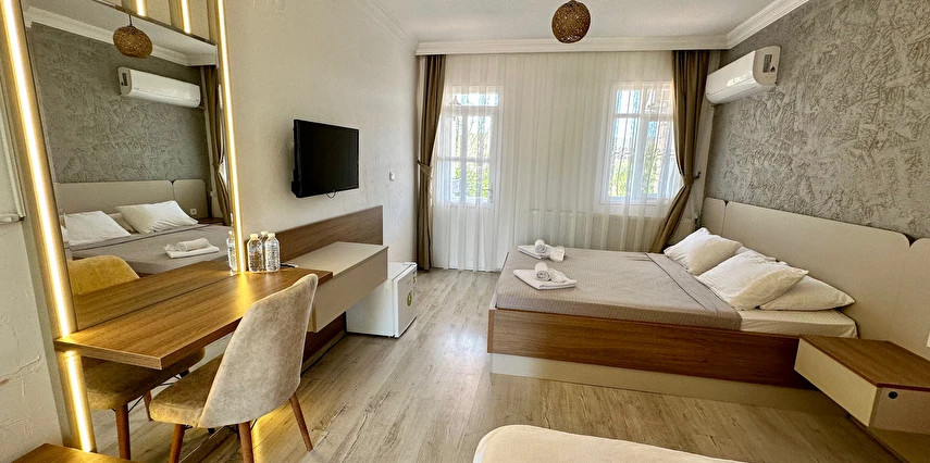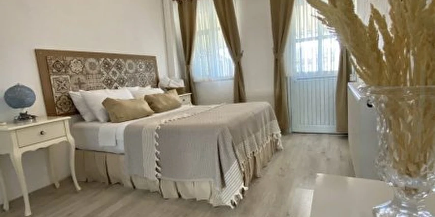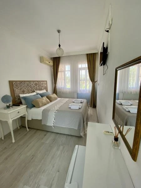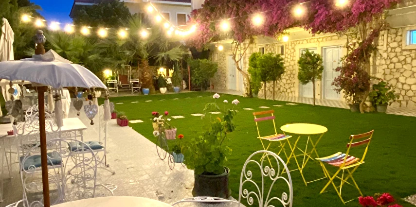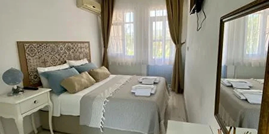 Tesisin kendine ait ücretsiz otoparkı mevcuttur. Keyifli konaklama olanağı sunan 16 adet odalarının hepsinde; Balkon veya Teras, Wi-Fi, TV, Uydu yayını, Klima, Kalorifer sistemi, Banyo, Saç kurutma makinesi, Dresuar, Ayna, Gardırop, Buklet malzemeleri, Havlu bulunmaktadır. Alaçatı'nın merkezinde huzurlu ve sakin bir bahçede kuş sesleri içerisinde yılın yorgunluğunu atabilirsiniz.