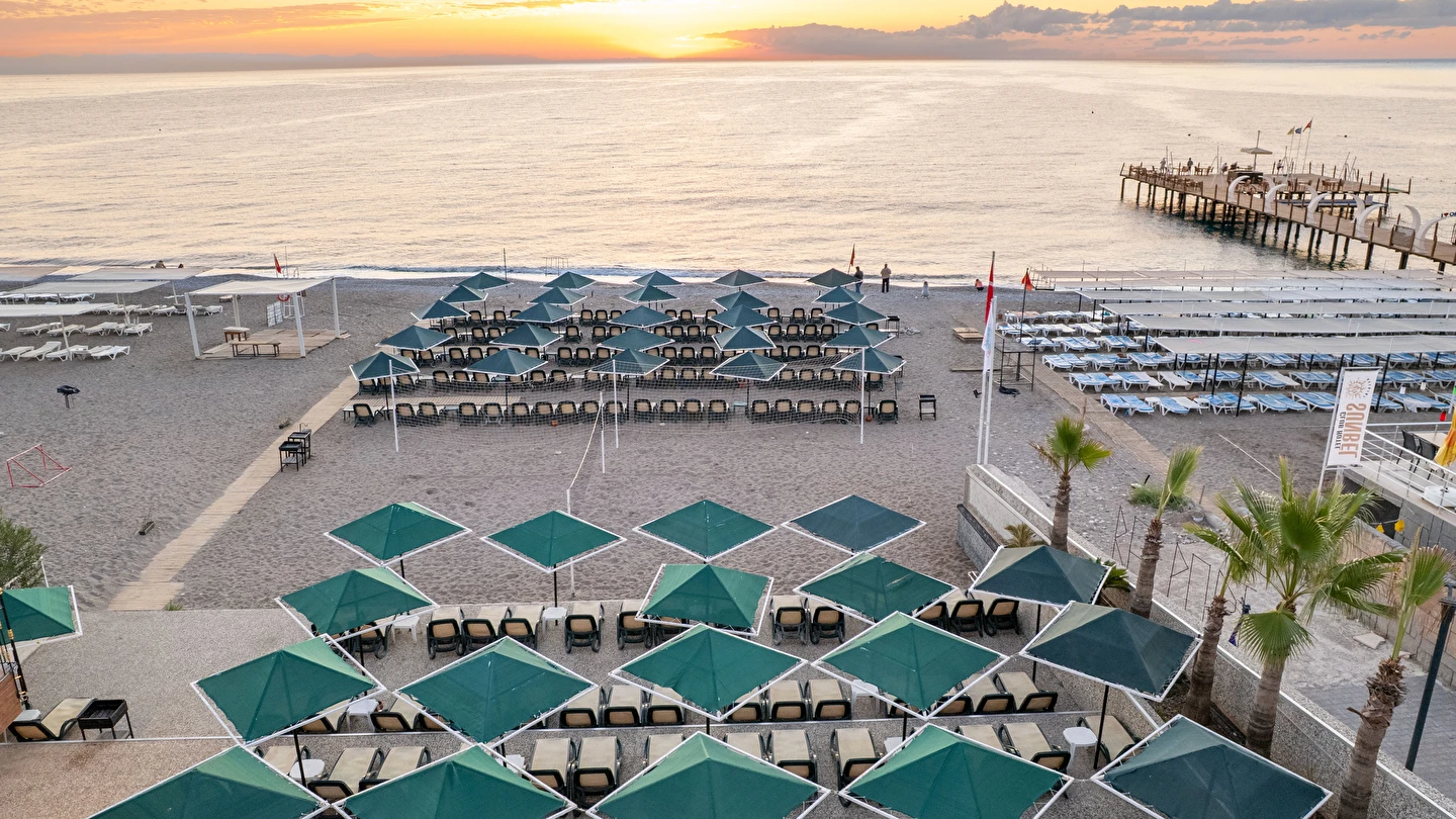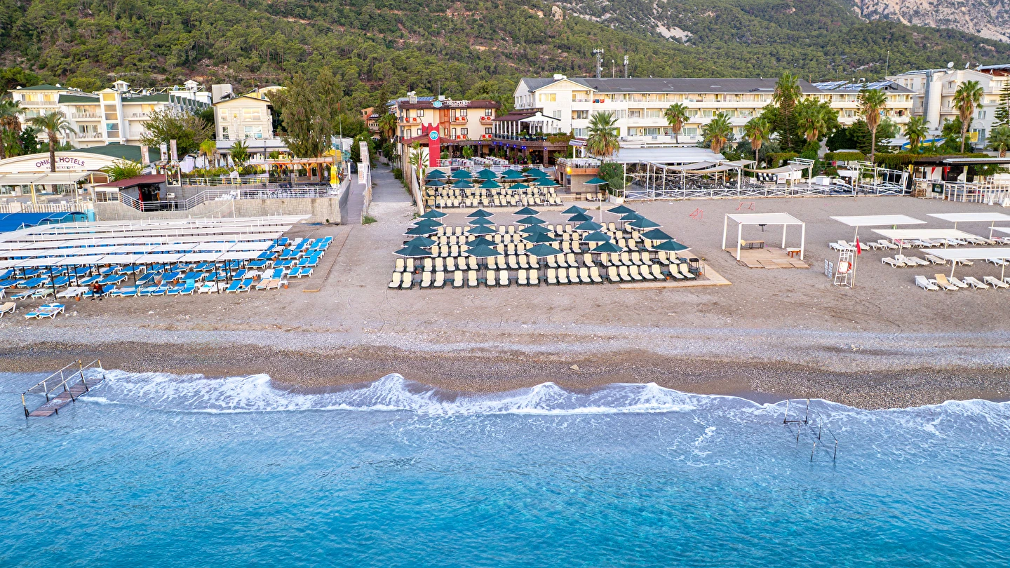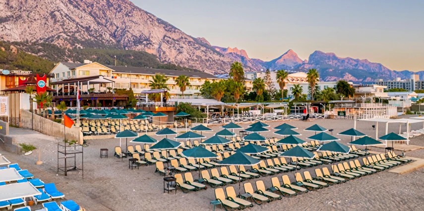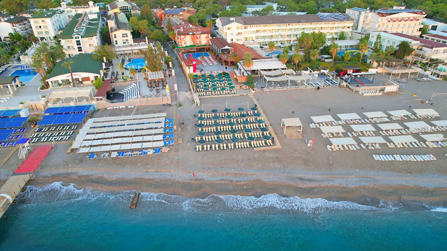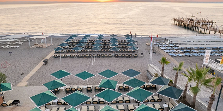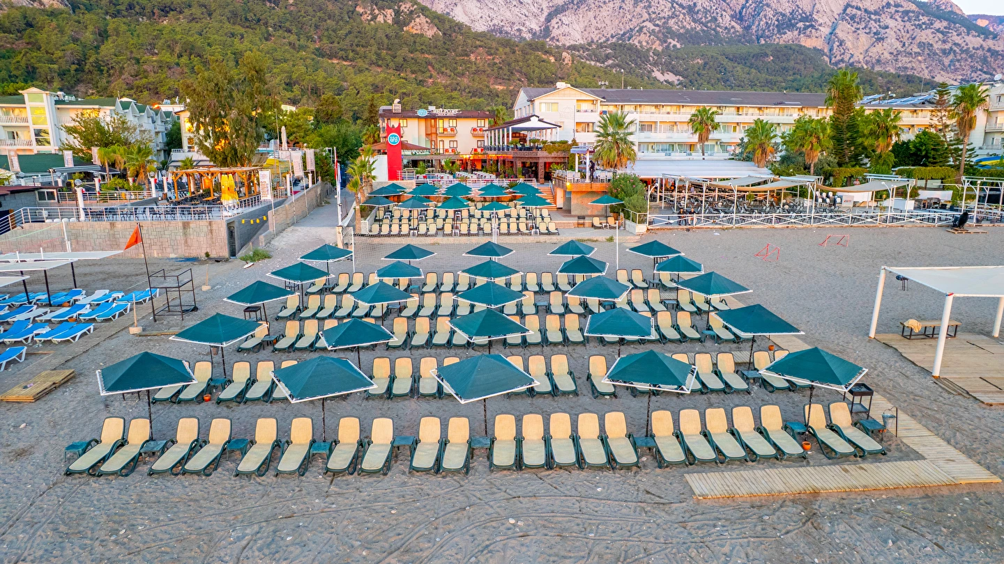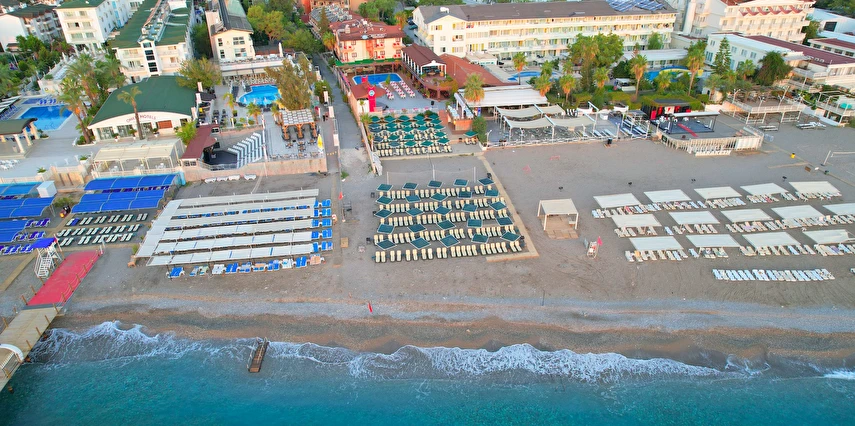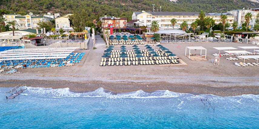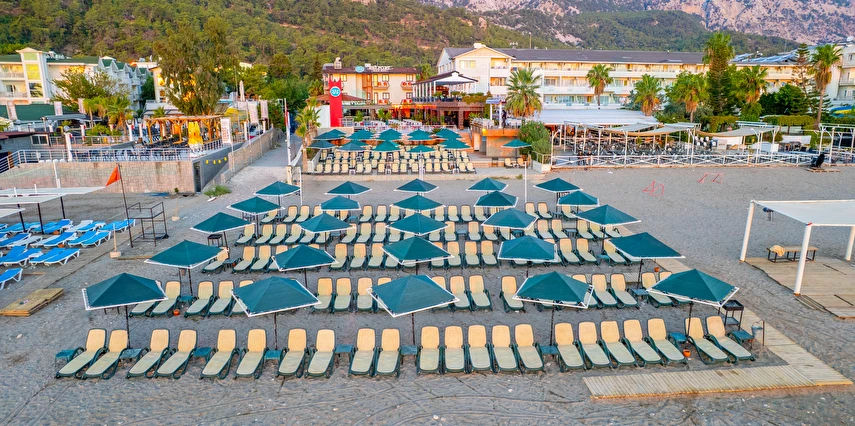 - Plaj 100 metre uzunluğunda olup denize 0 konumdadır, kum & küçük çakıl olan özel plajda, duş ve soyunma kabinleri, şemsiye, şezlong ve hizmeti ücretsiz verilmektedir. Plaj havlusu hizmeti verilmektedir. ( Havlu kartı ile alınmaktadır)