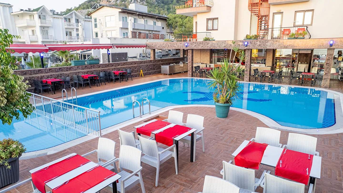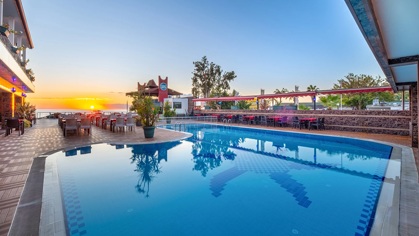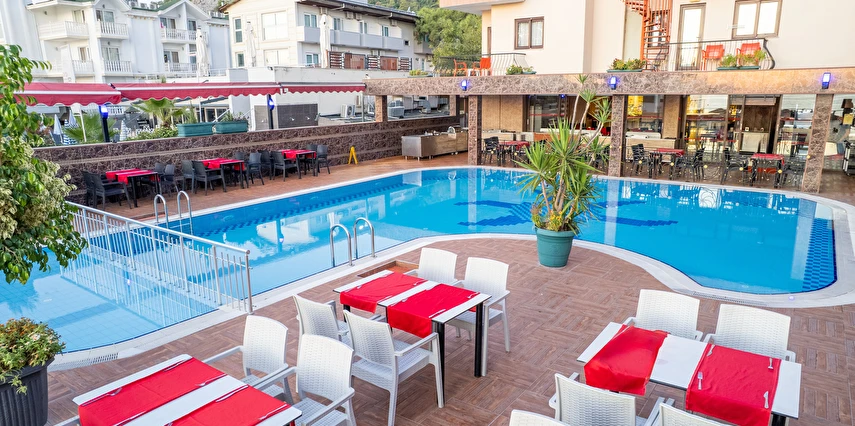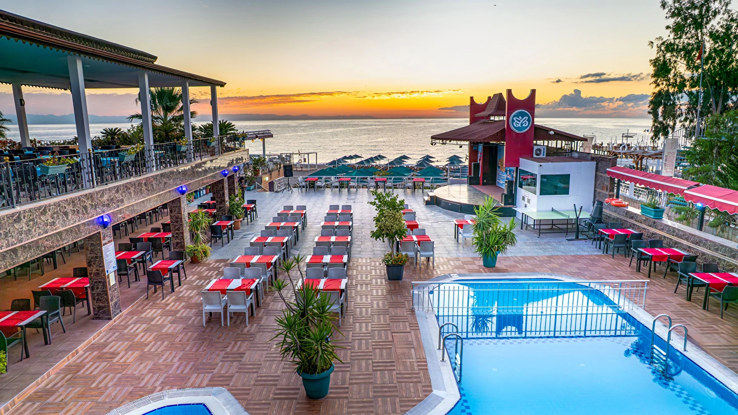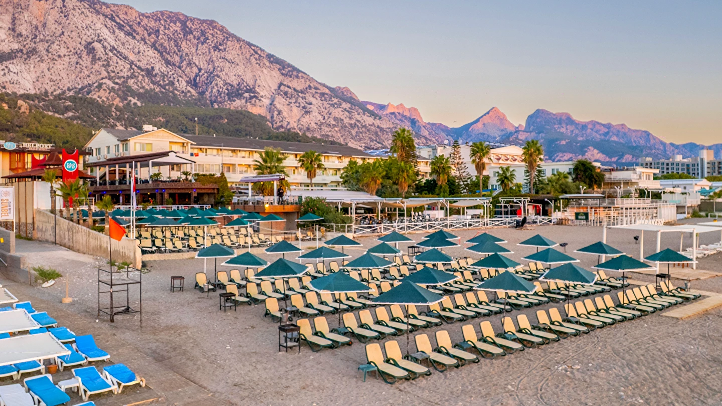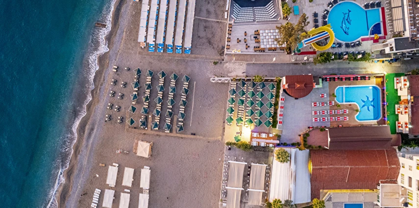 - Plaj 100 metre uzunluğunda olup denize 0 konumdadır, kum & küçük çakıl olan özel plajda, duş ve soyunma kabinleri, şemsiye, şezlong ve hizmeti ücretsiz verilmektedir. Plaj havlusu hizmeti verilmektedir. ( Havlu kartı ile alınmaktadır)