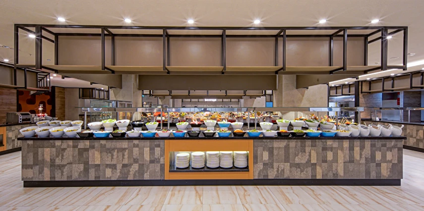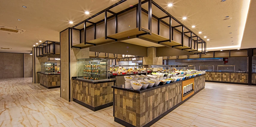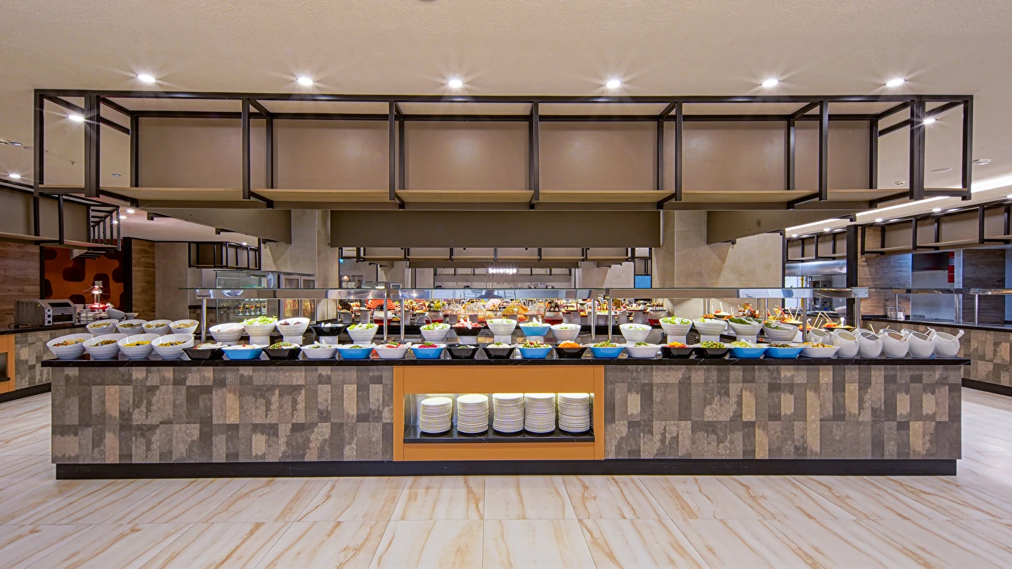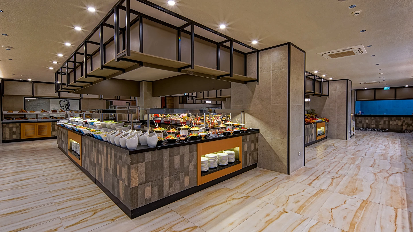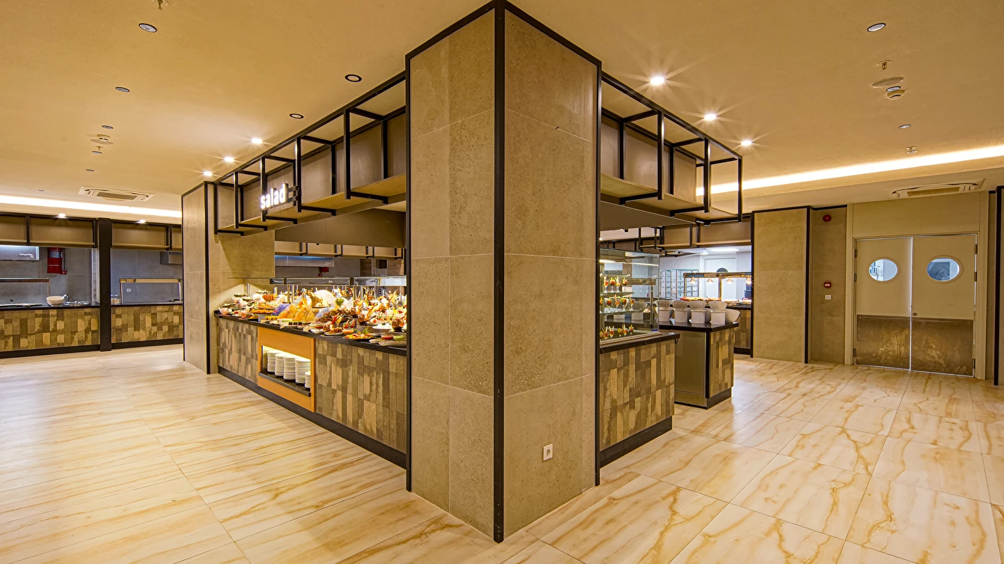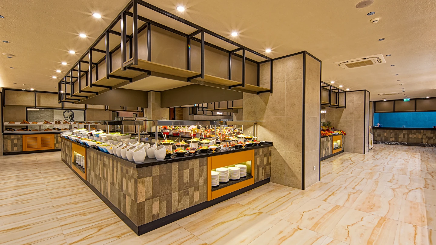 Sabah kahvaltısı, öğle ve akşam yemekleri açık büfe olup tesisin belirlemiş olduğu markalar dahilince 24 saat ücretsizdir. Yabancı içecekler,taze sıkılmış meyve suları ve şişe servisi ücretlidir. Disco haftanın belirli günleri açıktır. Biberon ısıtıcısı ve sterilizatörü 24 saat açık olan Lobby Barda ihtiyaç durumunda hizmete sunulmaktadır.