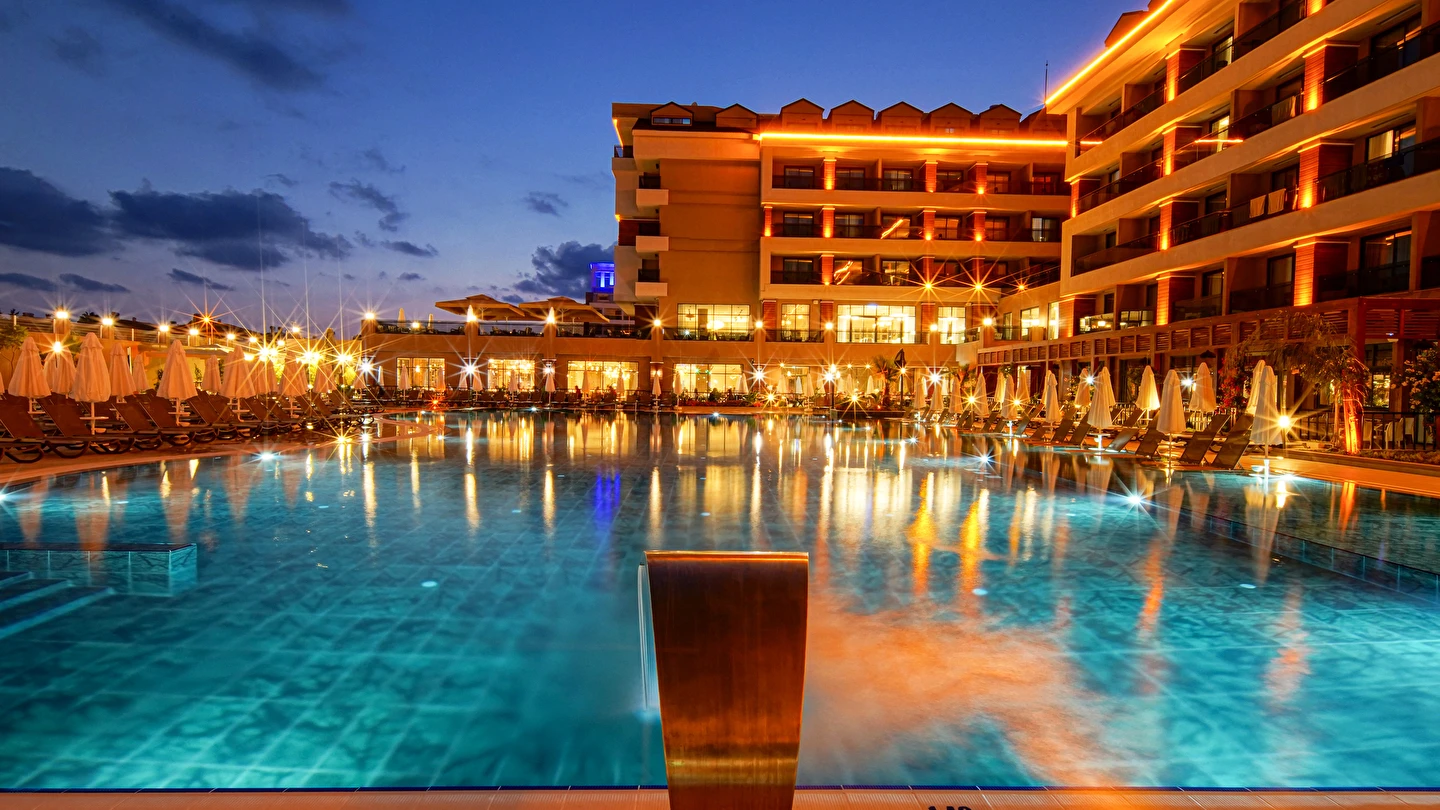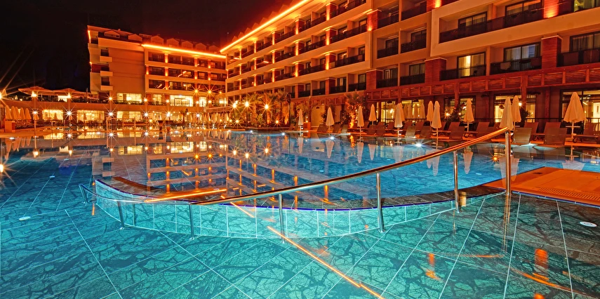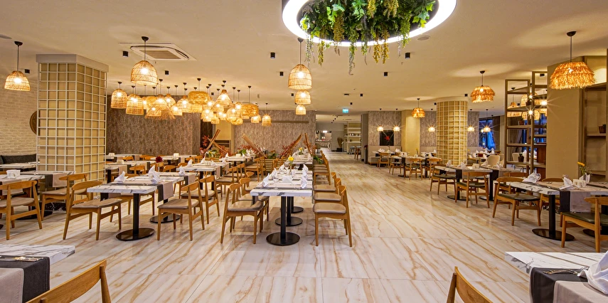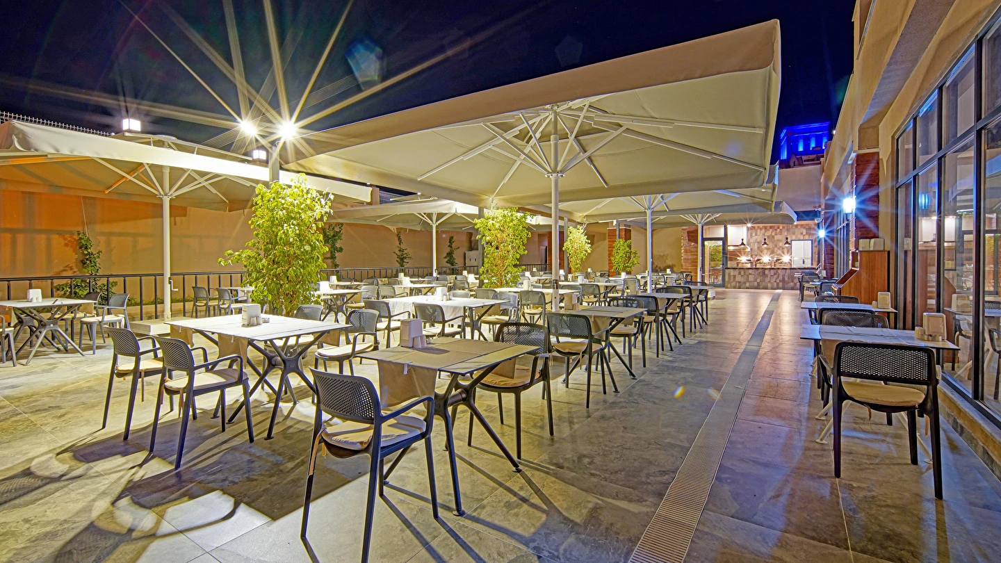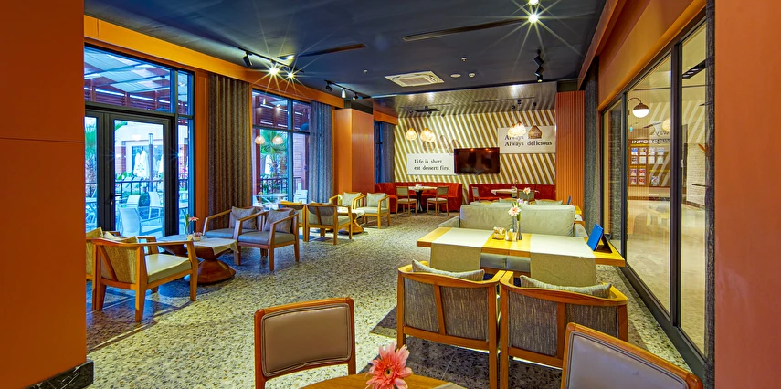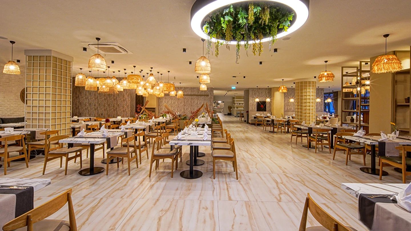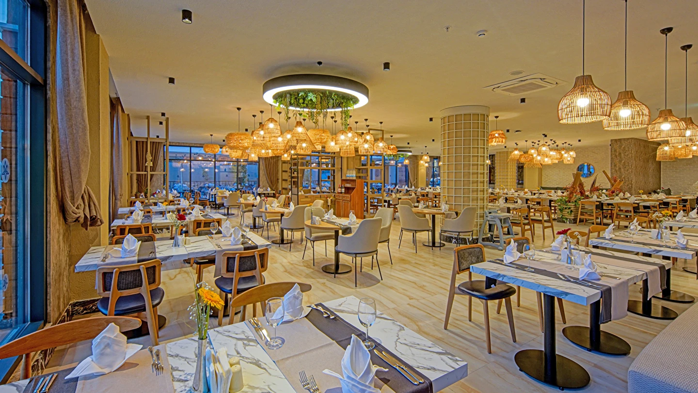 Sabah kahvaltısı, öğle ve akşam yemekleri açık büfe olup tesisin belirlemiş olduğu markalar dahilince 24 saat ücretsizdir. Yabancı içecekler,taze sıkılmış meyve suları ve şişe servisi ücretlidir. Disco haftanın belirli günleri açıktır. Biberon ısıtıcısı ve sterilizatörü 24 saat açık olan Lobby Barda ihtiyaç durumunda hizmete sunulmaktadır.
