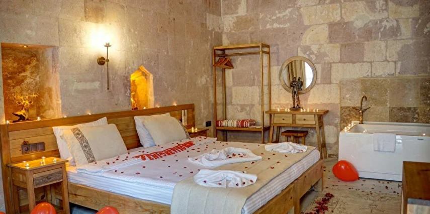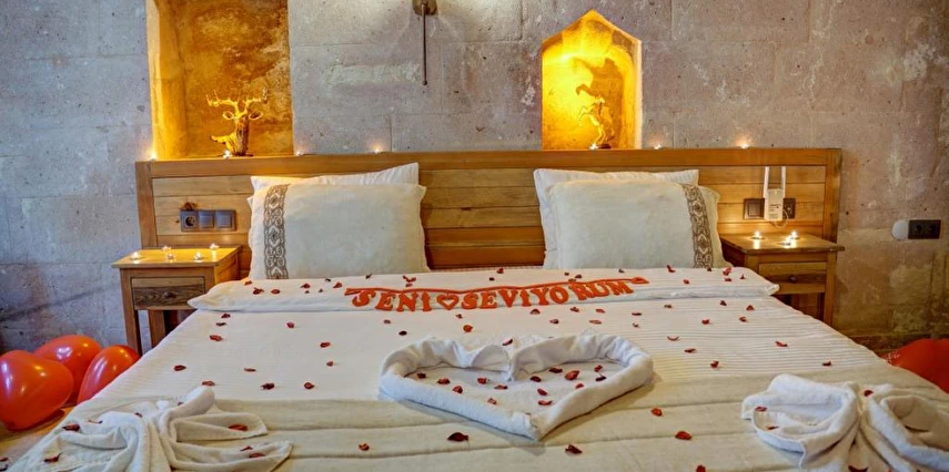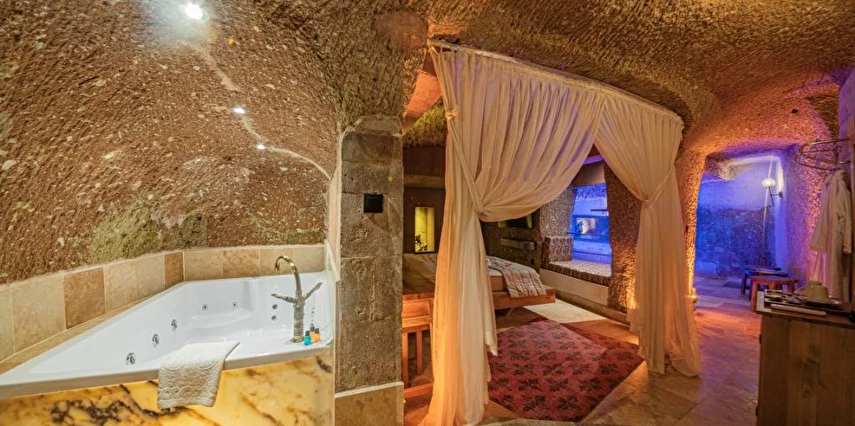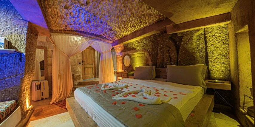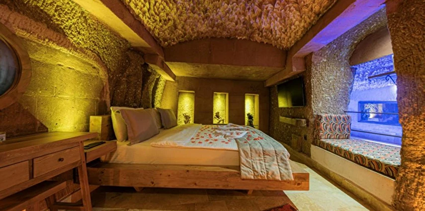 Kapadokya'nın göz alıcı atmosferinde yer alan Alfa Cave Hotel, eşsiz mağara konaklama deneyimi sunmaktadır. Tarihi dokuya uyumlu odalarda rahatlayabilir, lezzetli yemekleri tadabilir ve eşsiz manzarayı keşfedebilirsiniz. Tesis içerisinde yer alan masaj hizmetlerinden faydalanarak rahatlayabilir ve kendinizi yenilenmiş hissedebilirsiniz. Aksiyon sever tatilciler için binicilik imkanı bulunmaktadır. Tesis içerisinde bulunan doktor, fotoğrafçı ve araç kiralama hizmetlerinden yararlanabilirsiniz.