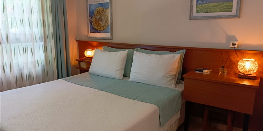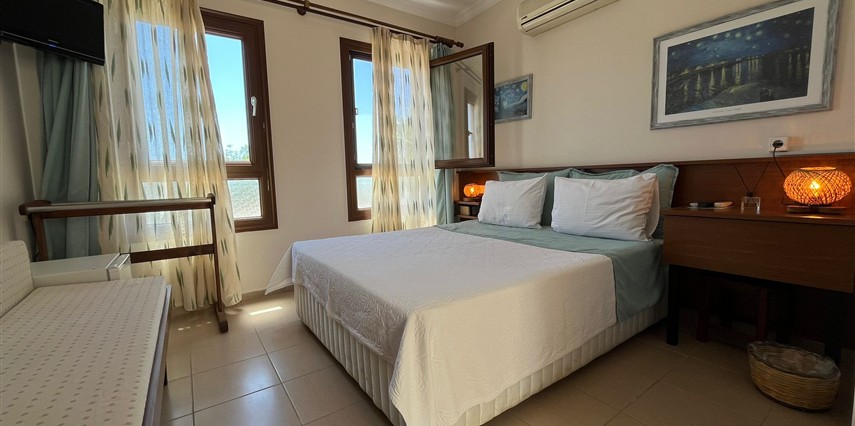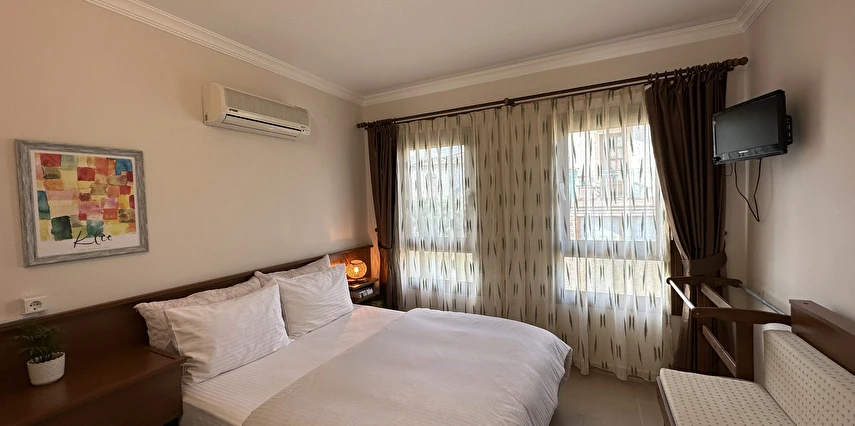 Toplamda 14 adet olan Alibeyhan Otel odalarında; klima, mini bar, TV, uydu yayını, gardırop, kablosuz internet bağlantısı, banyo, tuvalet ve saç kurutma makinesi mevcuttur.