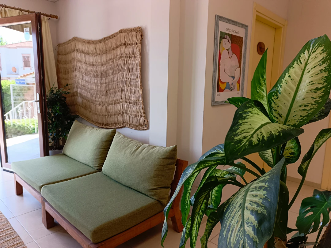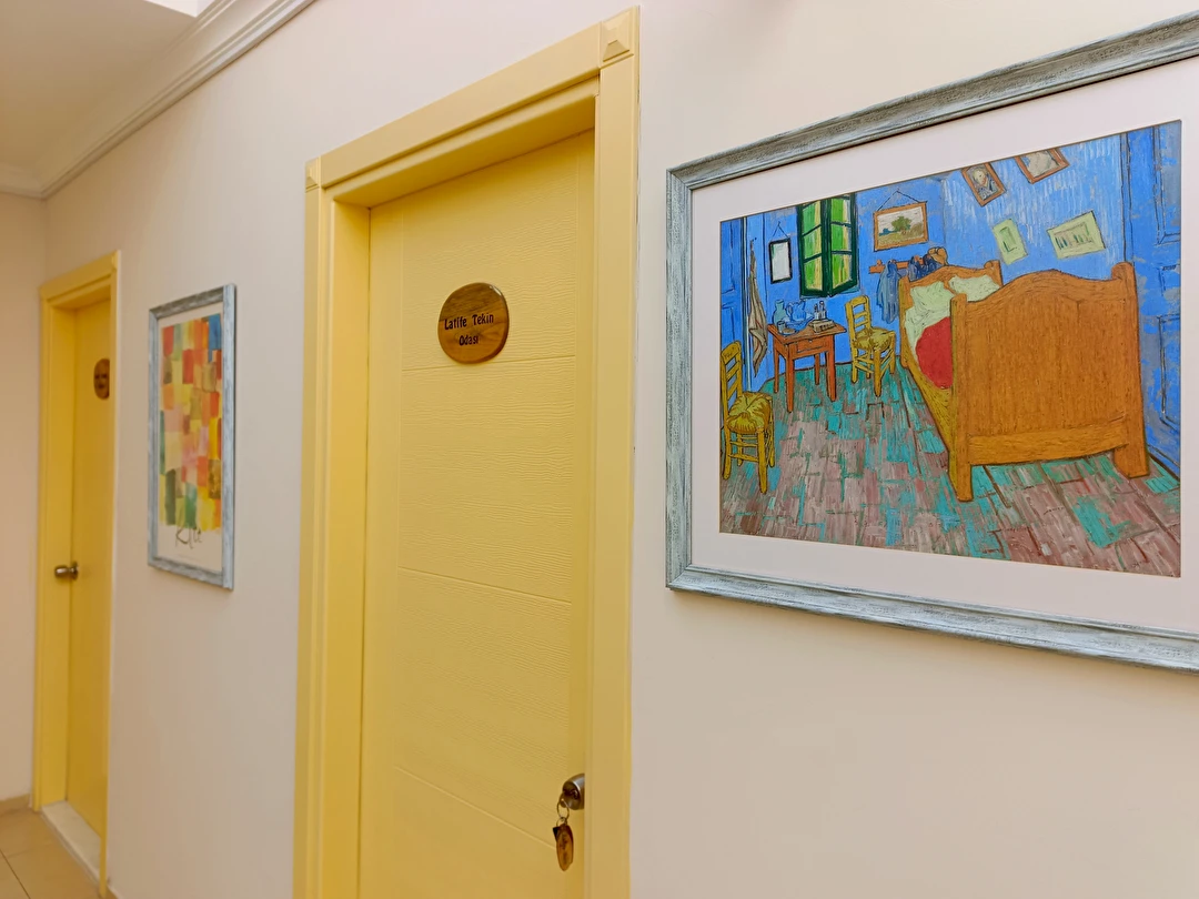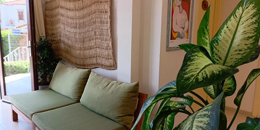 Cunda Adası'nın Merkezi'nde, gezilecek yerlere yürüyüş mesafesinde, ücretsiz otoparkı olan, 14 odalı şirin ve edebiyat konseptli bir tesistir. Tesisin Sarımsaklı'da anlaşmalı plajı bulunmaktadır.
