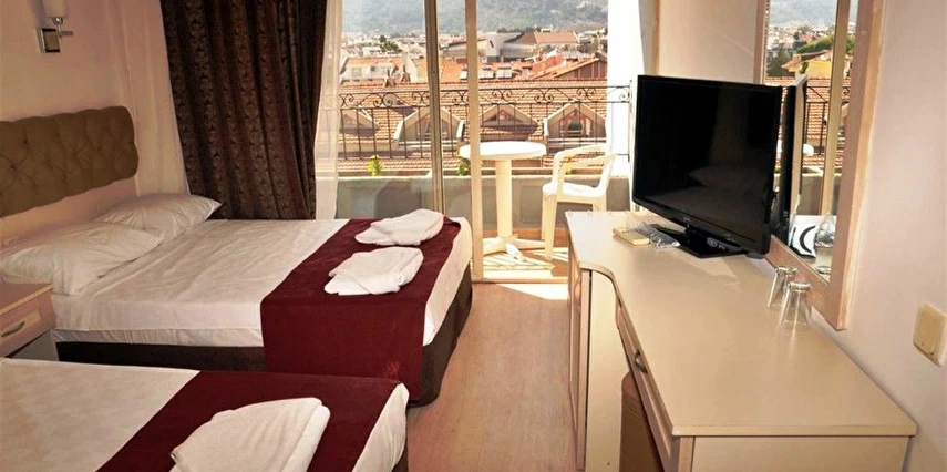 Her Şey Dahil konsepti ile hizmet veren Almena City,açık ve kapalı restoran alanlarına sahip. Açık yüzme havuzu ile misafirlerine keyifli bir serinleme alanı sunan tesiste misafirler, bar alanında serinletici içeceklerin tadını çıkarabilir, bisiklet gibi aktiviteler ile tatillerine renk katabilirler. Tesis Dalaman Havaalanı'na 97 km, Marmaris'e 2 km uzaklıkta bulunuyor. Almena City Hotel Marmaris, Siteler bölgesinde bulunmaktadır. Tesisin denize uzaklığı 300 - 400 metre arasındadır. Tesis herşey dahil konseptinde hizmet vermektedir. Tesiste bulunan açık restaurant, kapalı restaurantta yemeklerinizi yiyebilirsiniz. Açık yüzme havuzunda eğlenerek serinleme imkanı bulabileceksiniz. Tatiliniz süresince bisiklet gibi aktiviteler ile zamanınızı değerlendirebilirsiniz. Keyifli vakit geçirmeniz için tesiste bar bulunmaktadır. Odanızda bulunan merkezi klima/split klima ile oda sıcaklığınız ayarlanabilir. Konaklamanız boyunca faydalanabileceğiniz TV, telefon ve oda kasası standart odalarda mevcuttur. Oda servisi hizmeti bulunmaktadır. Otel Dalaman Havaalanı'na 97 km, Marmaris'e 2 km uzaklıktadır. Doğal güzelliklere ve eğlenceli gece hayatına sahip olan Marmaris'te hizmet veren Almena City; misafirlerini deniz manzaralı odalarında ağırlıyor. Tüm odalarında balkon, TV, klima gibi olanaklar bulunan tesis, denize yaklaşık 400 m mesafede bulunuyor.