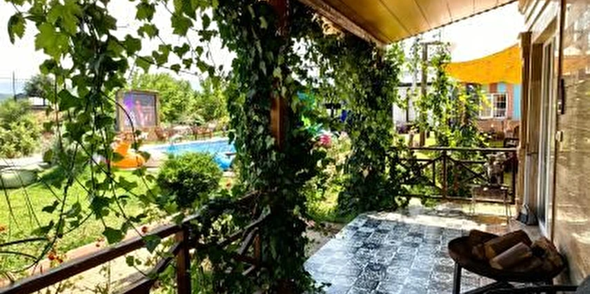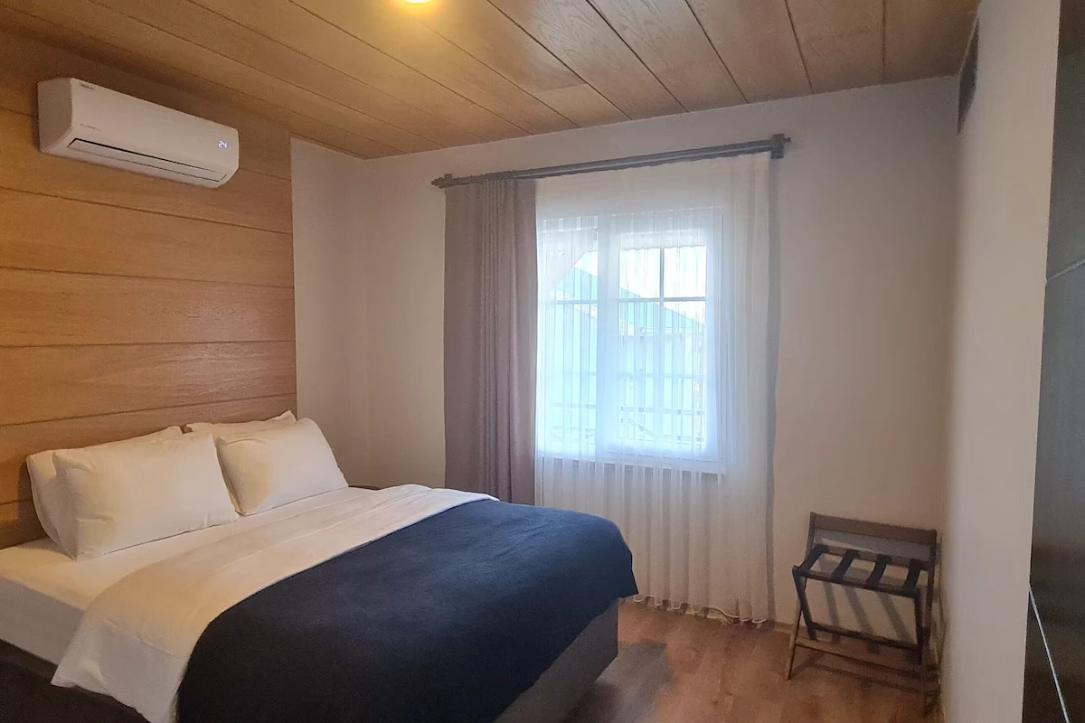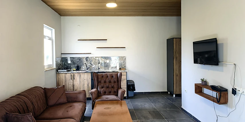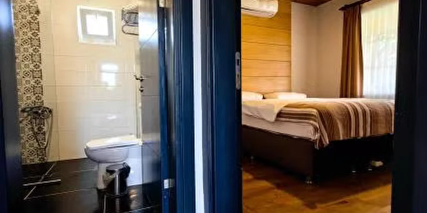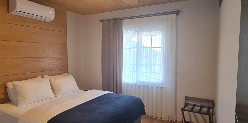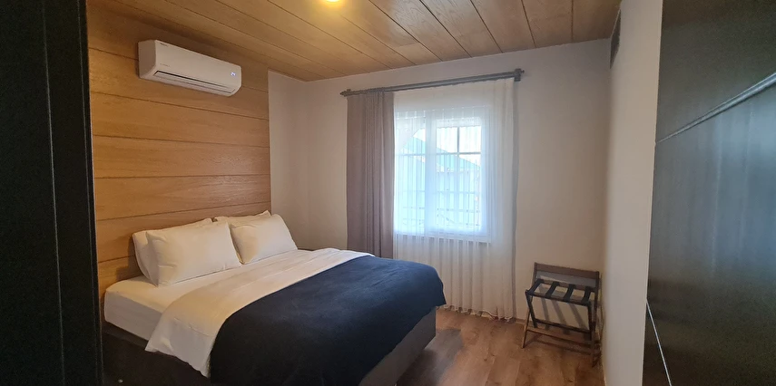 Misafirlerini küçük villa tipi evlerde ağırlayan tesis, keyifli bir konaklama vadediyor. Tesisin evlerinde; şömine, klimalı salon, mutfak, yatak odası, banyo ve teras bulunuyor. Tesiste şömine kullanımı için sınırsız odun veriliyor.