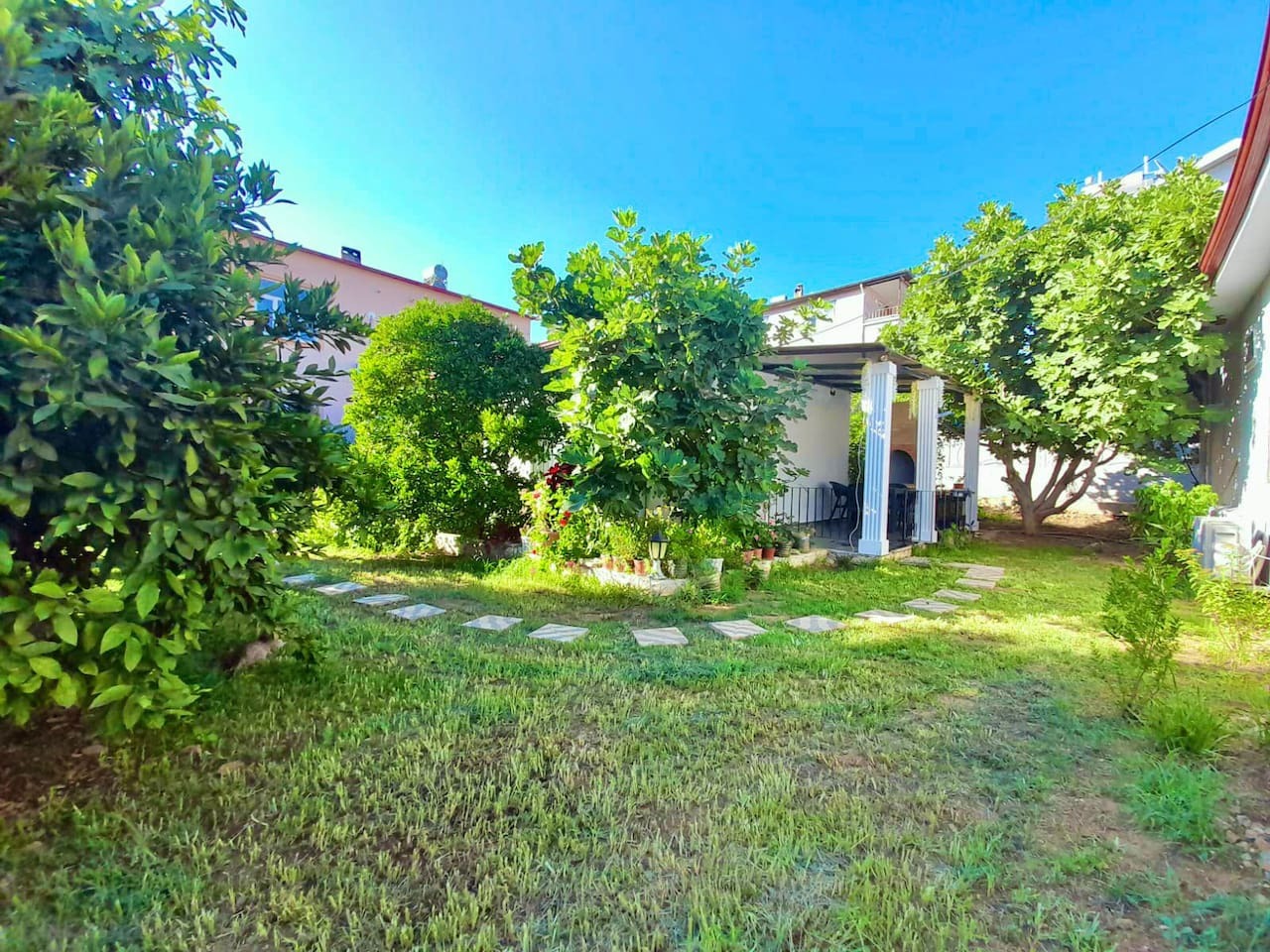 Tesisin çevresi; portakal, incir ve nar ağaçlarıyla çevrili sakin bir mahalledir ve Akdeniz iklimine uygun bitki örtüsü ile dinlendirici bir atmosfer sağlar.