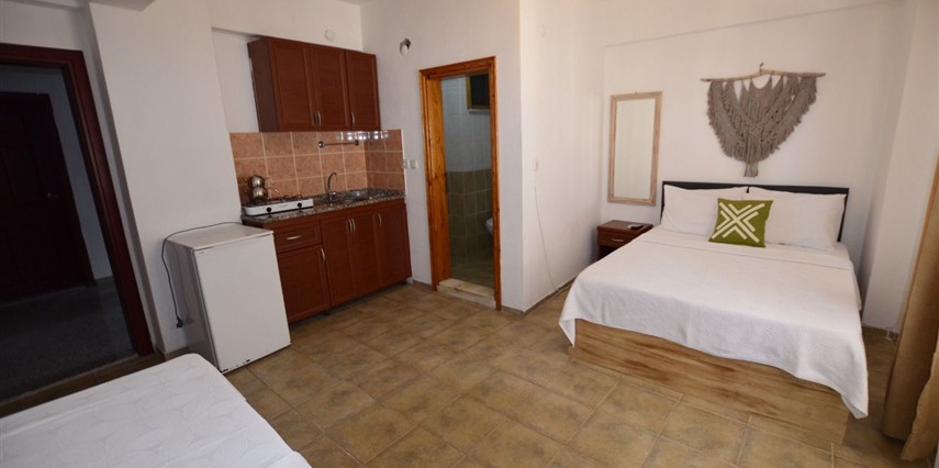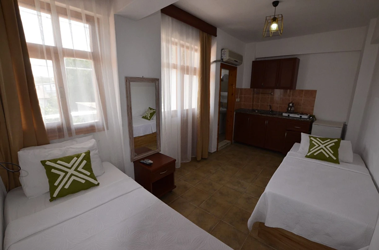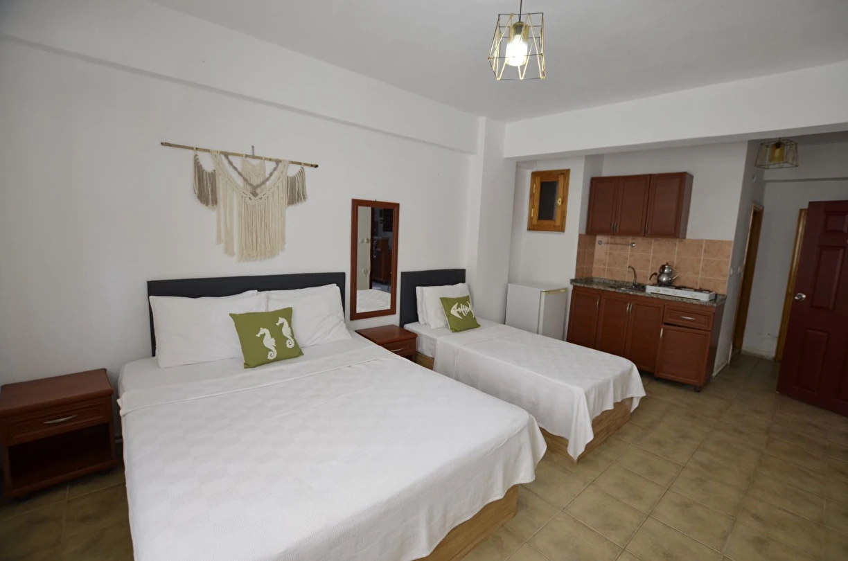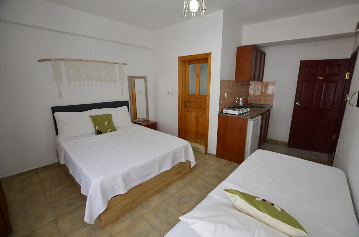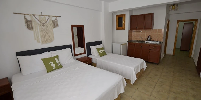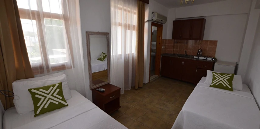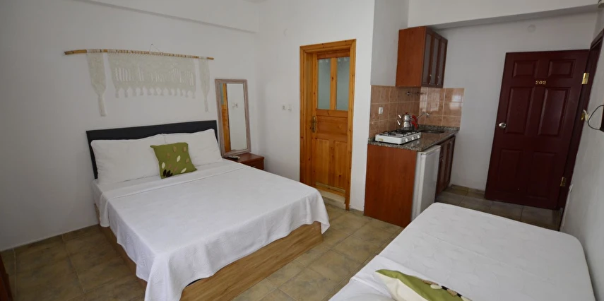 Odalarımız geniş, ferah ve kullanışlı şekilde düzenlenmiştir. Her apart dairemizde temel mutfak ekipmanları, buzdolabı, ocak, yemek masası ve mutfak gereçleri bulunur. Böylece tatiliniz boyunca kendi yemeğinizi yapabilir, özgür ve ekonomik bir konaklama deneyimi yaşayabilirsiniz.