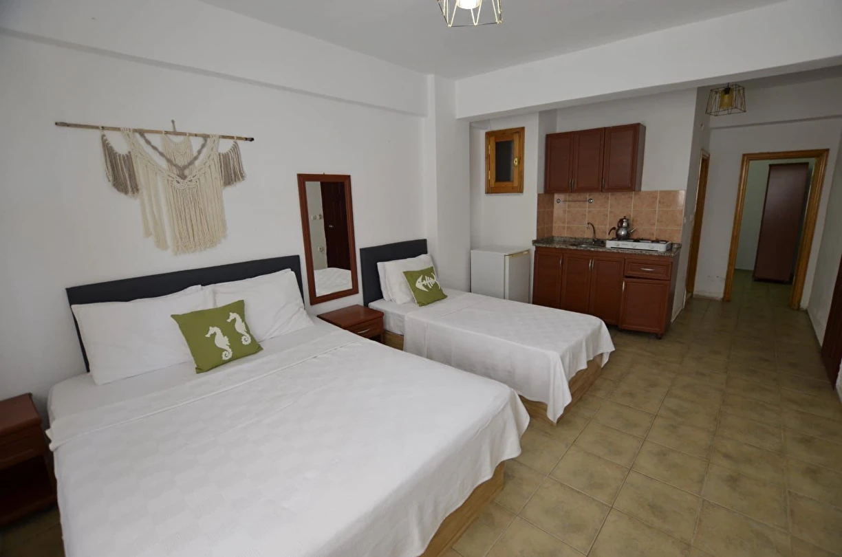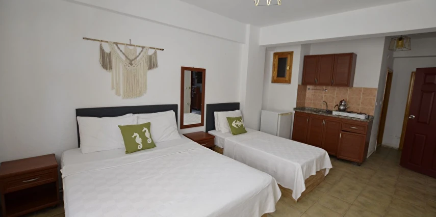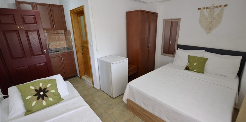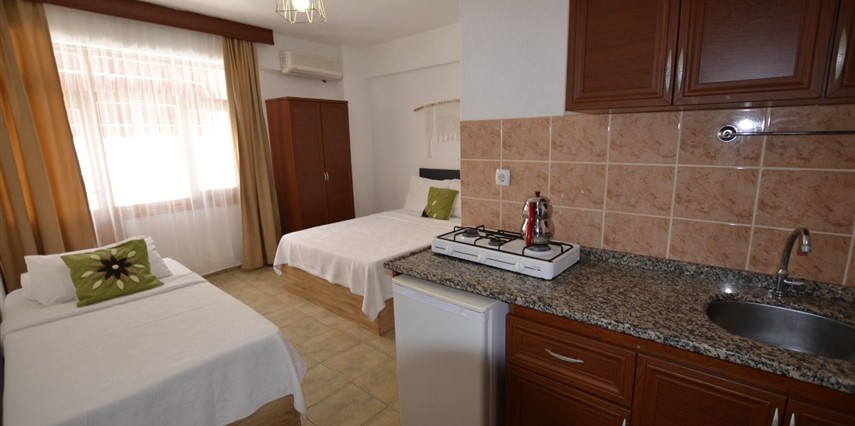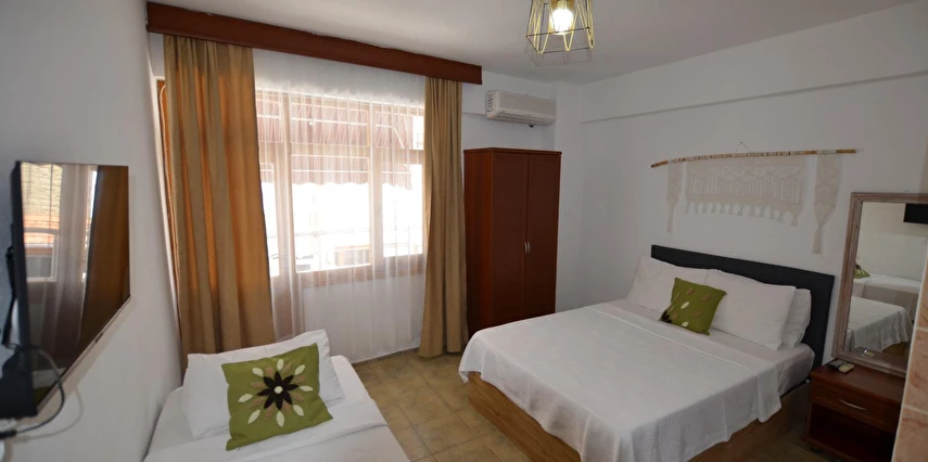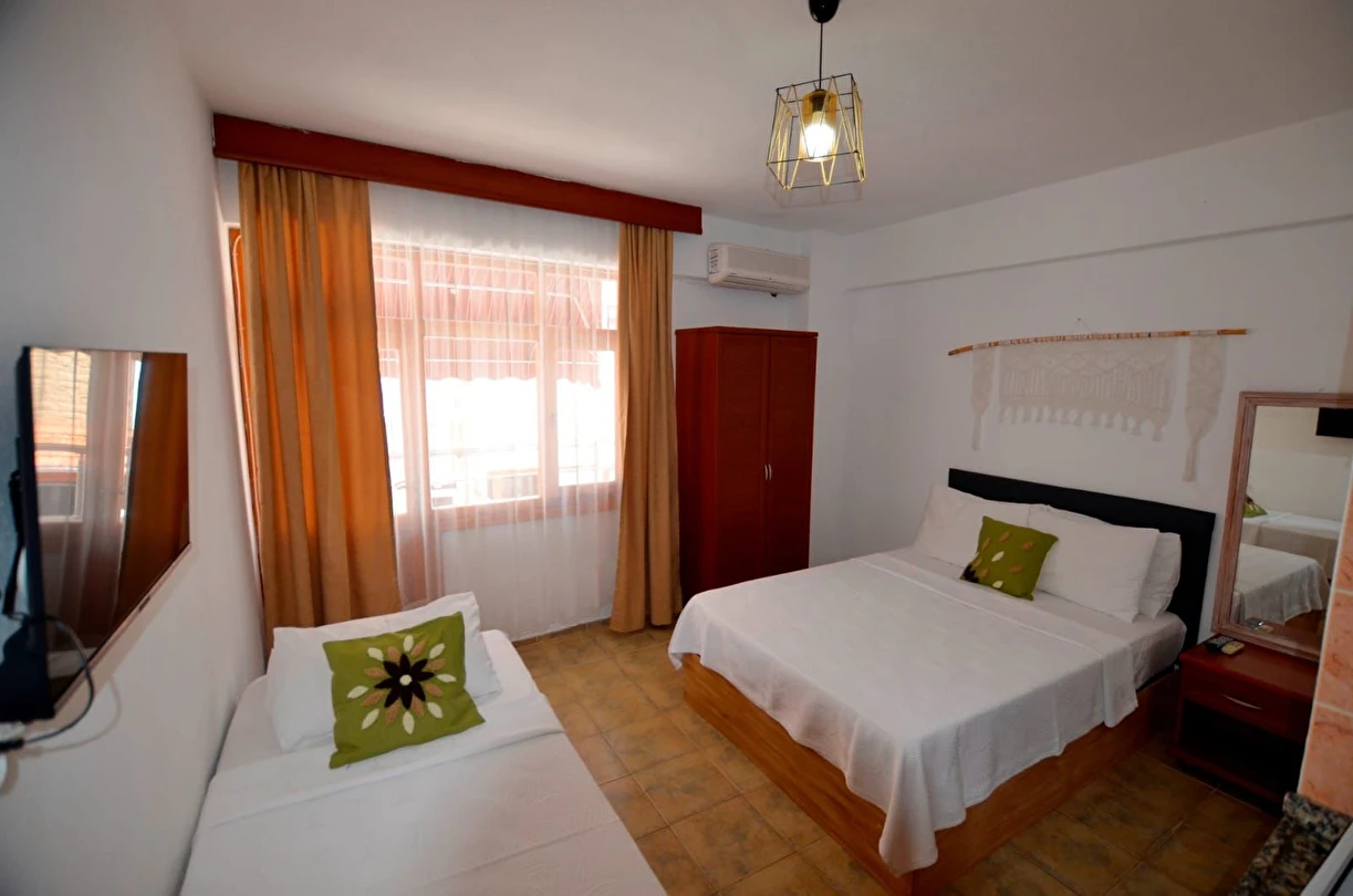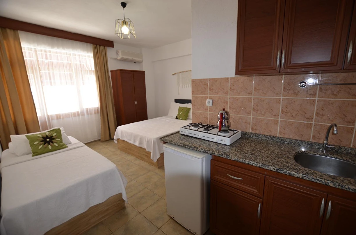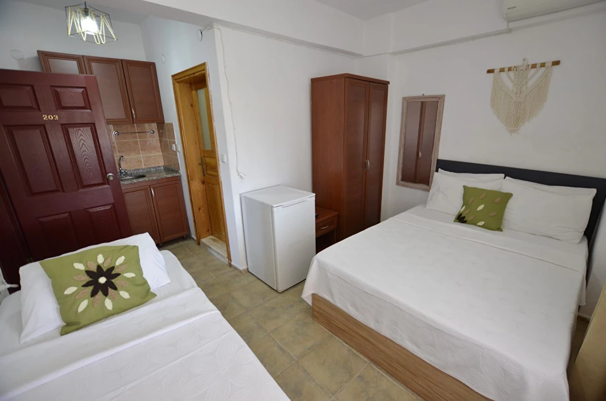 Odalarımız geniş, ferah ve kullanışlı şekilde düzenlenmiştir. Her apart dairemizde temel mutfak ekipmanları, buzdolabı, ocak, yemek masası ve mutfak gereçleri bulunur. Böylece tatiliniz boyunca kendi yemeğinizi yapabilir, özgür ve ekonomik bir konaklama deneyimi yaşayabilirsiniz.