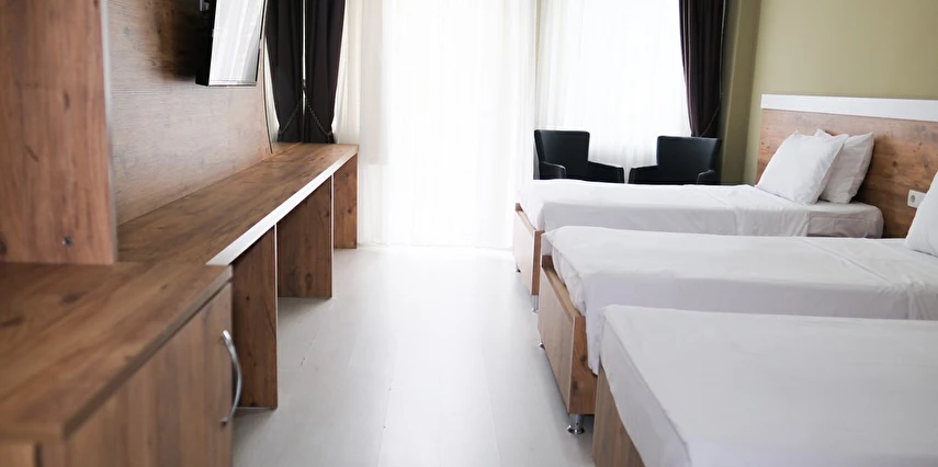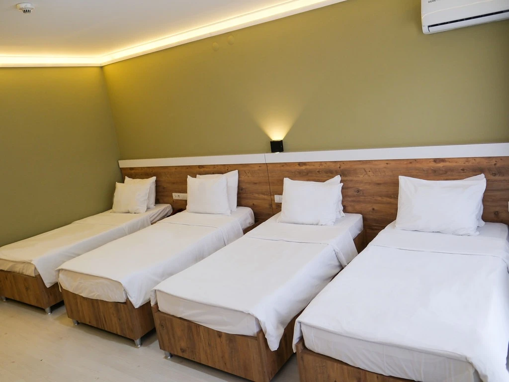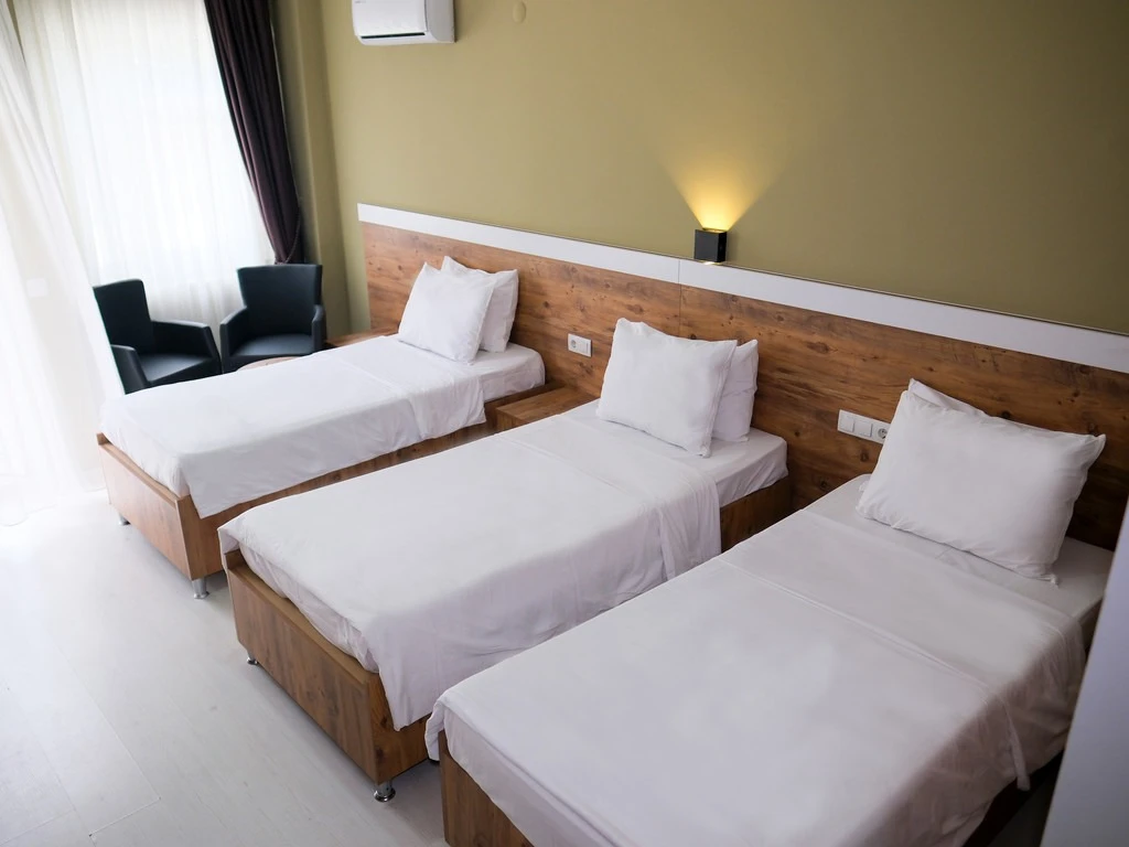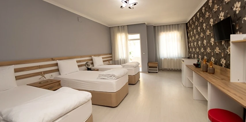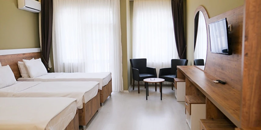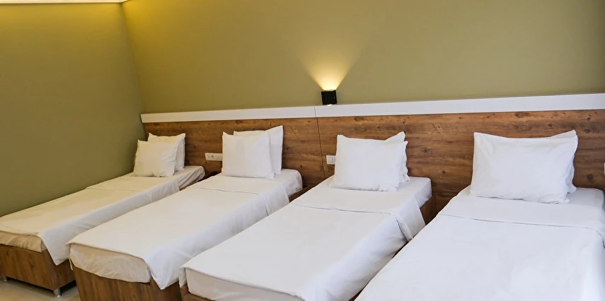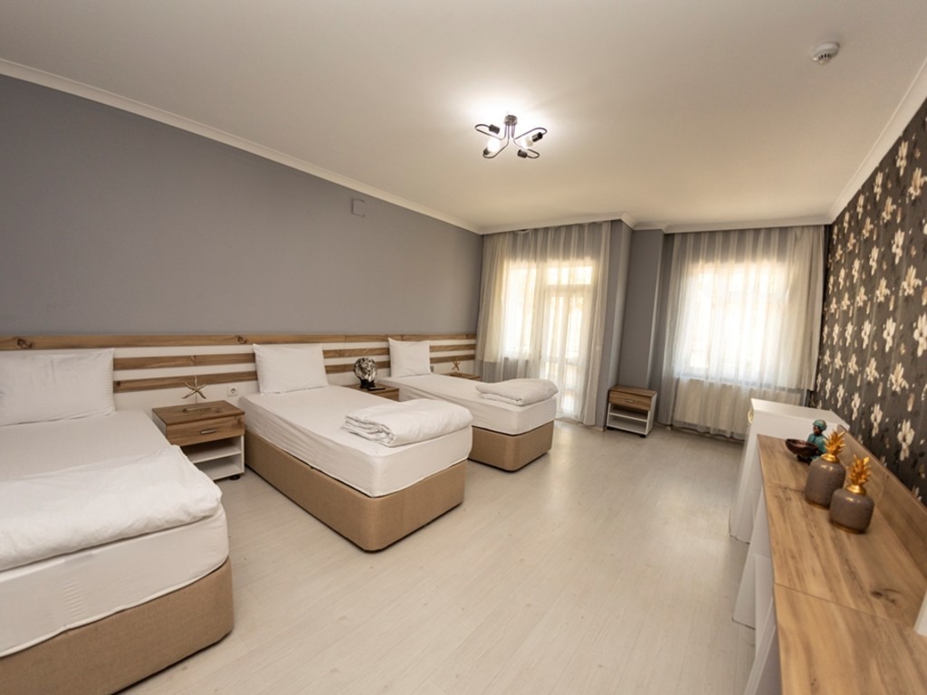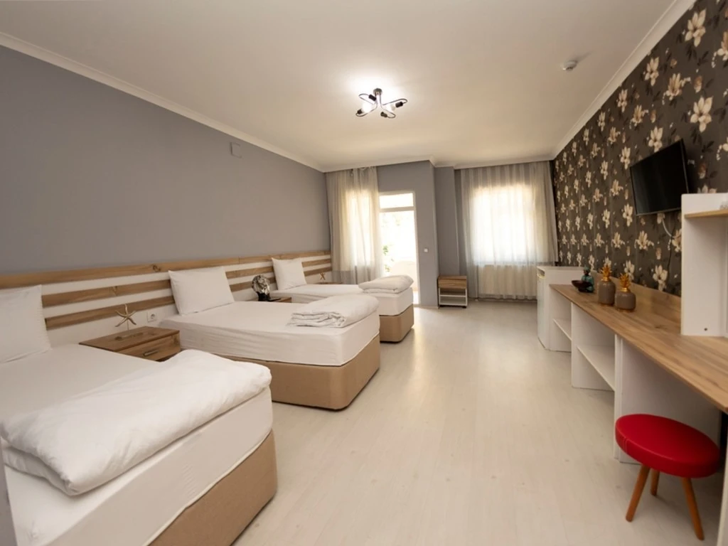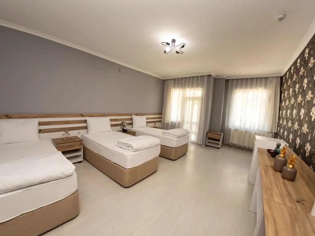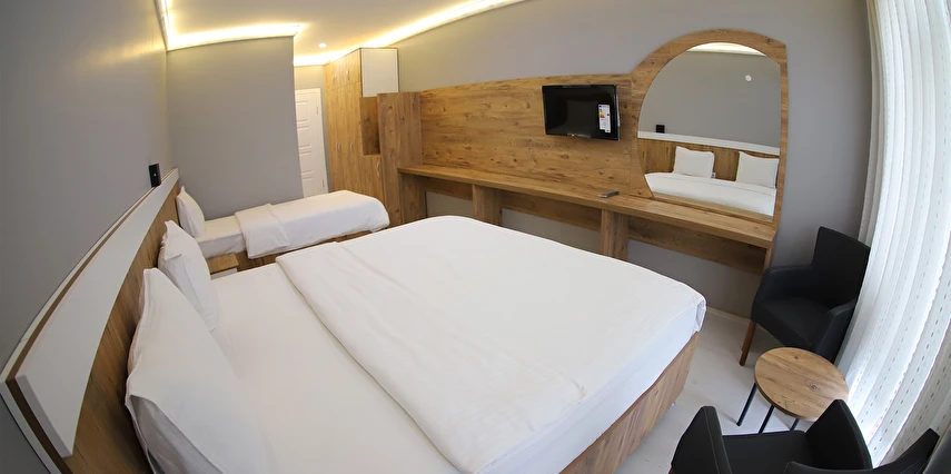 Daha Fazla GösterHotelimiz, tamamı misafir rahatlığı düşünülerek hazırlanmış 3 adet süit 30 adet iki kişi 12 adet üç kişi 10 adet dört kişi toplam 57 oda 144 yatakdır. Odalarımızda . Klima . Minibar . karşılama seti . 90 kişi kapasiteli Kahvaltı salonu ve restoran . 50 kişilik toplantı salonu . elektirikli araç sarj ünitesi . Otoparkımız mevcuttur.