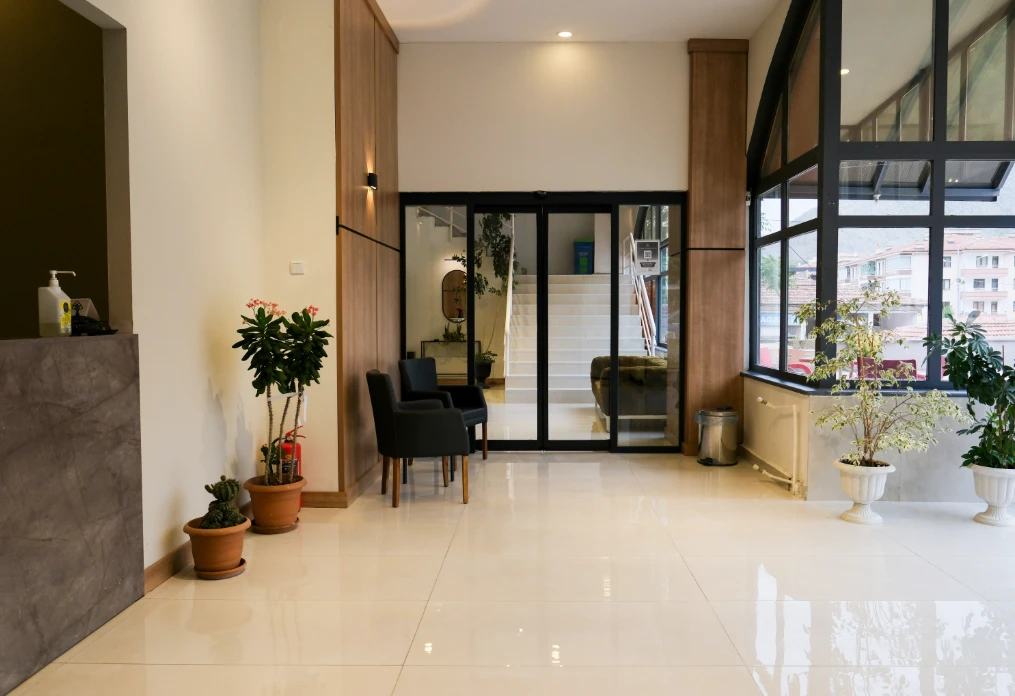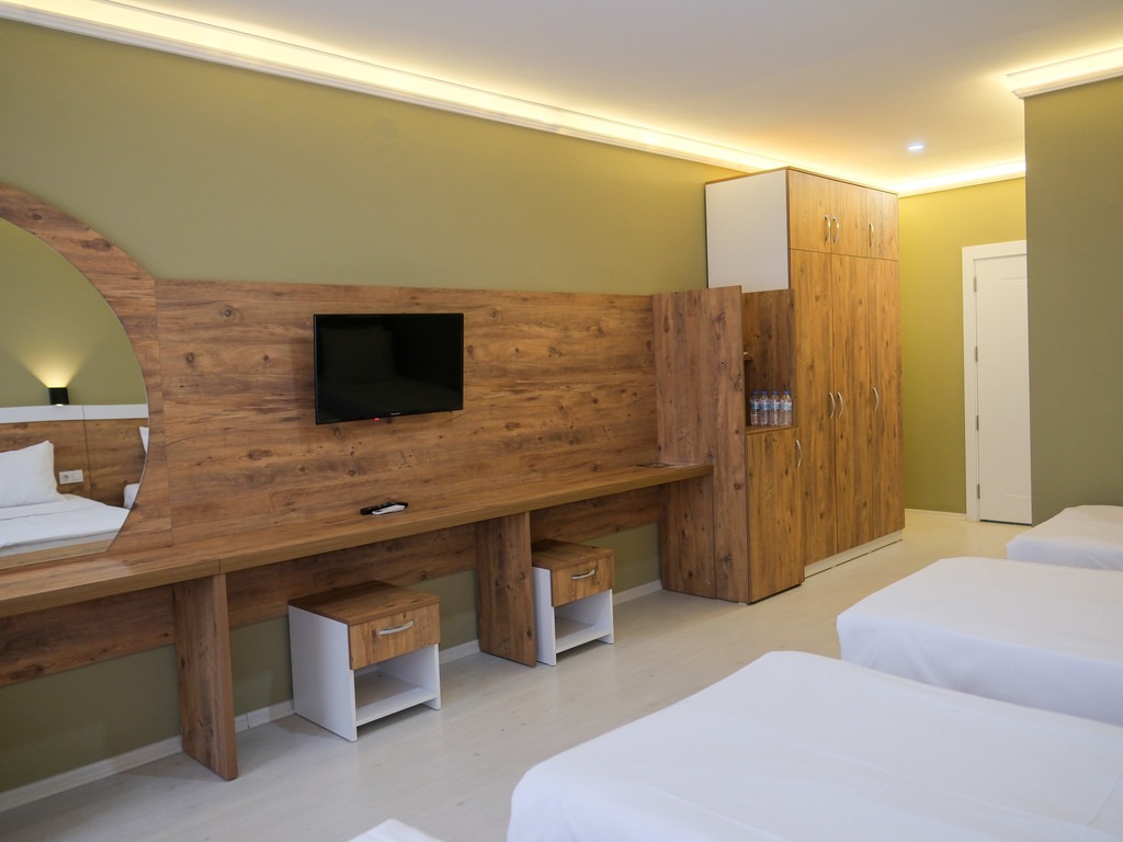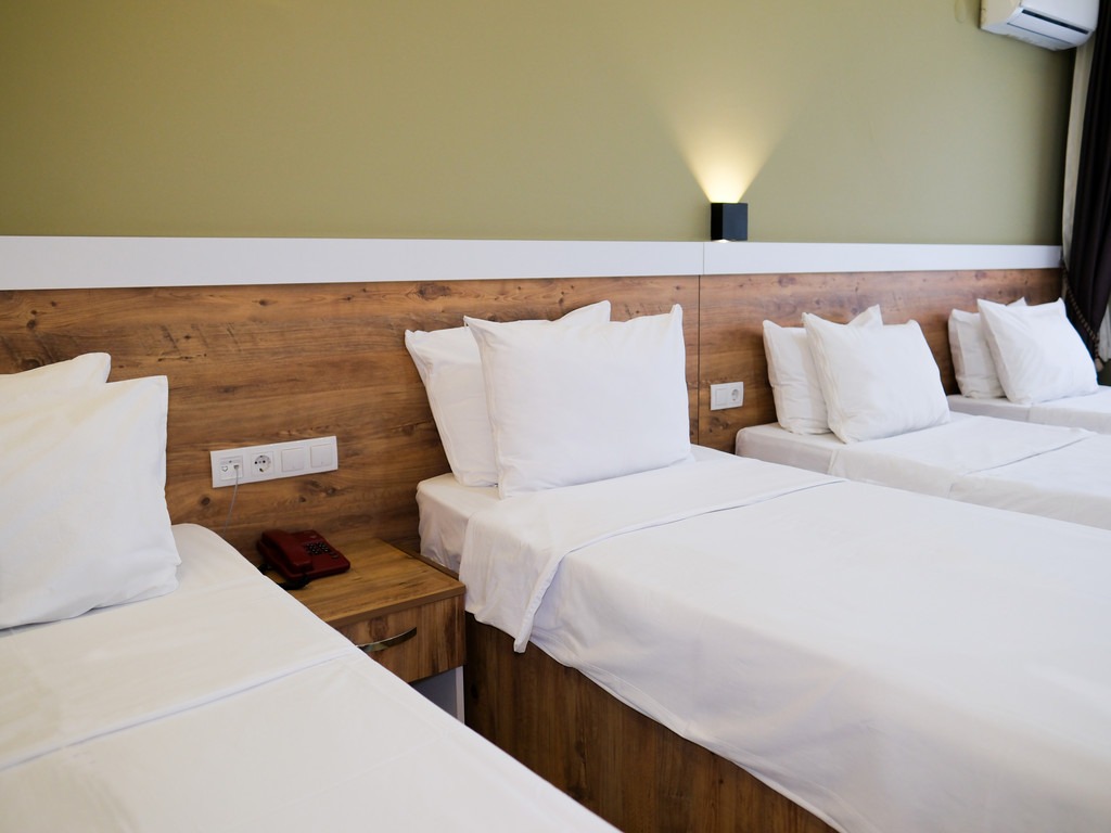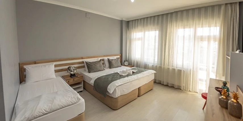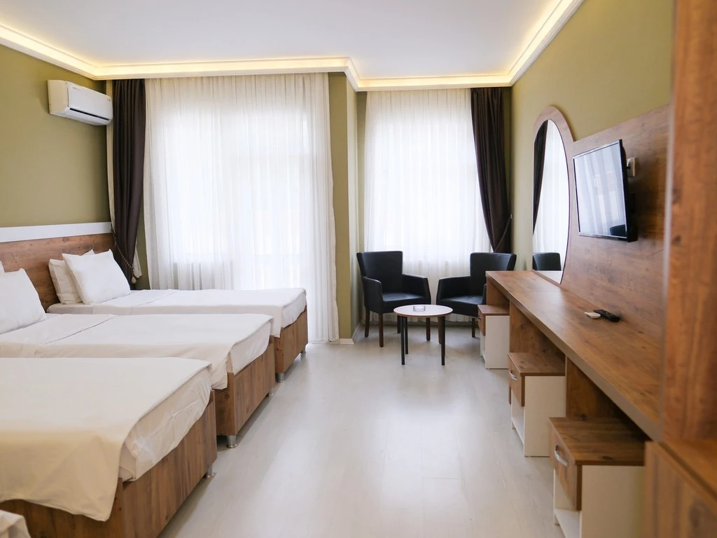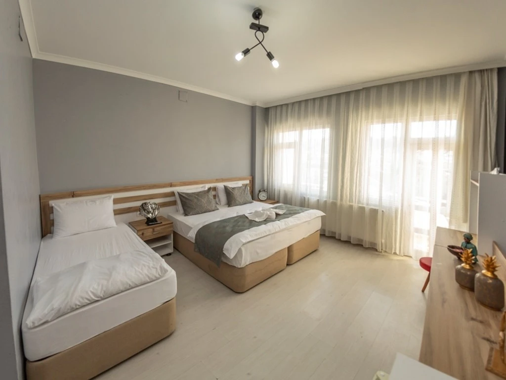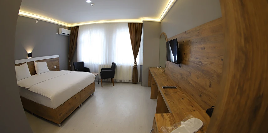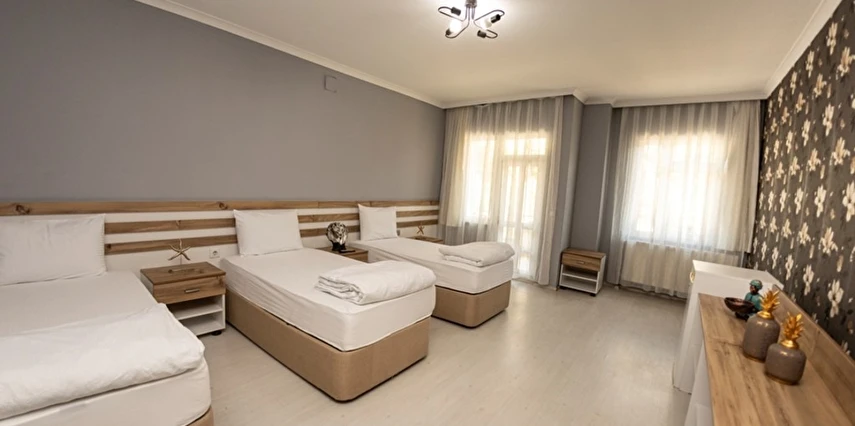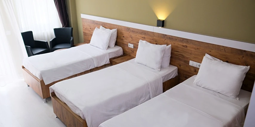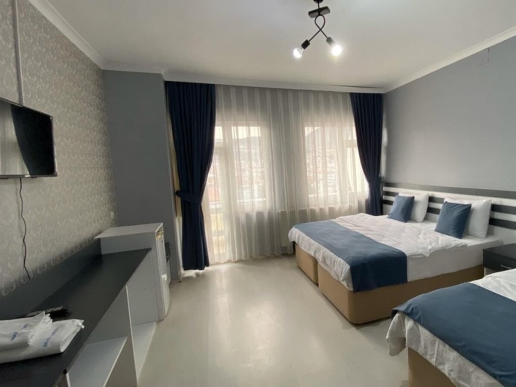 Daha Fazla GösterHotelimiz, tamamı misafir rahatlığı düşünülerek hazırlanmış 3 adet süit 30 adet iki kişi 12 adet üç kişi 10 adet dört kişi toplam 57 oda 144 yatakdır. Odalarımızda . Klima . Minibar . karşılama seti . 90 kişi kapasiteli Kahvaltı salonu ve restoran . 50 kişilik toplantı salonu . elektirikli araç sarj ünitesi . Otoparkımız mevcuttur.