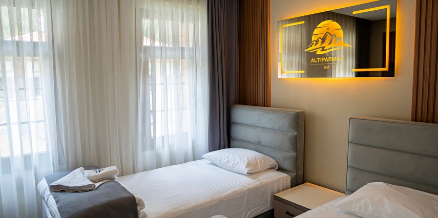 Daha Fazla GösterRize'nin eşsiz doğasıyla ünlü Ayder Yaylası'nda yeni açılan Altıparmak Suit Otel olarak, misafirlerimize lüks ve konforlu bir konaklama deneyimi sunmaktan gurur duyuyoruz. Modern ve özenle tasarlanmış 12 odamız ile doğanın kalbinde huzurlu bir tatil imkanı sağlıyoruz. Misafirlerimize sunduğumuz ücretsiz serpme kahvaltı ile güne lezzetli bir başlangıç yapabilir, Ayder Yaylası'nın muhteşem manzarasının tadını çıkarabilirsiniz. Doğayla iç içe, rahat ve unutulmaz bir konaklama deneyimi için sizleri Altıparmak Suit Otel'e bekliyoruz.
