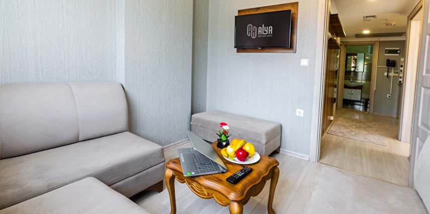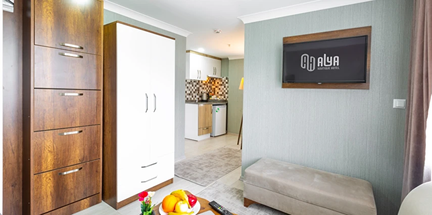 Alya Boutique Hotel'in parke zeminli odalarında uydu led TV, klima ve minibar bulunmaktadır. Her oda deniz, dağ veya şehir manzaralıdır. Ayrıca tüm odalarda ücretsiz Wi-Fi mevcuttur. Her oda için çay ve kahve seti sunulmaktadır. Tesis içerisin de aynı zaman da Exchange ofisi ve Sim kart ofisi de vardır.