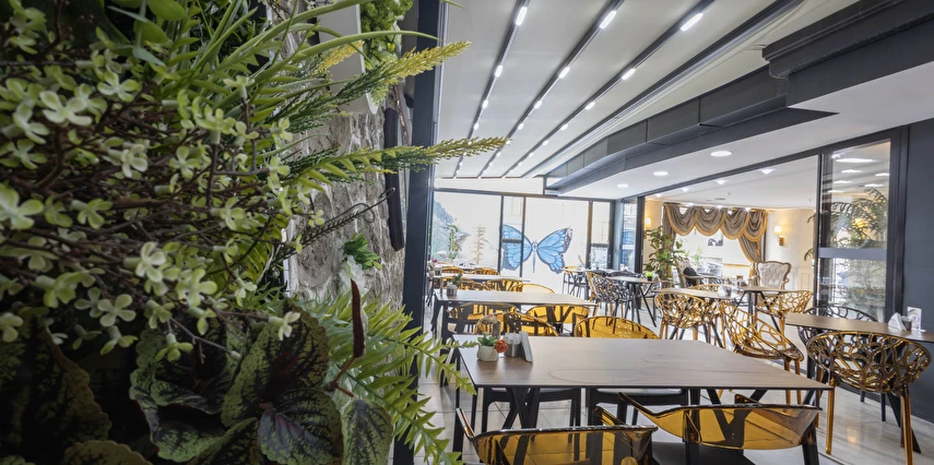 Günlük kahvaltı yöresel lezzetlerle açık büfe olarak servis edilmektedir. Otelde ayrıca geleneksel ve dünya mutfaklarından yemekler sunan bir A la Carte restorant ve oda servisi bulunmaktadır. Tesiste ücretli olarak çamaşırhane ve ütü servisi hizmeti de vardır. Tesisimiz 7/24 güvenlik kamerası ile izlenmekte olup ayrıca 24 saat açık resepsiyon mevcuttur. Hızlı C/in ve C/out işlemlerinizi saat fark etmeksizin tesisimiz de yapabilirsiniz.