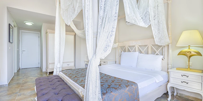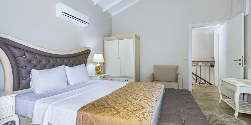 Üst Katta 1 ebeveyn banyolu Yatak Odası ayrıca ( elbise dolabı, komodin, makyaj masası, klima, Saç kurutma makinesi, tv) bulunmaktadır.
