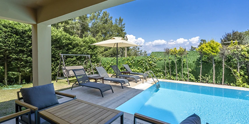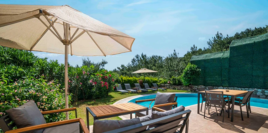 Etraftan ve diğer villalardan kesinlikle görülmeyen bahçe ve havuzlar muhafazakar aileler tarafından rahatlıkla kullanılabilir.