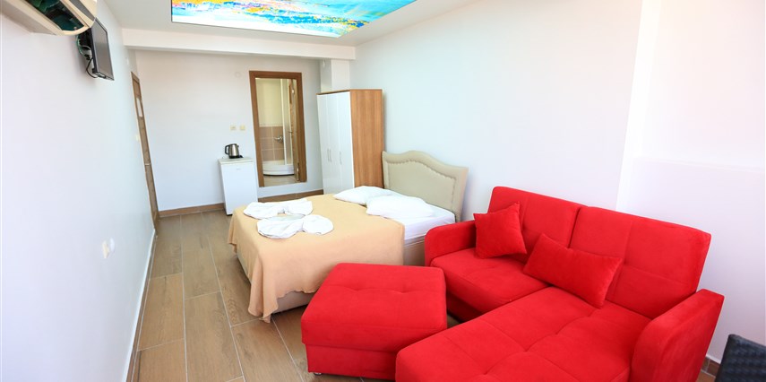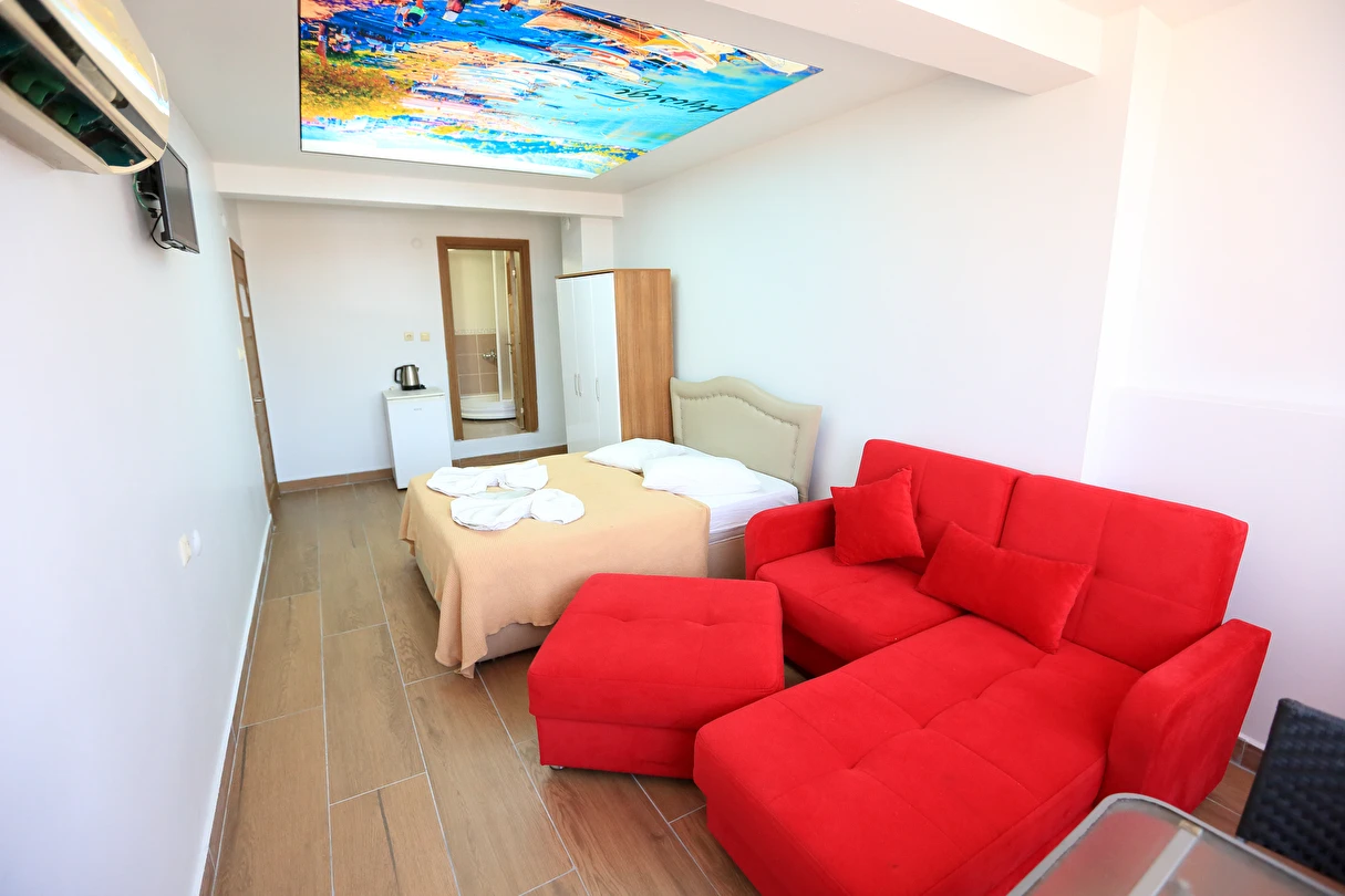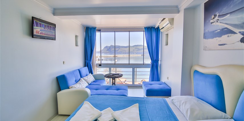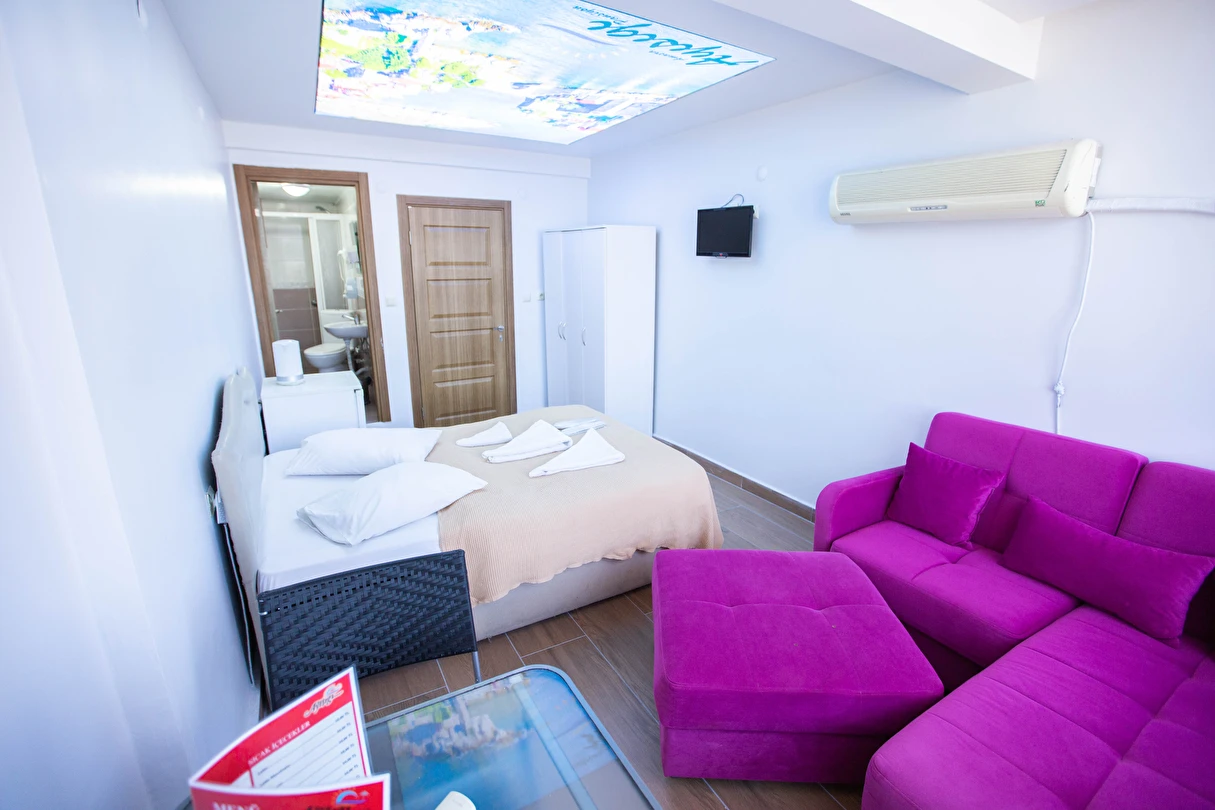 AMASRANIN MERKEZINDE DENİZE VE PLAJA SIFIR KONUMDA IKI APARTMAN DAIRESININ 5 . KATI BİZLERE AİTTİR , ODALARDA WİFİ İNTERNET, KLİMA, LEDTV TELEVIZYON, MİNİ BAR BUZDOLABI, KETIL, BANYOMUZDA HAVLU, SABUN, ŞAMPUAN, 24 SAATTE SICAK SUYUMUZ MEVCUTTUR.