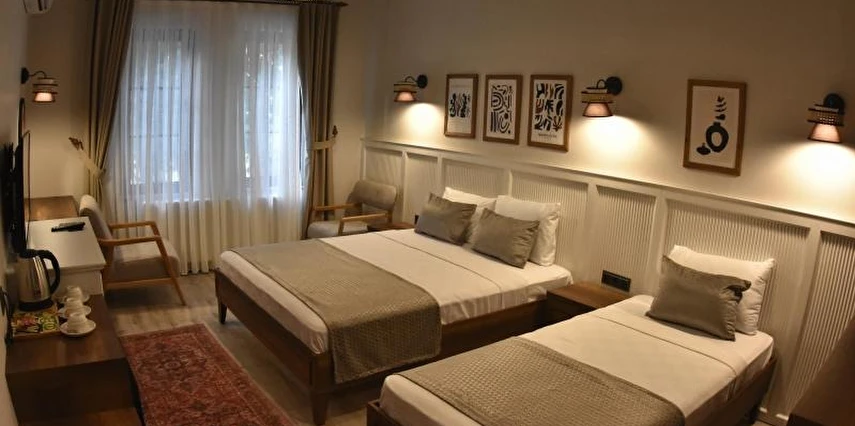 Daha Fazla GösterKadim şehir Amasya’nın 8500 yıllık tarihinin tam kalbinde bulunan konumu ile misafirlerine keyif dolu bir konaklama imkanı sunan Amasya Atabey Konağı, Amasya’nın merkezinde yer alıyor. Tesis Amasya’da gezilecek tarihi dokunun yanı başında yer almaktadır. Yeşilırmak’ın kenarında, II.Sultan Bayezid Camii’ne 50 metre, Tarihi Amasya Evleri’nin karşısında, Kral Kaya Mezarlarına 1 köprü uzaklıkta, tarihin tam ortasında yer almaktadır. Tesiste; 4 standart, 1 Suit, 2 Deluxe bahçe, 3 adet Deluxe oda olmak üzere toplam 10 adet oda bulunuyor. Modern, şık ve ince tasarım detaylarına sahip odalar, şehrin tarihi manzarasıyla bütünleşiyor Tesisin odalarında; bahçe, teras, balkon, şömine, mini bar, telefon, kablosuz internet erişimi, banyo, duş, gardırop, klima, oturma alanı, saç kurutma makinesi, Smart TV, temizlik hizmeti, uyandırma servisi, WC ve çalışma masası gibi olanaklar yer alıyor. Tesis, hem iş hem turizm odaklı konaklamalara hitap ediyor. Misafirler güne, tesisin restoranında size özel masaya servis edilen serpme kahvaltı hizmeti ile güzel bir başlangıç yapabilir ; Ayrıca kahve tutkunları için; Tesisin Amasya Yeşilırmak ve Kral Kaya Mezarlarının eşsiz manzarası ile sizleri karşılayan Midtown Coffee Company markası altında 3.nesil Kahve ve tatlı sunumları ile kahvenizi yudumlayabilirsiniz. Tesis, Amasya Otogarı’na 8 km ve Amasya Merzifon Havalimanı’na 45 km mesafede yer alıyor. Tesisin önünde ücretsiz otopark alanı bulunuyor.
