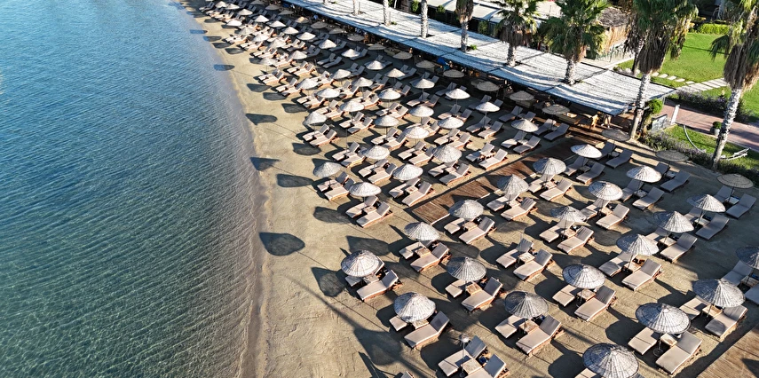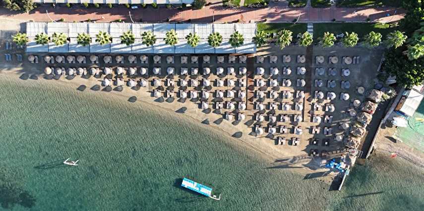 Sahil ile arasından yürüme yolu geçen tesisin 110 metre uzunluğunda özel kum plajı bulunuyor. Şezlong, minder, şemsiye ve havlu havuzda ve plajda ücretsiz. Sahilde yapay küçük bir iskele ve deniz salıncakları mevcut.
