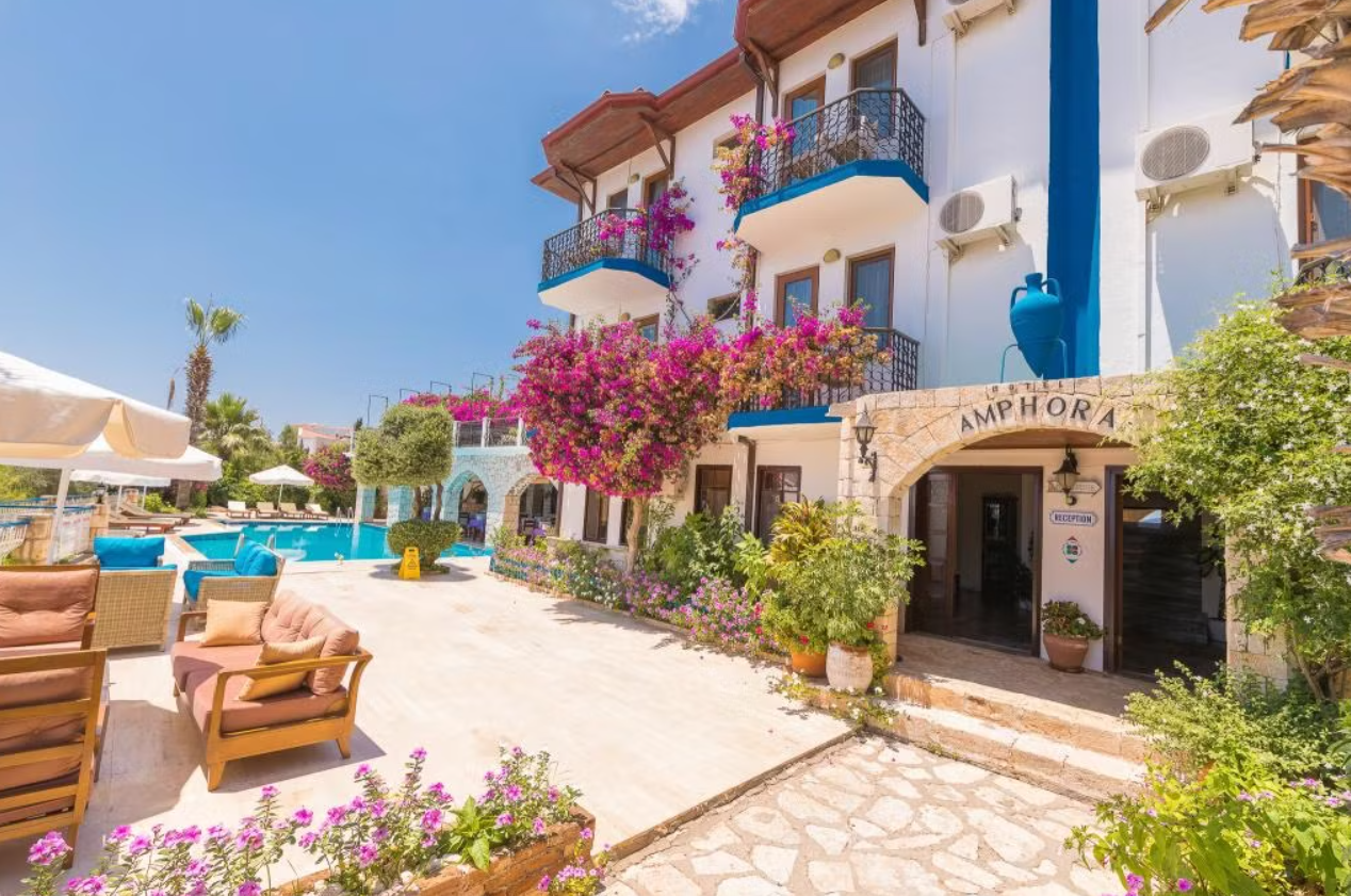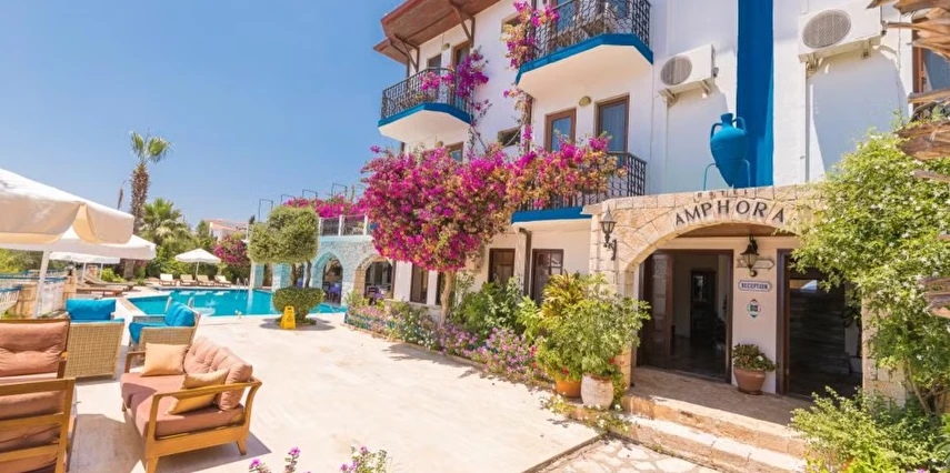 Amphora Hotel Kaş, Antalya’nın gözde tatil merkezi Kaş’ta, Çukurbağ mevkiinde konumlanmış, denize sıfır bir tesistir. Kaş merkezine sadece 6 km uzaklıkta bulunan otel, özel plajı ve iskelesi ile misafirlerine deniz keyfini her an yaşama imkânı sunuyor. Tesisin açık havuzu ve havuz manzaralı terası, güne kahvaltı ile keyifli bir başlangıç yapmanız için ideal bir ortam sağlıyor. Restoran, öğle ve akşam yemeklerinde a la carte hizmet vererek damak zevkine hitap ediyor.