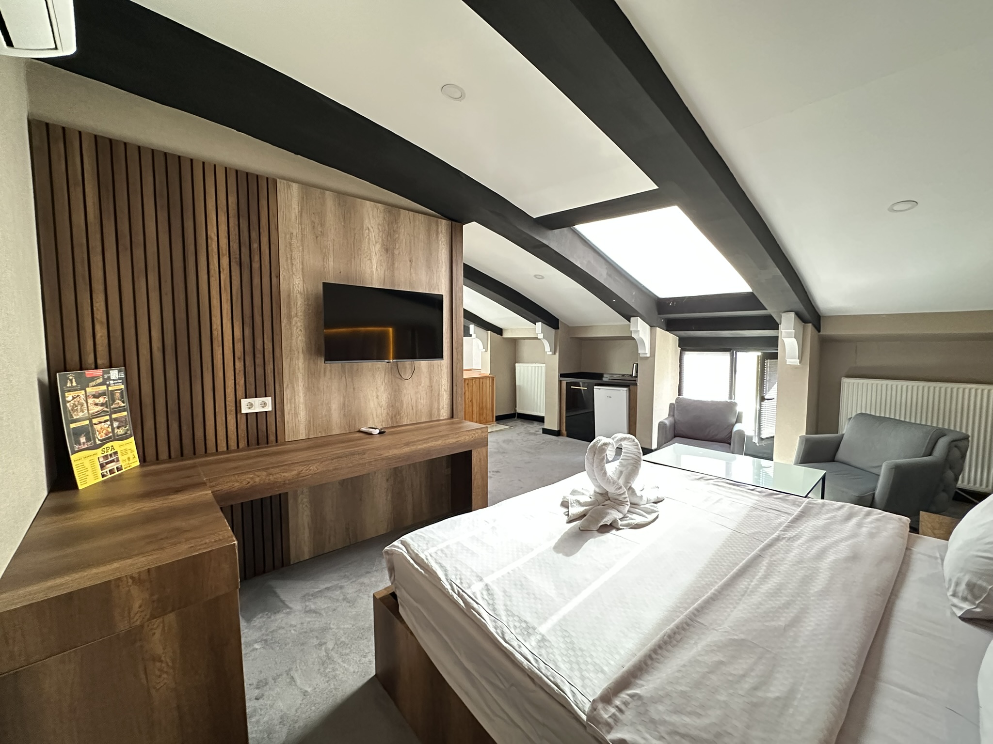 Zarif detaylarla tasarlanmış odalar, konforlu ve dinlendirici bir konaklama için gerekli tüm donanıma sahiptir.