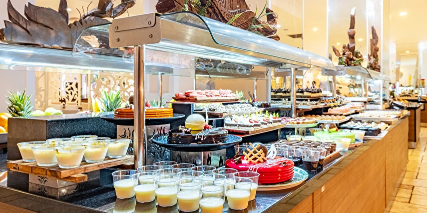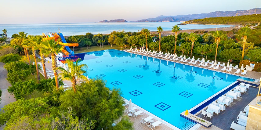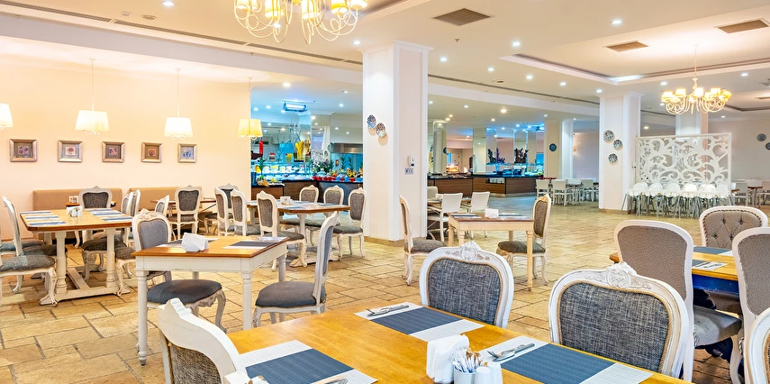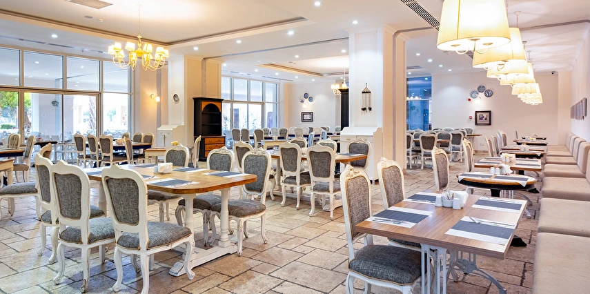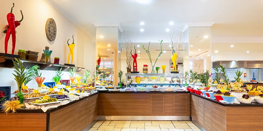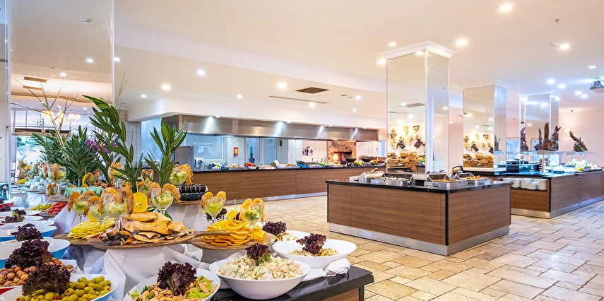 Sabah kahvaltısı, öğle yemeği ve akşam yemeği açık büfe olup, tesisin belirlemiş olduğu markalar dahilinde yerli alkollü ve alkolsüz içecekler 10:00 ile 00:00 saatleri arasında ücretsizdir. Konsept harici tüm yiyecek ve içecekler ekstra ücretlidir. İmport içecekler, özel kokteyller ve taze sıkılmış meyve suları ücretlidir. Türk Kahvesi ücretsizdir. Şişe ile servis yapılmamaktadır. Tüm yiyecek ve içecekler self servis olarak sunulmaktadır. Sunulan hizmetler ve bazı ünitelerin kullanımı hava koşullarına göre değişiklik gösterebilir.