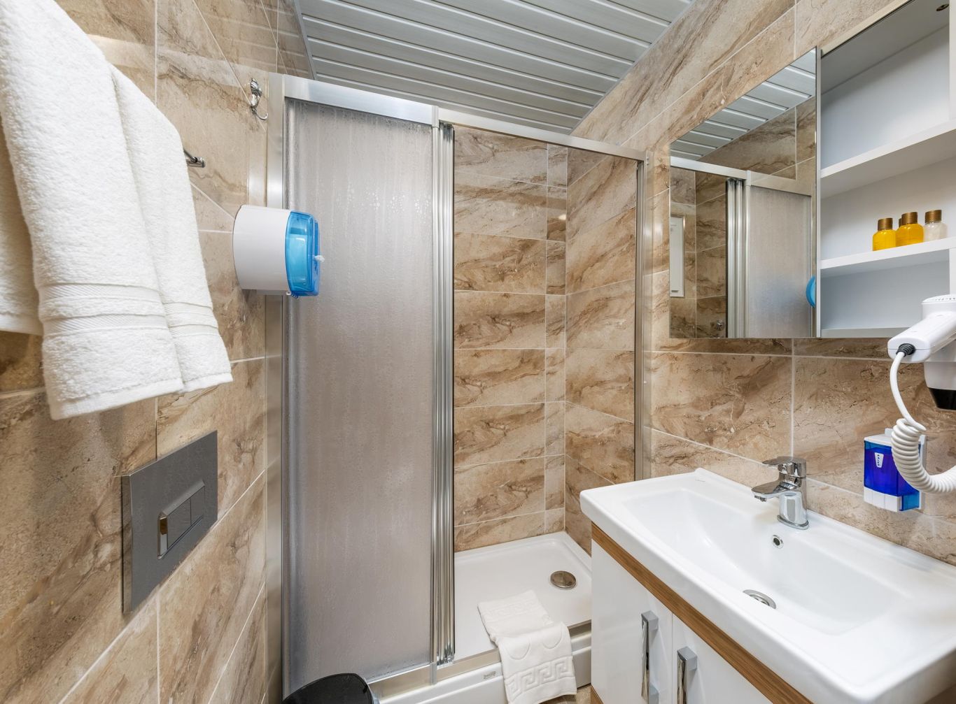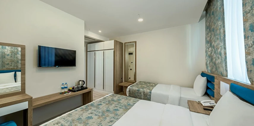 Tüm İhtiyaçlar Bir Arada: Klima, minibar, emanet kasası ve modern banyo bukletleri ile kendinizi özel hissedin.