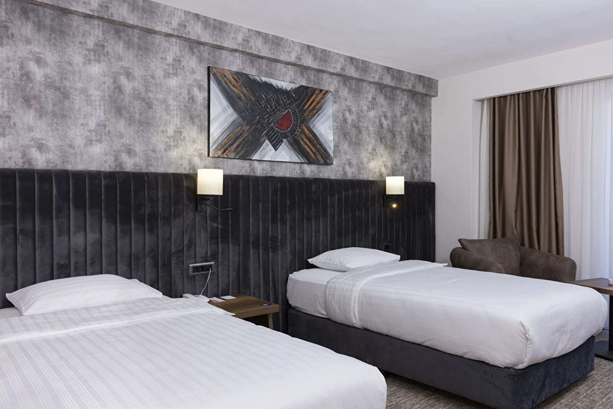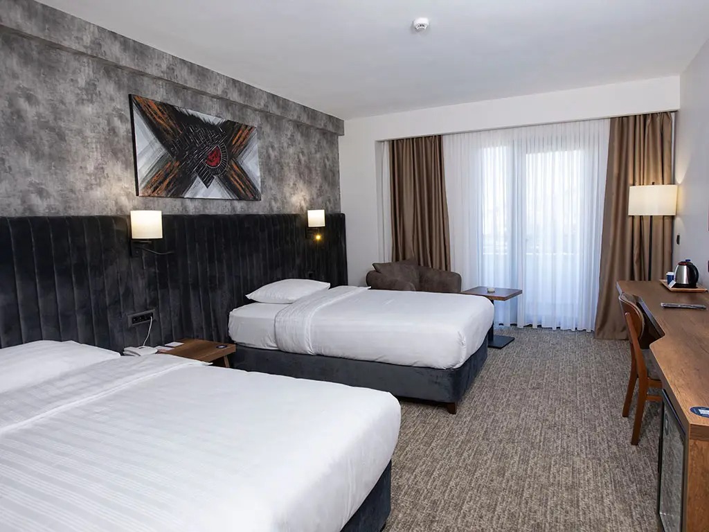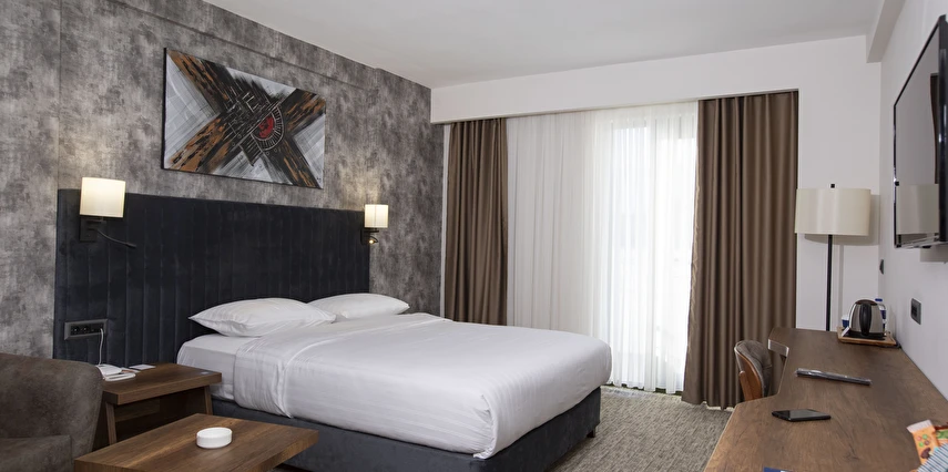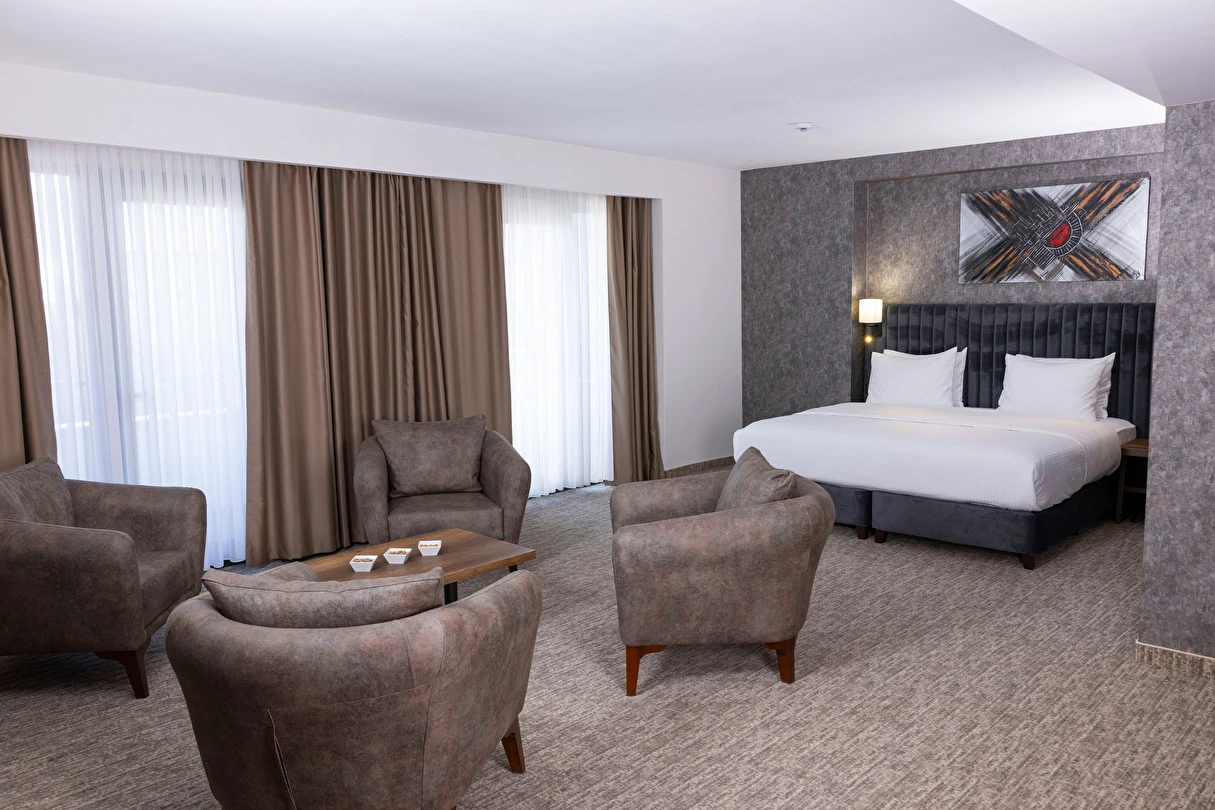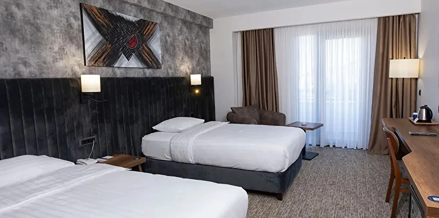 Özenle tasarlanmış odalarında misafirlerin tüm ihtiyaçları düşünülmüş; modern donanımlar, rahat yataklar ve fonksiyonel çalışma alanlarıyla konfor ön planda tutulmuştur. Otelin restoranında Türk ve dünya mutfağından seçkin lezzetler sunulurken, güne zengin kahvaltı menüsüyle keyifli bir başlangıç yapabilirsiniz.