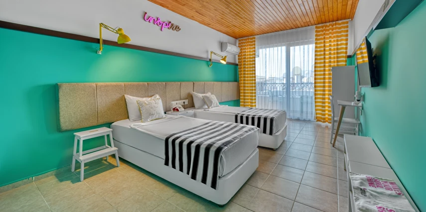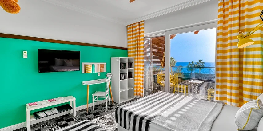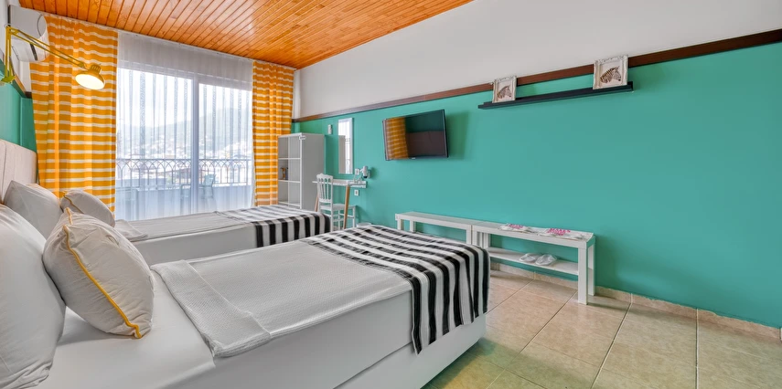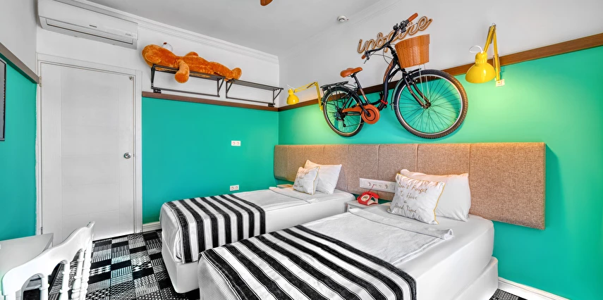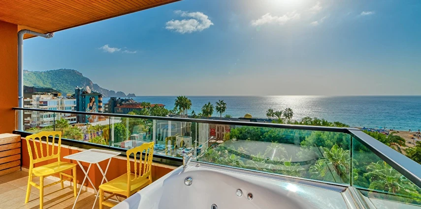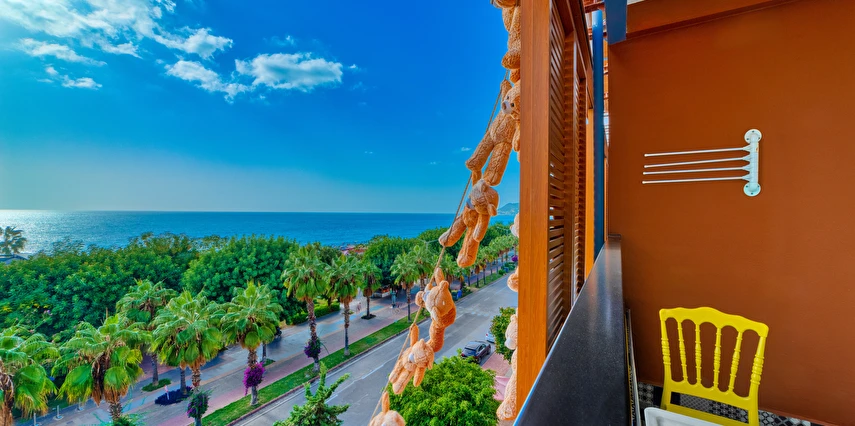Alanya merkezinde farklı bir deneyim ! Muhteşem deniz, Alanya Kalesi ,Cleopatra Plajının tam karşısında yer alan , dünya mutfaklarının eşsiz seçkinlikleri ile misafirlerimize hizmet vermekteyiz .Mutfaklarımızda kullanılan ürünlerimizin tamamı organiktir. Toplam 70 odalı butik bir otel.. Balkonlar misafirlere enfes bir dinlenme imkanı sunar. Odalarımızda sizin ve sevdiklerinizin rahatı ve konforu için her şey düşünülmüştür. Modern tasarımlarla hazırlanmış olup, hepsinde duş, wc, , fön, direkt telefon, klima, tv , internet, ve balkon bulunmaktadır. Yine sizler için özel olarak doğal sabunlarımız bulunmaktadır. Şık atmosferiyle rahat bir ortam sunan otel, Akdeniz kıyısındaki bir ana cadde üzerinde, Cleopatra Plajı'nın karşısında yer alır. Alanya Arkeoloji Müzesi'ne 13 dakikalık , Alanya otogarına ise 5 dakikalık yürüme mesafesindedir.Oda kahvaltı olarak çalışmaktayız kahvaltılarımız restaurantımızda açık büfe olarak servis edilmektedir.