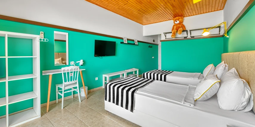 Oteli̇mi̇zi̇n havuzu yoktur, kendi̇mi̇ze ai̇t plajımız bulunmaktadır. Mi̇safi̇rleri̇mi̇z, şezlong ve şemsi̇yeden ücretsi̇z yararlanmaktadır. Kullanım saatleri 09.00 19.00 arasındadır. Sahi̇li̇mi̇z kumdur