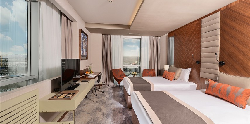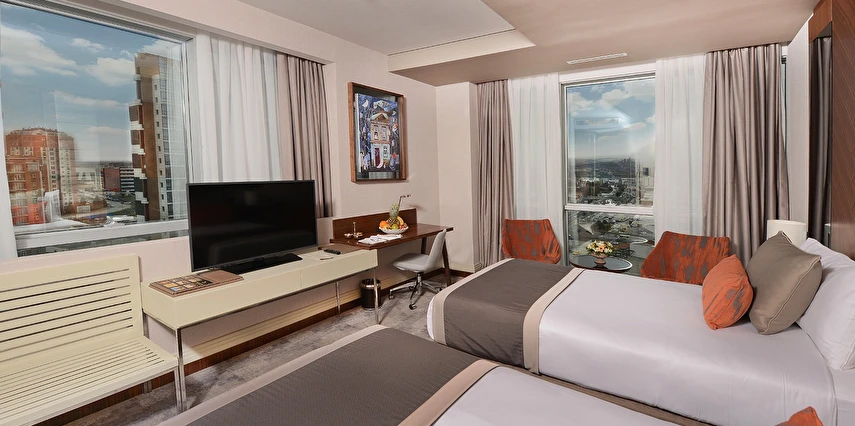 Ankara Alegria Business Hotel’in modern çizgilerle tasarlanan ferah odaları, misafirlerin konforlu bir konaklama deneyimi yaşaması için özenle hazırlanmıştır.