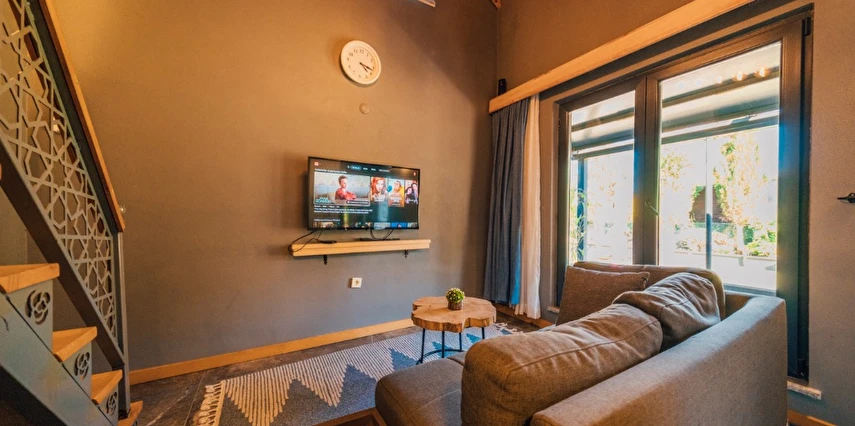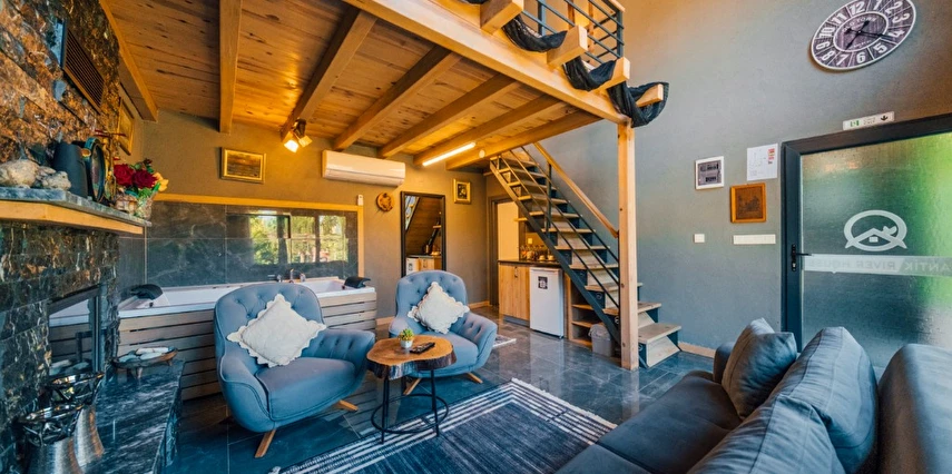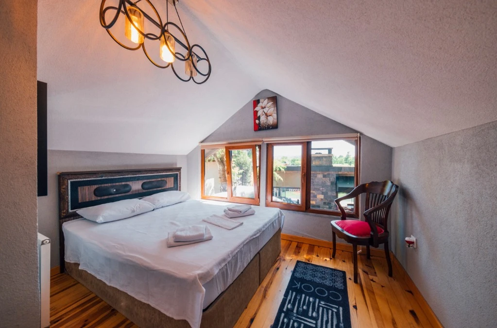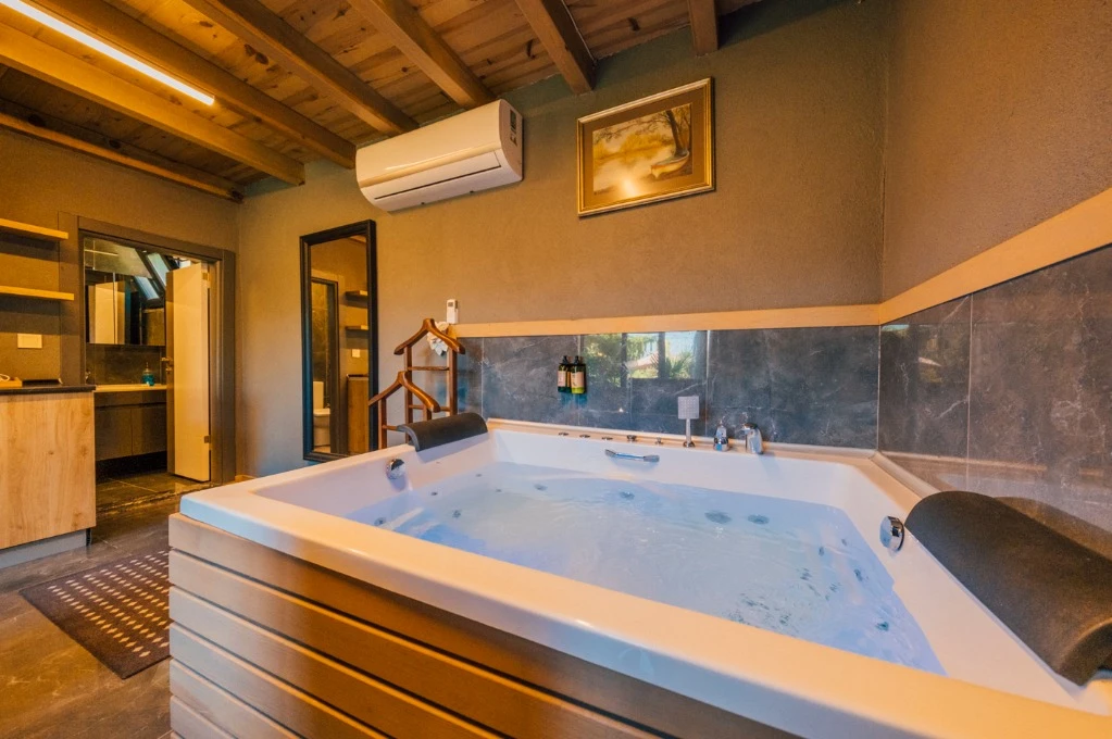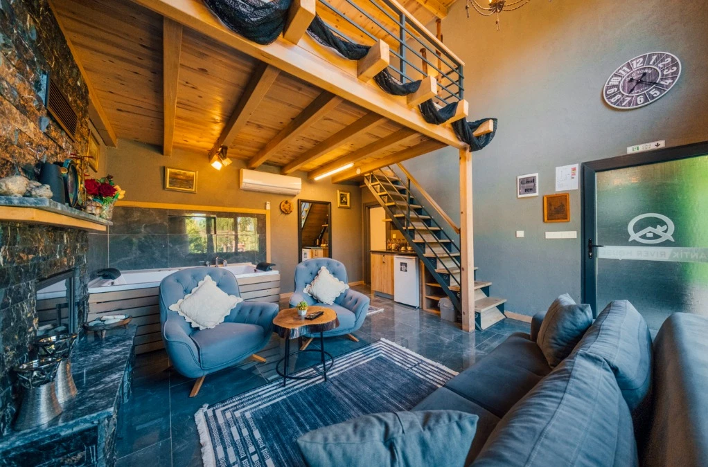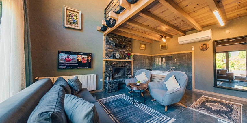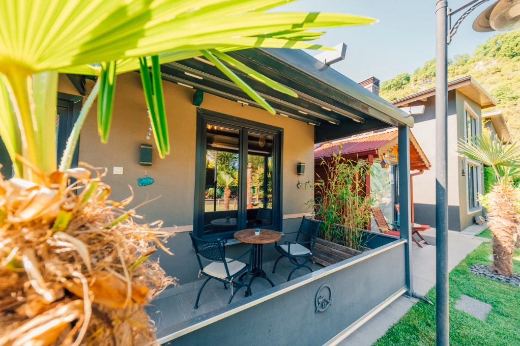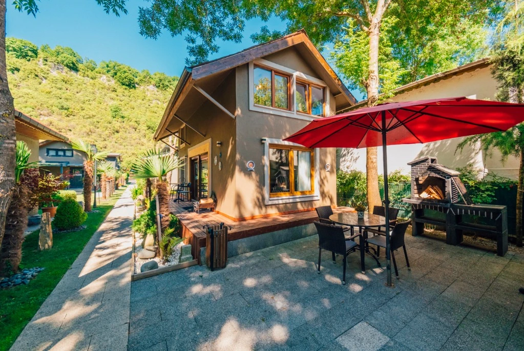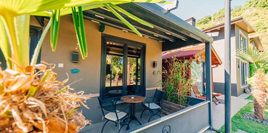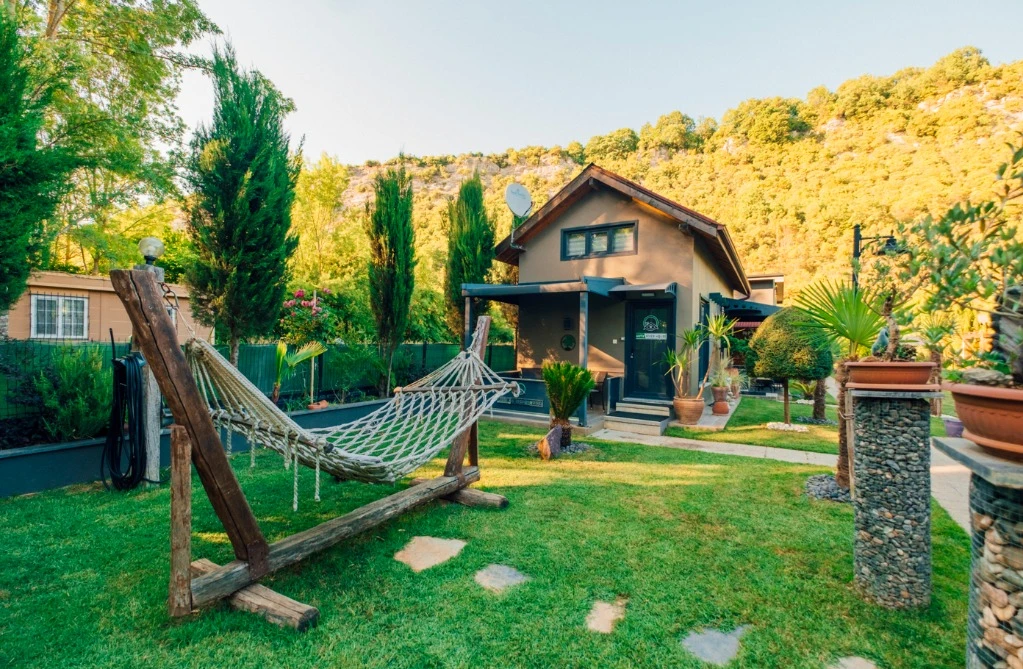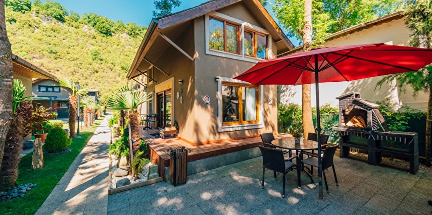 -Doğa Yürüyüşleri: Doğanın kalbinde huzurlu yürüyüşler yapabilirsiniz. -Deniz Bisikleti: Nehirde deniz bisikleti ile keyifli vakit geçirin. -Dağ Manzarası: Eşsiz dağ manzarası eşliğinde dinlenin. -Özel Otopark: Misafirlerimize özel otopark alanları bulunmaktadır. -Nehir Kenarı: Nehir kenarında serinleyin ve huzurun tadını çıkarın. -Tekne Turları: Nehirde düzenlenen tekne turları ile çevreyi keşfedin. -Geniş Bahçe: Ferah ve geniş bahçemizde doğanın tadını çıkarın. -Şömine: Villalarımızın bazılarında bulunan şömine başında sıcak ve samimi anlar yaşayın. -Jakuzi: Villalarımızın bazılarında bulunan jakuzilerde rahatlayın. Tesisimizde, doğa ile iç içe bir tatil yaparken, her anınızı özel kılacak olanaklarımızla sizleri ağırlamaktan mutluluk duyarız. Unutulmaz bir tatil deneyimi için sizi bekliyoruz!