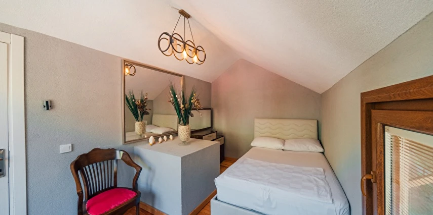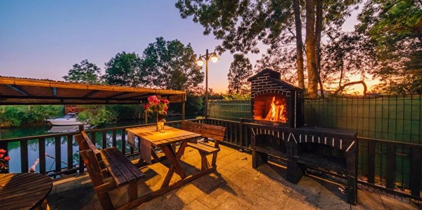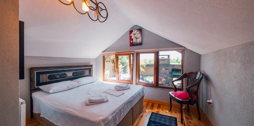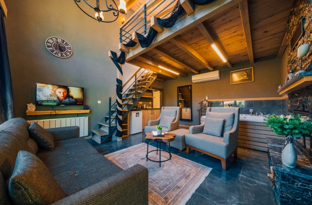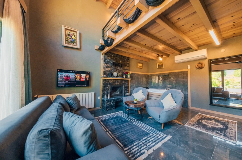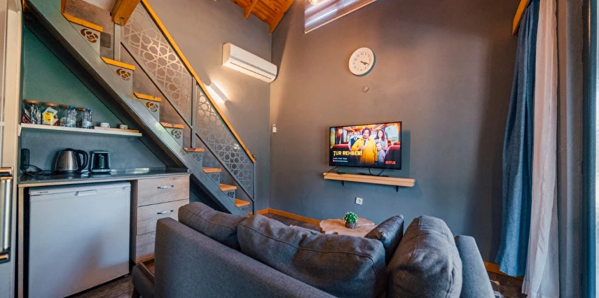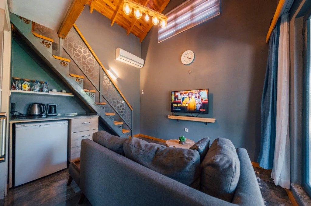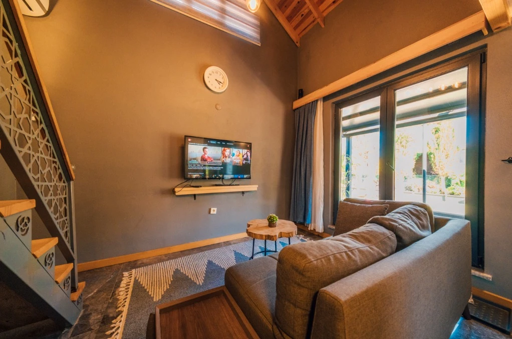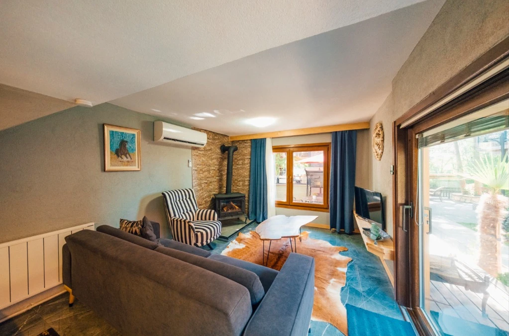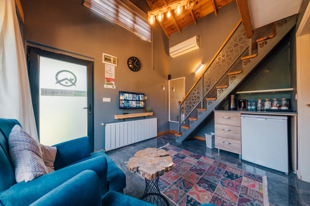-Doğa Yürüyüşleri: Doğanın kalbinde huzurlu yürüyüşler yapabilirsiniz. -Deniz Bisikleti: Nehirde deniz bisikleti ile keyifli vakit geçirin. -Dağ Manzarası: Eşsiz dağ manzarası eşliğinde dinlenin. -Özel Otopark: Misafirlerimize özel otopark alanları bulunmaktadır. -Nehir Kenarı: Nehir kenarında serinleyin ve huzurun tadını çıkarın. -Tekne Turları: Nehirde düzenlenen tekne turları ile çevreyi keşfedin. -Geniş Bahçe: Ferah ve geniş bahçemizde doğanın tadını çıkarın. -Şömine: Villalarımızın bazılarında bulunan şömine başında sıcak ve samimi anlar yaşayın. -Jakuzi: Villalarımızın bazılarında bulunan jakuzilerde rahatlayın. Tesisimizde, doğa ile iç içe bir tatil yaparken, her anınızı özel kılacak olanaklarımızla sizleri ağırlamaktan mutluluk duyarız. Unutulmaz bir tatil deneyimi için sizi bekliyoruz!