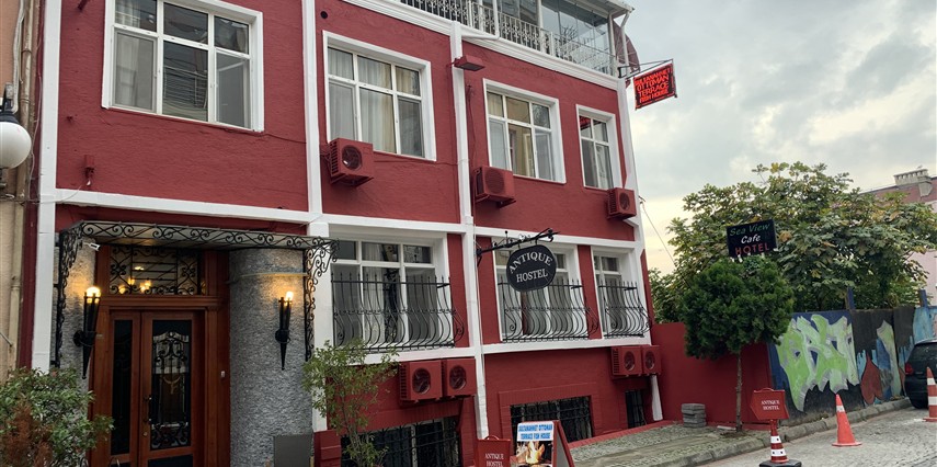 Tarihi Sultanahmet semtinin kalbinde yer alan Antique Hostel; Sultanahmet Camii, Ayasofya ve Topkapı Sarayı'na sadece birkaç adim uzaklıktadır. Ücretsiz Wi-Fi erişimiyle donatılmış klimalı odalar sunan hostelde deniz manzaralı bir çatı restoranı bulunmaktadır. Hostelde hem özel hem de ortak olanaklar mevcuttur. Odalar uydu TV ve güvenli kilitli dolaplarla donatılmıştır. Banyolarda 24 saat sıcak su ve saç kurutma makinesi vardır. Antique sabahları yumurta, çeşitli peynirler ve Türk çay içeren bir açık büfe kahvaltı sunmaktadır. Hostel Antique'te ayrıca serinletici içeceklerin servis edildiği bir bar bulunmaktadır. Teras kafe, uluslararası mutfaklardan yemeklere yer verilen bir alakart menüyle hizmet vermektedir. Ayrıca bilgisayarı kullanabilir, tavla veya satranç oynayabilir, kütüphaneden kitap alıp okuyabilir ya da terasta TV izleyebilirsiniz. Antique Hostel, Hipodrom'a 6 dakikalık yürüme mesafesindedir. Atatürk Uluslararası Havalimanı ise 20 km uzaklıktadır. Hostel, talep üzerine havaalanı servisi sağlamaktadır. Tesis bünyesinde ortak otopark mevcuttur.