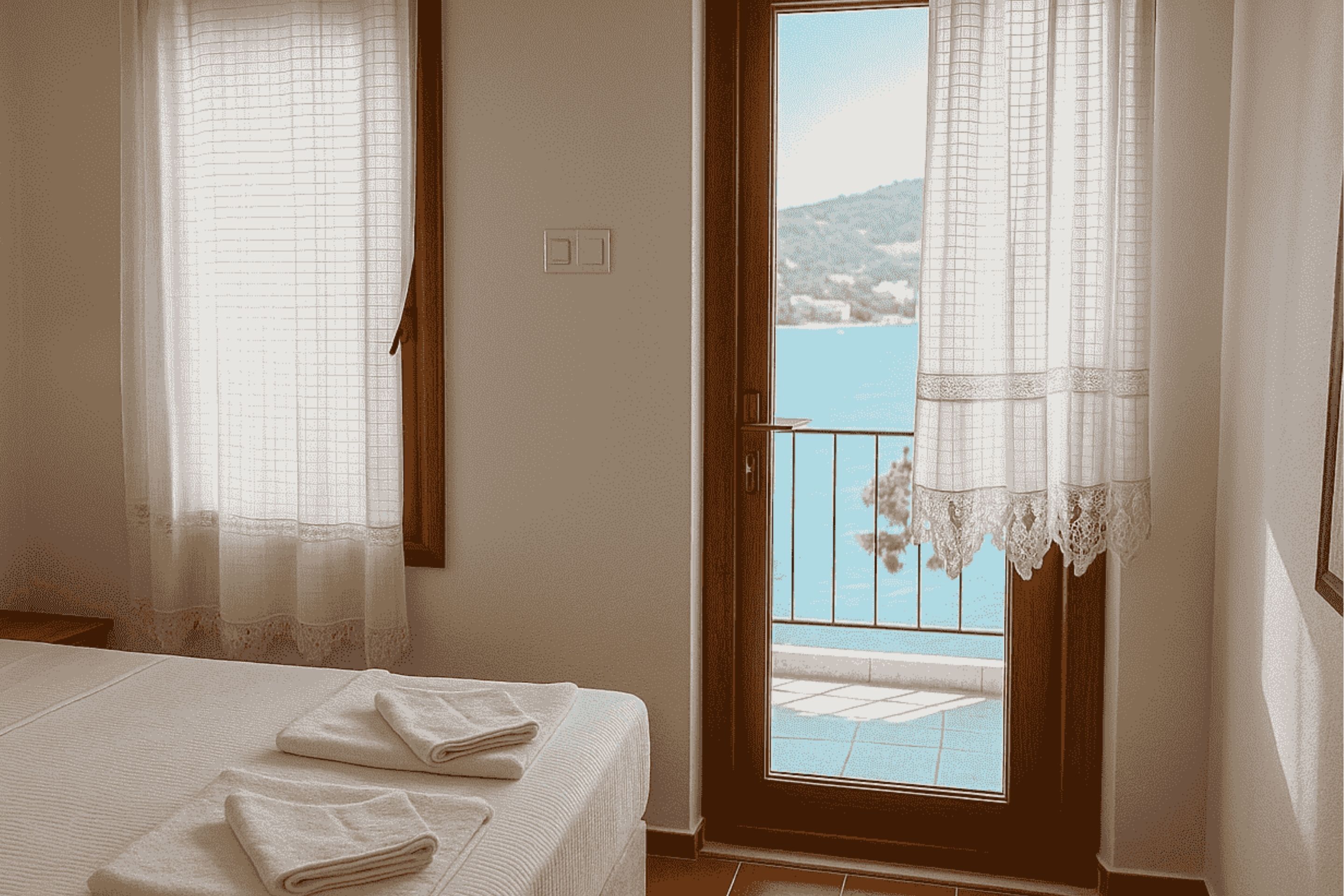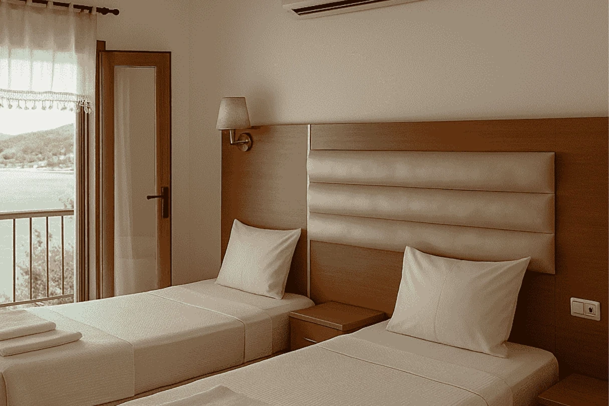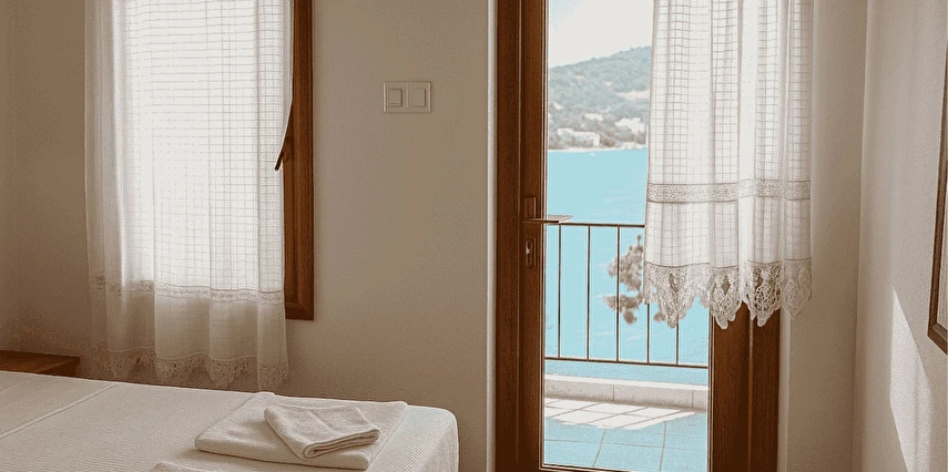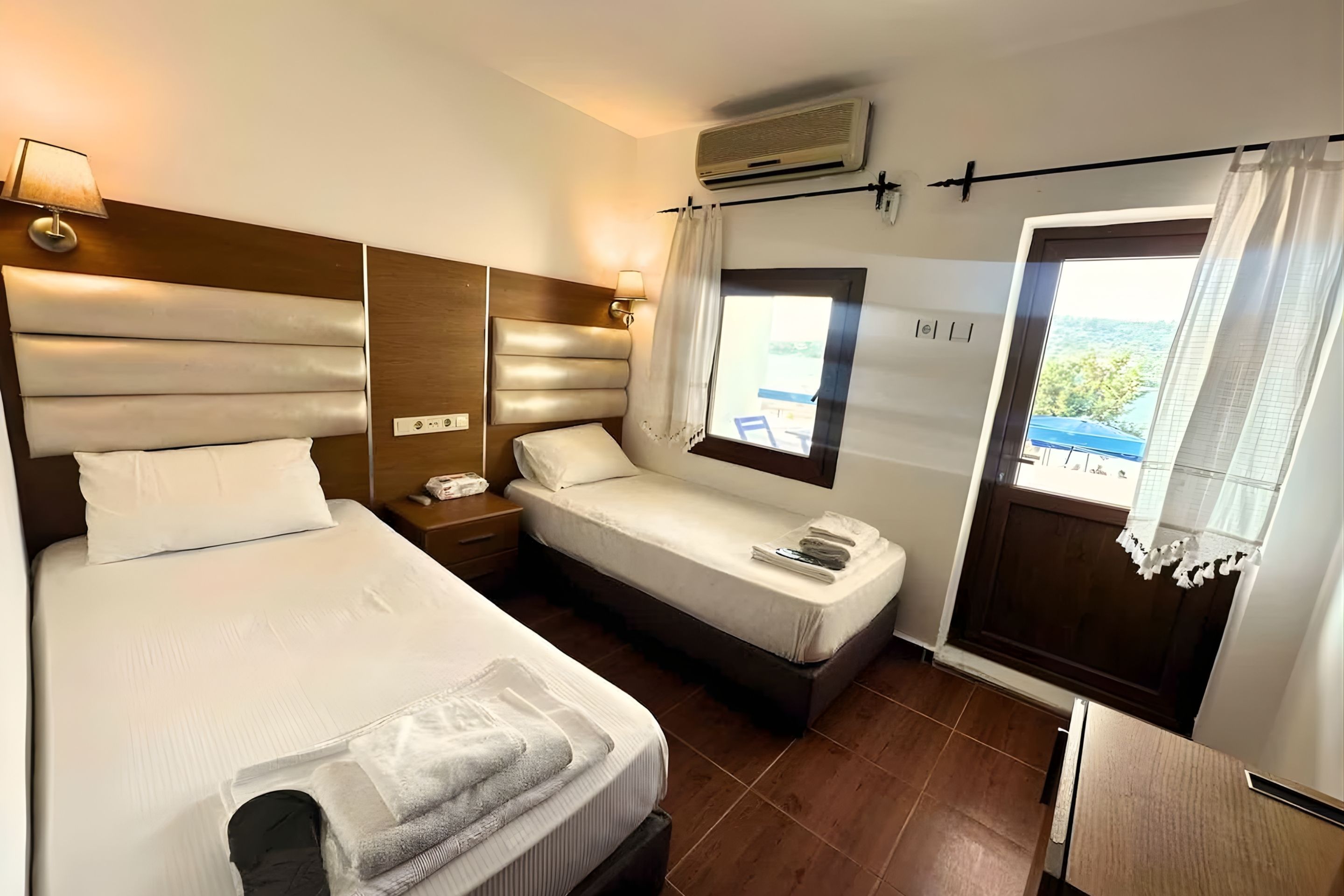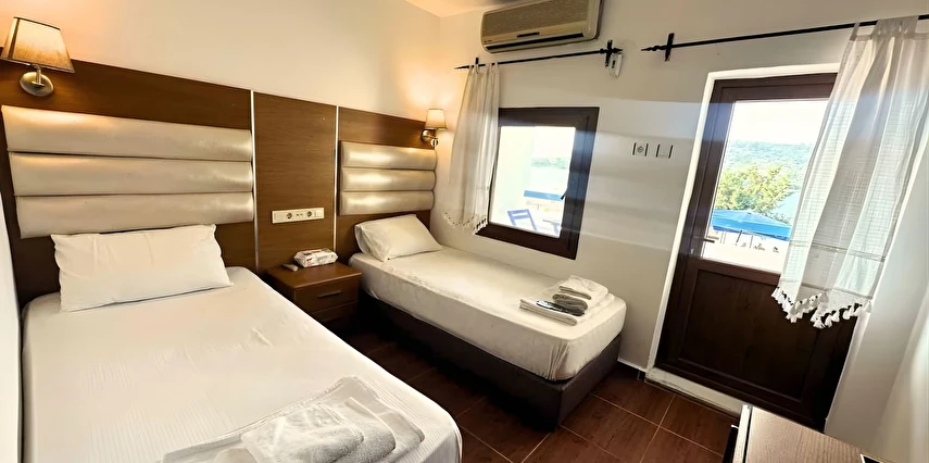 Otel, manzaranın ve dinginliğin ön planda olduğu bir konaklama deneyimi sunar. Balkonlu kara ve deniz manzaralı odalar, Ege’nin doğal ritmini içeri taşırken; teraslı suit odalar, denizin sonsuzluğuna karşı özel anlar yaşamak isteyen misafirler için tasarlanmıştır. Balkonlu Kara Manzaralı Aile Odası, Balkonlu Deniz Manzaralı Standart Oda, Balkonlu Kara Manzaralı Standart Oda, Balkonlu Deniz Manzaralı Üç Kişilik Oda ve Teraslı Suit Oda seçenekleriyle hem çiftlere hem ailelere hem de arkadaş gruplarına uygun konaklama alternatifleri sunulur.