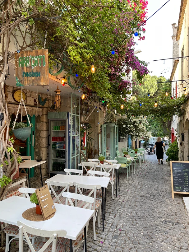 Provence tarzda dekore edilmiş olan Araçatı evimiz tarihin izlerini yansıtıp bugünün modernizmi ve konforuyla bir araya gelince misafirlerini kendilerini evlerinde hissetmelerini sağlıyor. Lobi, TV alanı, kitaplık ve muhteşem manzaralı terasımız bulunmaktadır. Ücretli ve ücretsiz otopark alanları tesisten 50 m kadar uzaklıktadır.