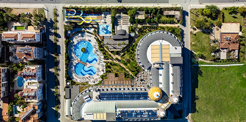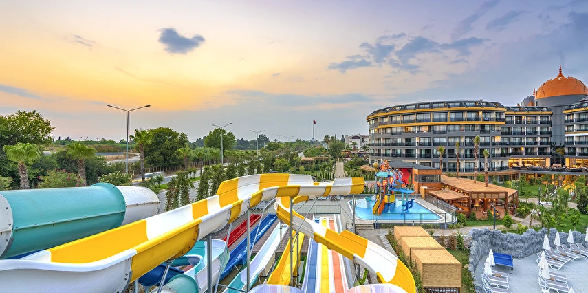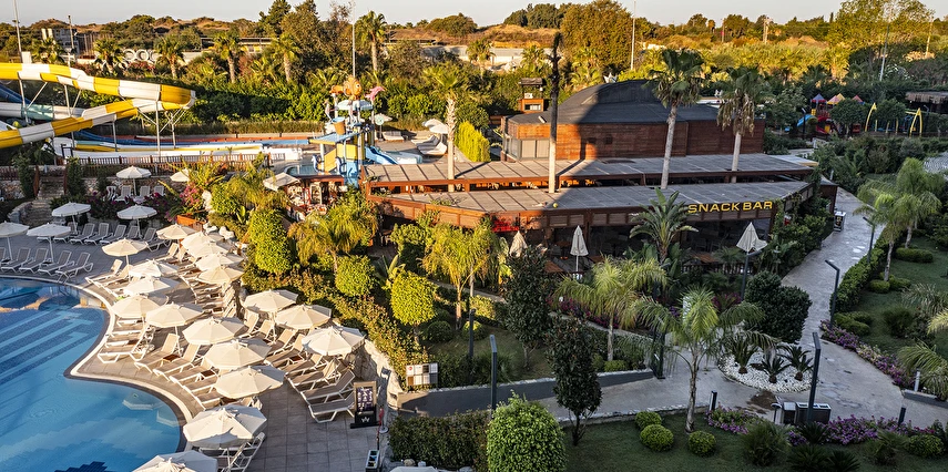 6 bantlı yetişkinler için su kaydırağı - 2 bantlı çocuklar için su kaydırağı mevcuttur. Şezlong, şemsiye ve minder hizmeti, hava durumuna bağlı olarak veriliyor. Su kaydıraklarından inilen yer 10 cm yüksekliğinde su birikintisidir.