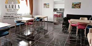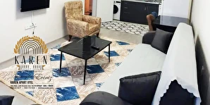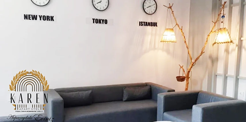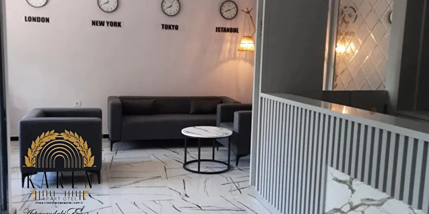 Apart dairelerde misafirlerin ihtiyaçları düşünülerek tasarlanmış mutfak, yemek masası ve terlik gibi olanaklar yer almakta olup, ev rahatlığında bir konaklama deneyimi sağlanmaktadır.