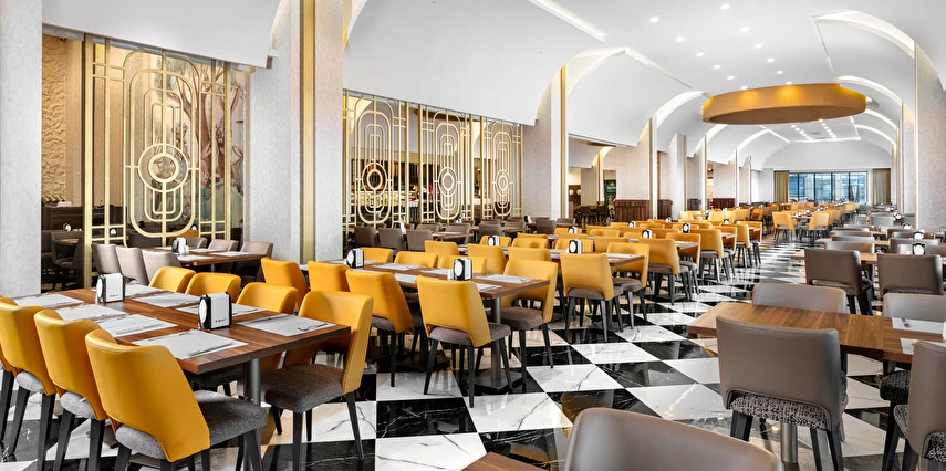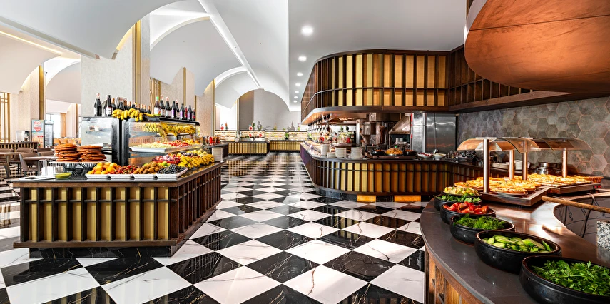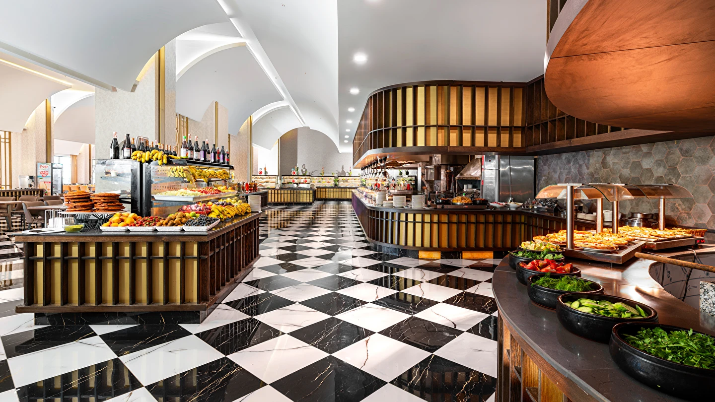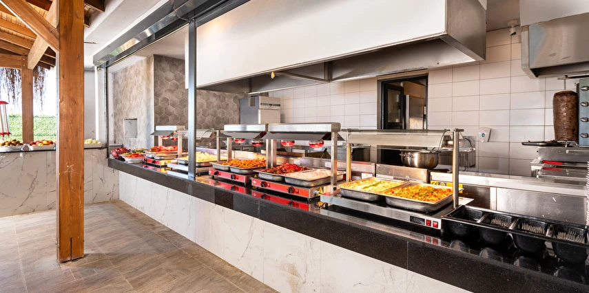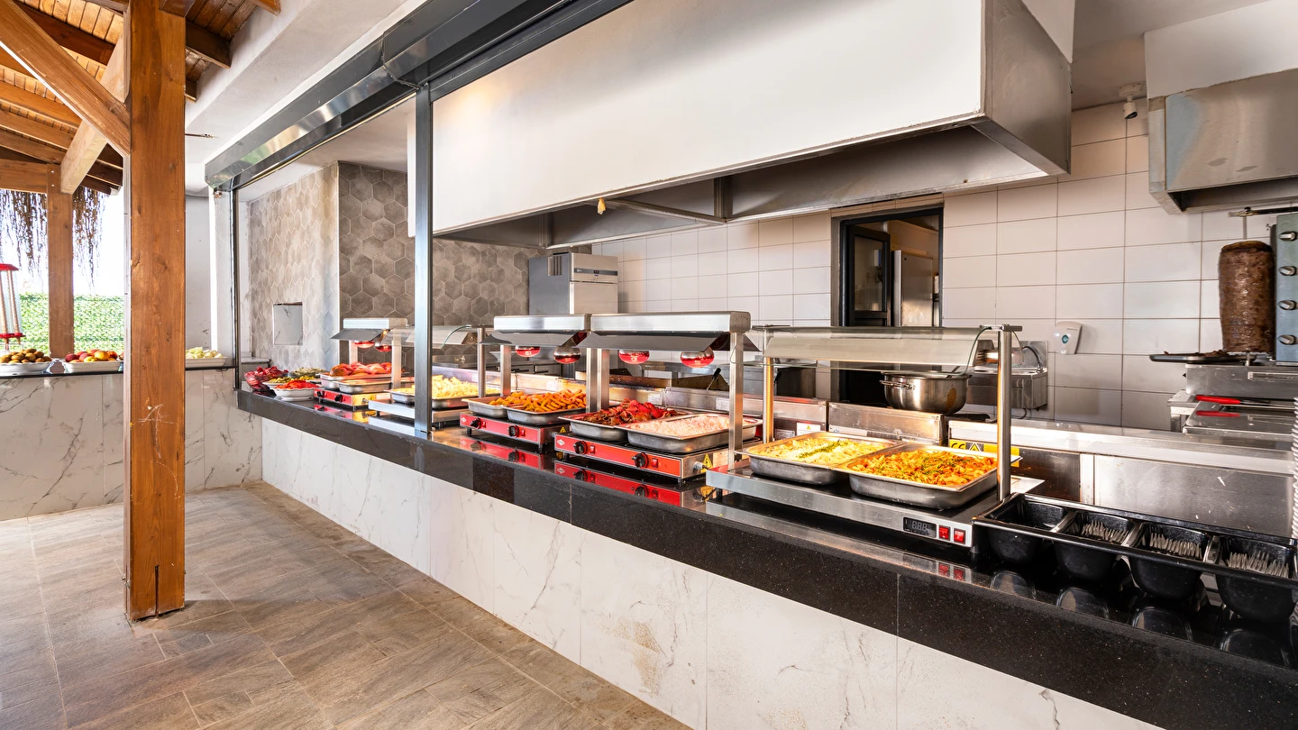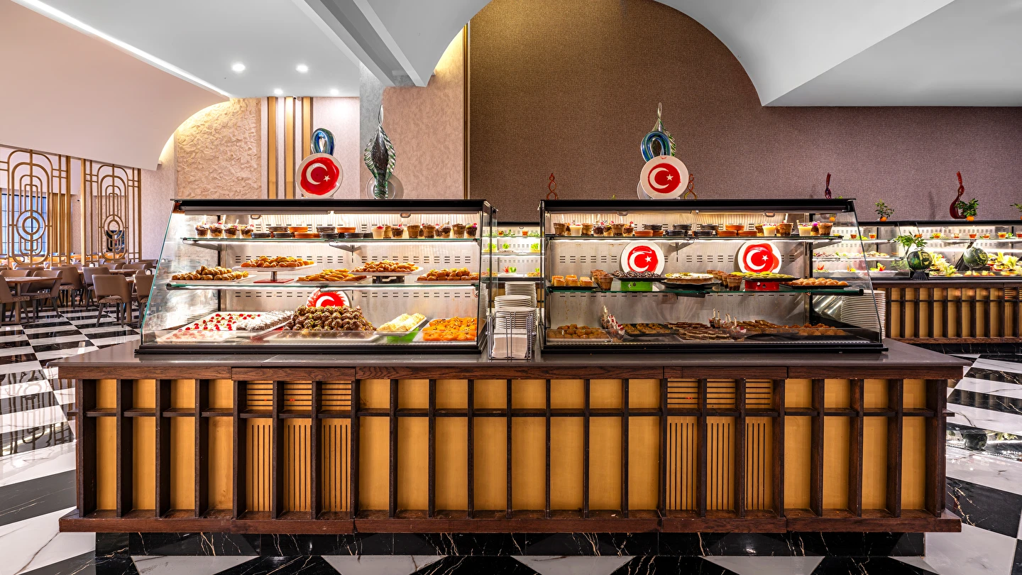 Sabah kahvaltısı, öğle yemeği ve akşam yemeği açık büfe olup, tesisin belirlemiş olduğu markalar dahilinde alkolsüz içecekler 24 saat ücretsizdir. Alkollü yerli ve yabancı içecekler, taze sıkılmış meyve suları ve şişe servisi ücretlidir.