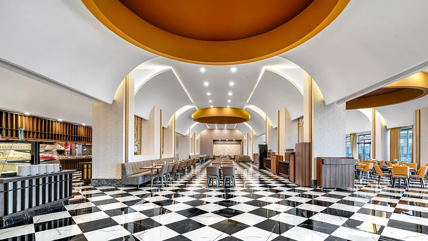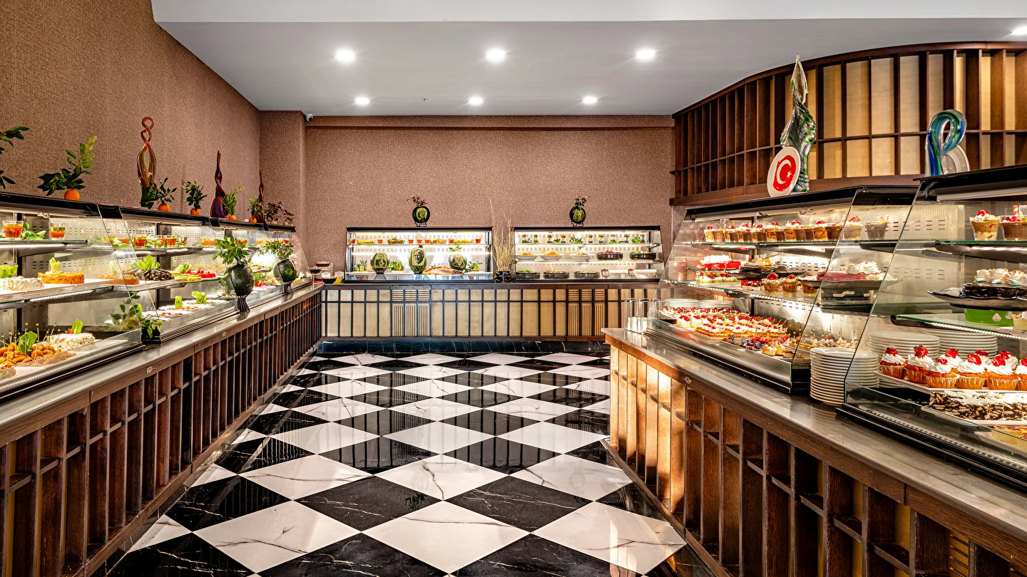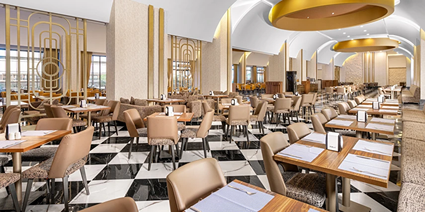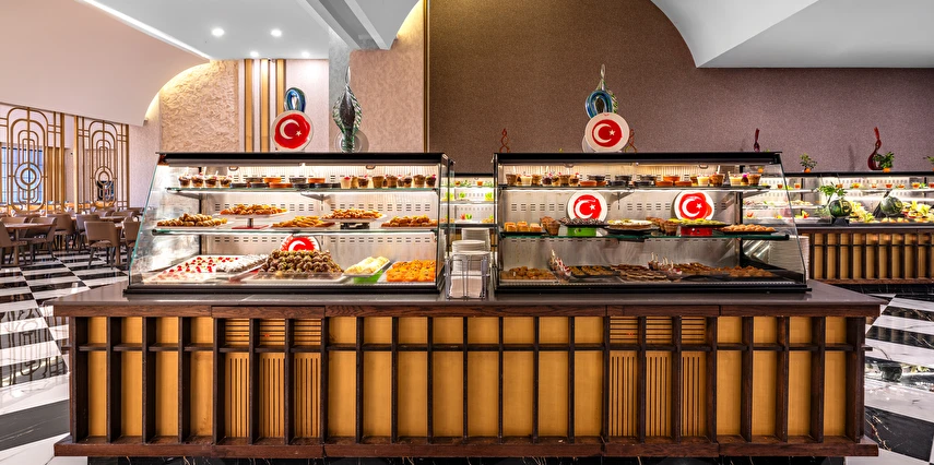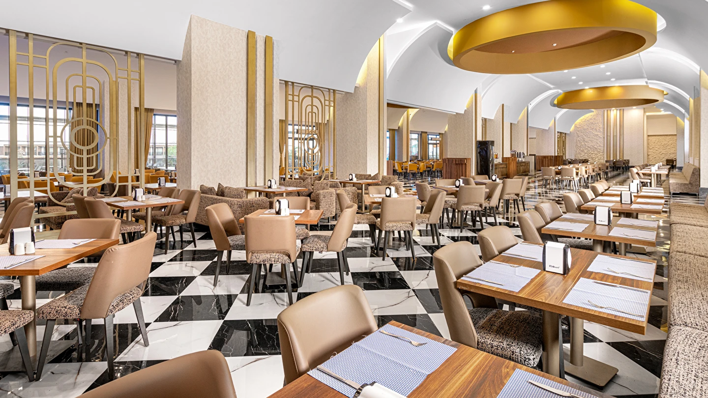 Sabah kahvaltısı, öğle yemeği ve akşam yemeği açık büfe olup, tesisin belirlemiş olduğu markalar dahilinde alkolsüz içecekler 24 saat ücretsizdir. Alkollü yerli ve yabancı içecekler, taze sıkılmış meyve suları ve şişe servisi ücretlidir.