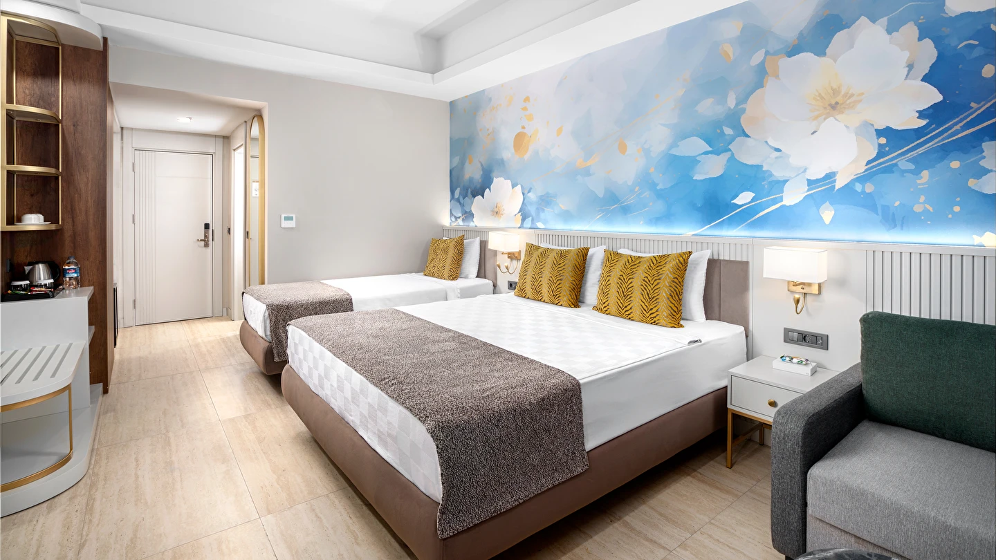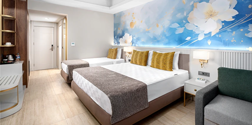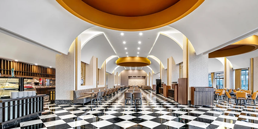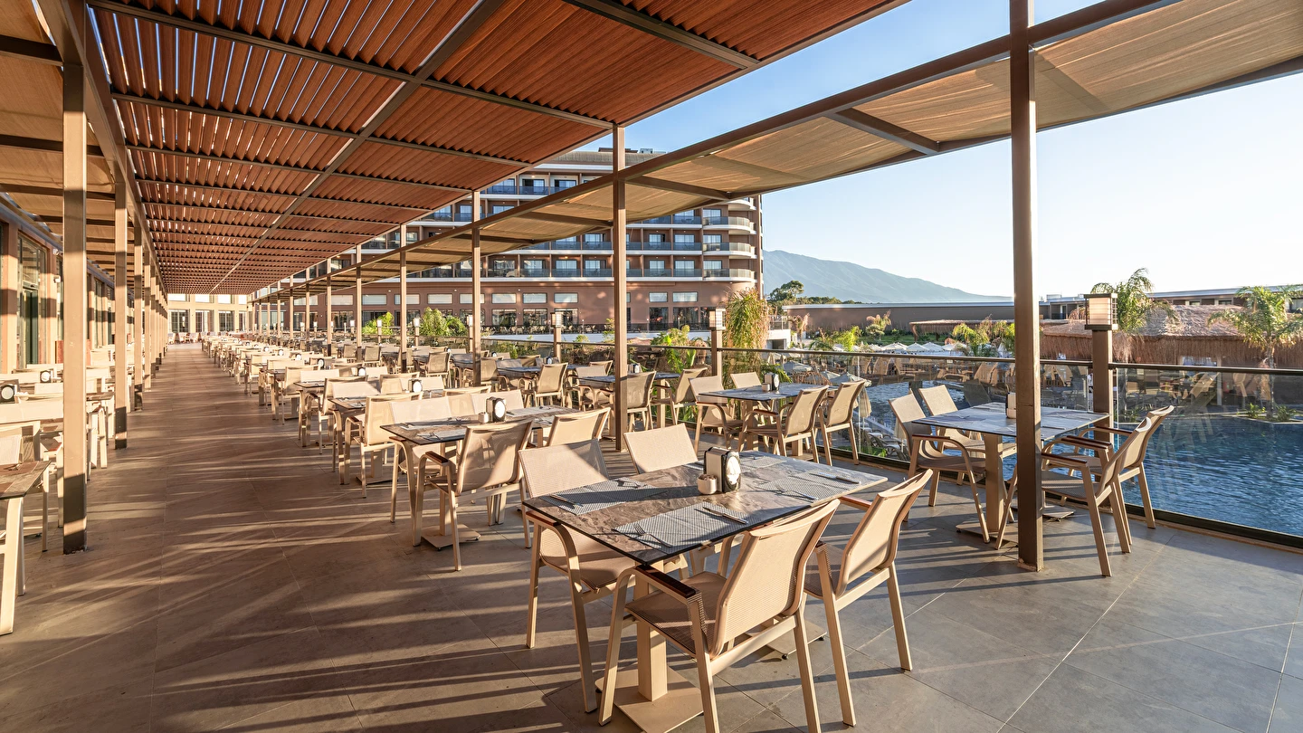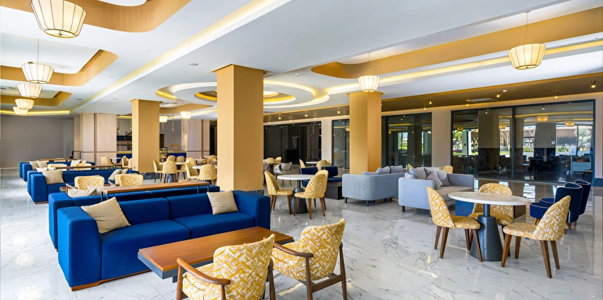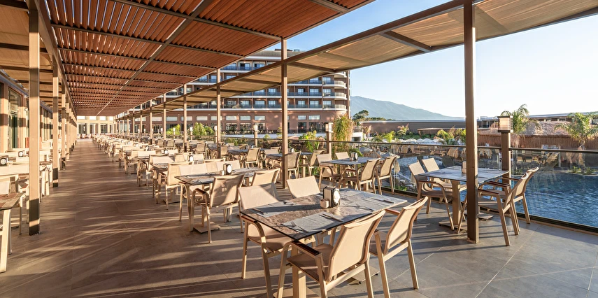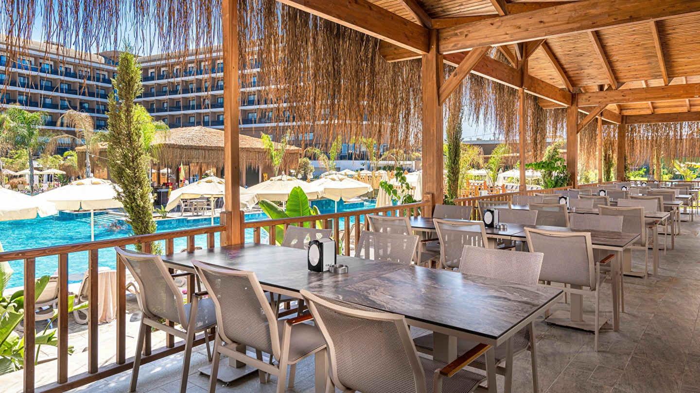 Sabah kahvaltısı, öğle yemeği ve akşam yemeği açık büfe olup, tesisin belirlemiş olduğu markalar dahilinde alkolsüz içecekler 24 saat ücretsizdir. Alkollü yerli ve yabancı içecekler, taze sıkılmış meyve suları ve şişe servisi ücretlidir.